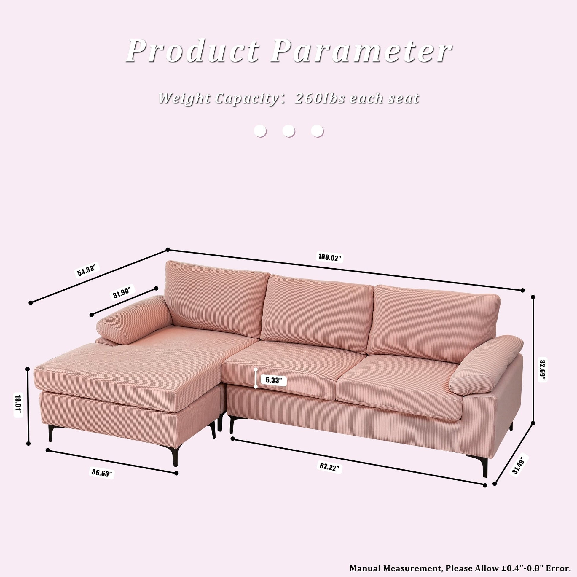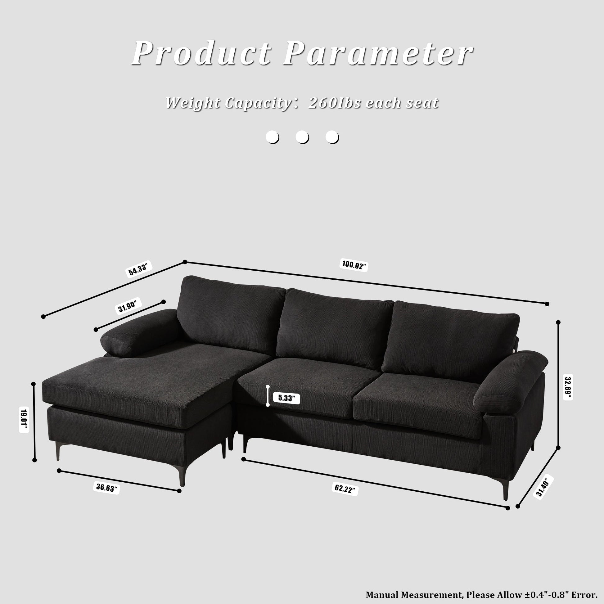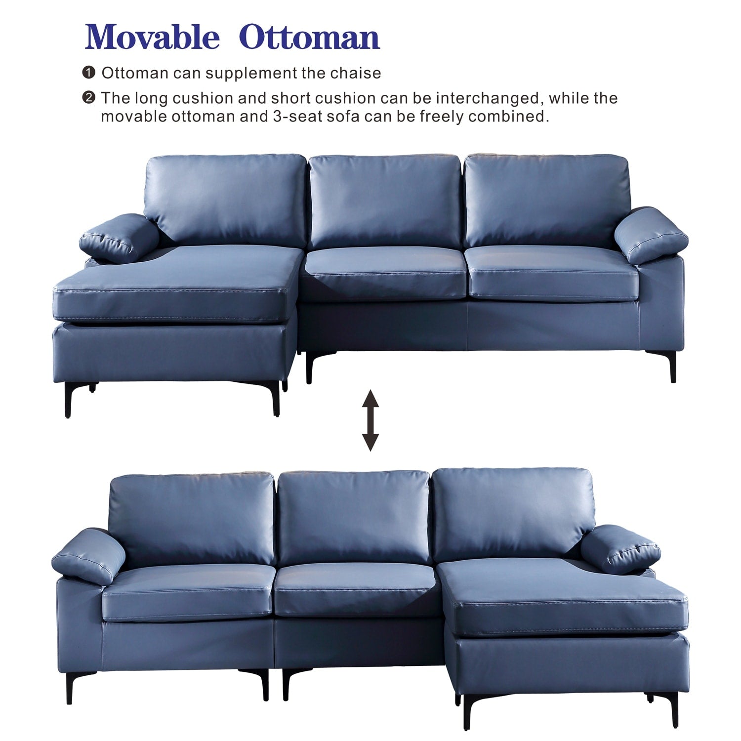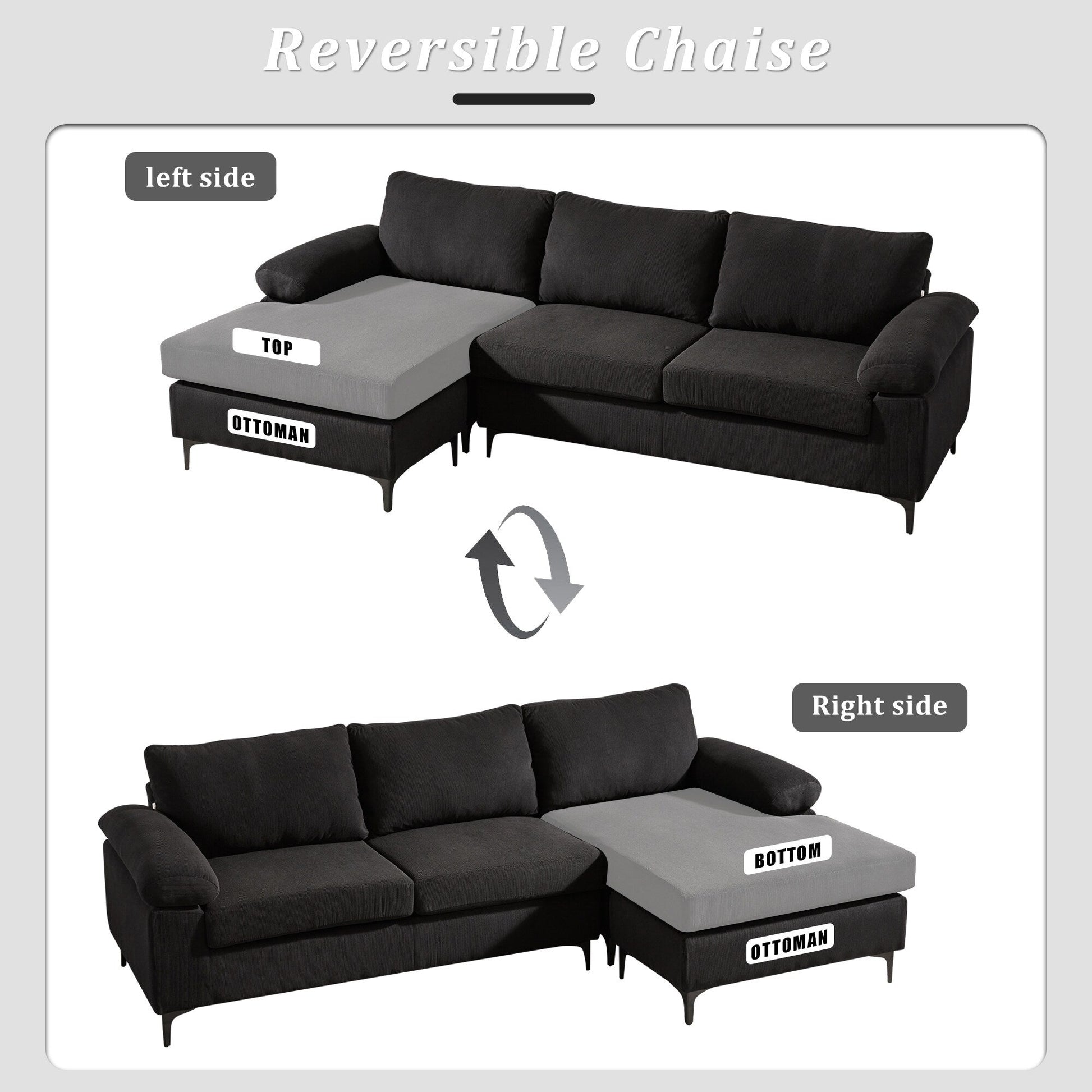Divano chaise longue reversibile OVIOS con cuscini soffici...