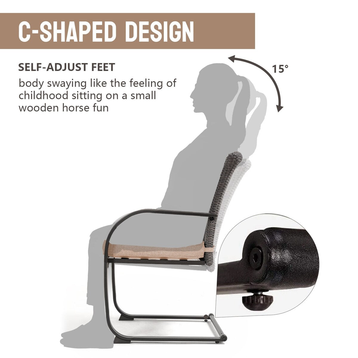 • Design con oscillazione leggera a 15°: le sedie con movimento a molla offrono un delicato movimento di oscillazione, perfetto per rilassarsi. Sono versatili e possono essere utilizzate come sedie indipendenti o abbinate a un tavolo da pranzo. Per garantire stabilità su superfici irregolari, i piedi sono dotati di cuscinetti antiscivolo in ABS e di elementi regolabili.