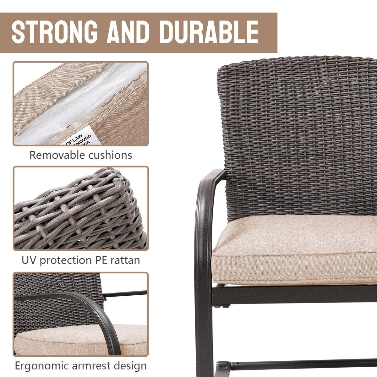 • Le nostre sedie a dondolo da giardino sono un set da 2, perfette sia per interni che per esterni. Queste sedie da giardino sono resistenti alle intemperie, alla pioggia e ai raggi UV, il che le rende ideali per qualsiasi ambiente, come giardini, balconi, terrazze, parchi, patii, portici, bordi piscina e cortili. Create un ambiente piacevole e rilassante per incontrarvi con amici o familiari per un caffè con queste sedie da giardino.