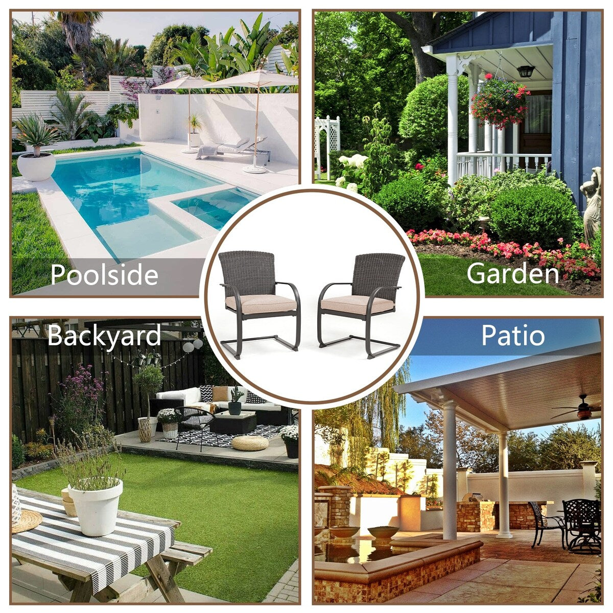 Sedie da pranzo in vimini per esterni, 2 pezzi, mobili da giardino primaverili adatti a tutte le stagioni con cuscini per giardino, piscina, cortile, prato