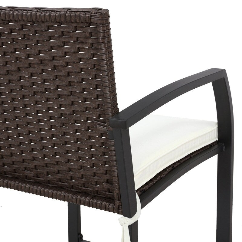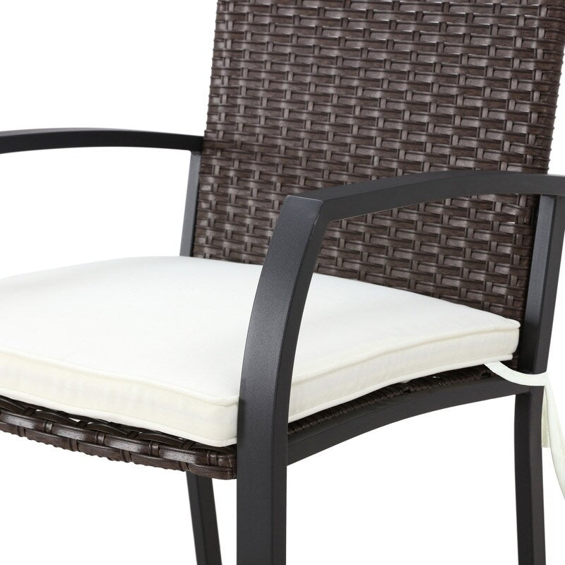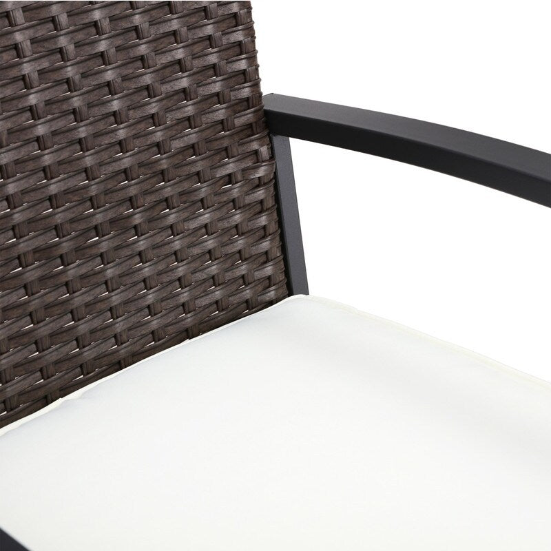 Le sedie da bar sono realizzate con un esclusivo processo di piantagione di rattan, hanno una struttura resistente, seduta e schienale in vimini classico e un cuscino in tessuto di poliestere non fragile. Il design lineare e lineare offre una seduta confortevole e un'esperienza visiva di grande impatto. Il tavolo in acciaio con piano in vetro è progettato per vivere all'aperto. È perfetto per il vostro patio. Abbastanza sobrio per qualsiasi contesto soleggiato, abbina una struttura con finitura nera a un piano in vetro che assume una silhouette squadrata e arrotondata.