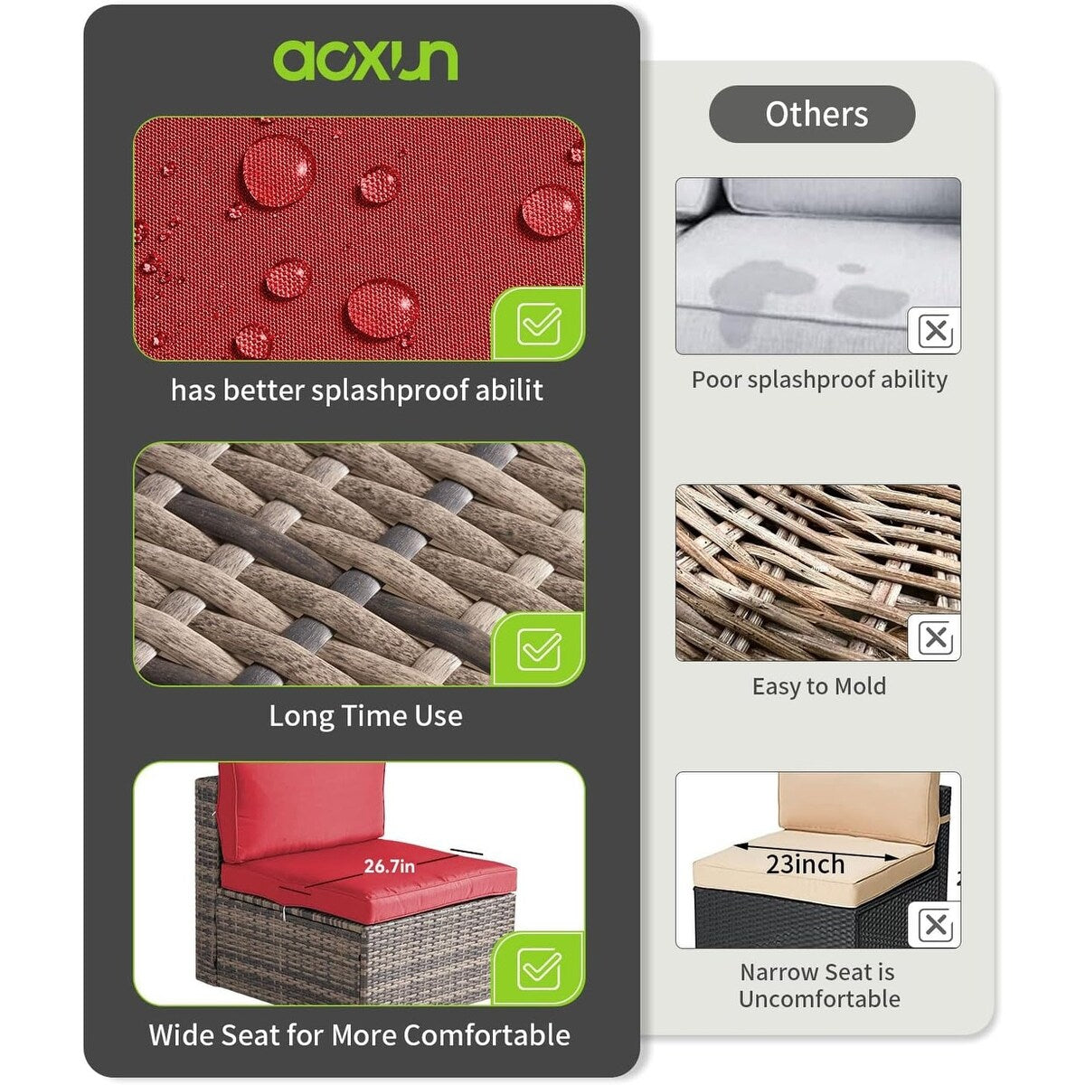 【Facile da pulire e design elegante】I cuscini con cerniera liscia sono lavabili in lavatrice, offrendo molta praticità quando sono sporchi o macchiati. Tutti hanno fibbie in corno per evitare scivolamenti. I divani componibili da esterno sono eleganti e attraenti e si abbinano a qualsiasi arredamento da esterno. La selezione di marrone garantisce che rimangano alla moda e attuali per gli anni a venire.