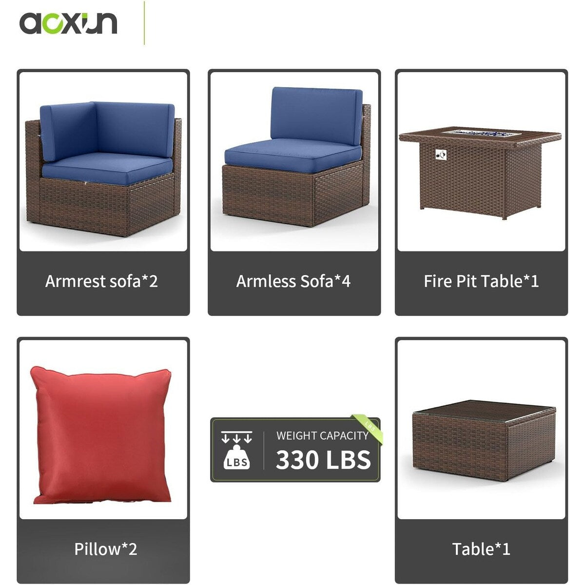 【Multifunzionale e confortevole】Il set di mobili da giardino da 8 pezzi è composto da 2 divani angolari, 4 divani singoli, 1 tavolo da fuoco e 1 tavolino da caffè, ed è adatto a diversi contesti, come patio, veranda, cortile, balcone, bordo piscina, giardino e altro ancora. I cuscini ultra morbidi sono imbottiti in cotone o spugna, offrendo agli utenti un'esperienza d'uso eccellente. 2 cuscini sono inclusi come omaggio extra.