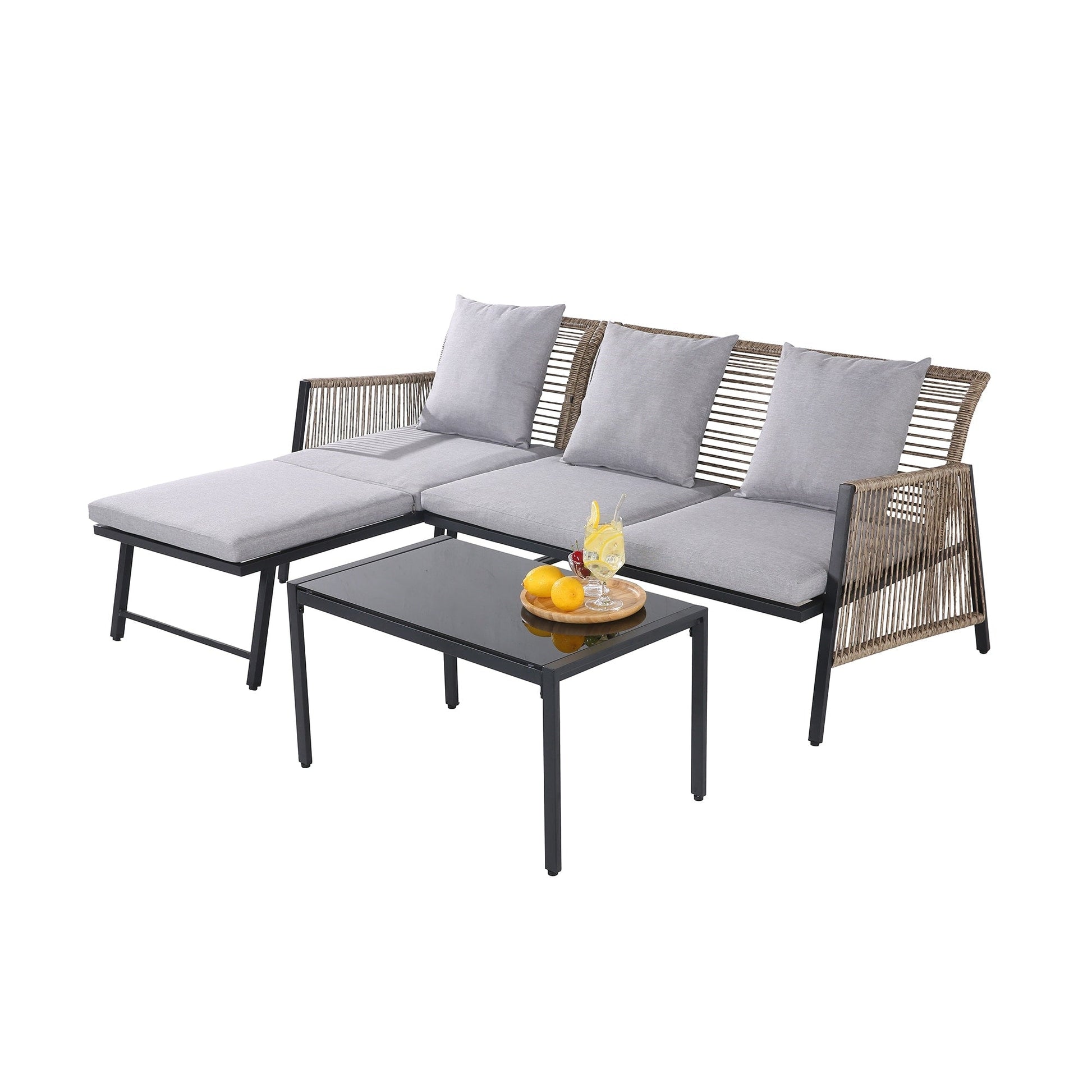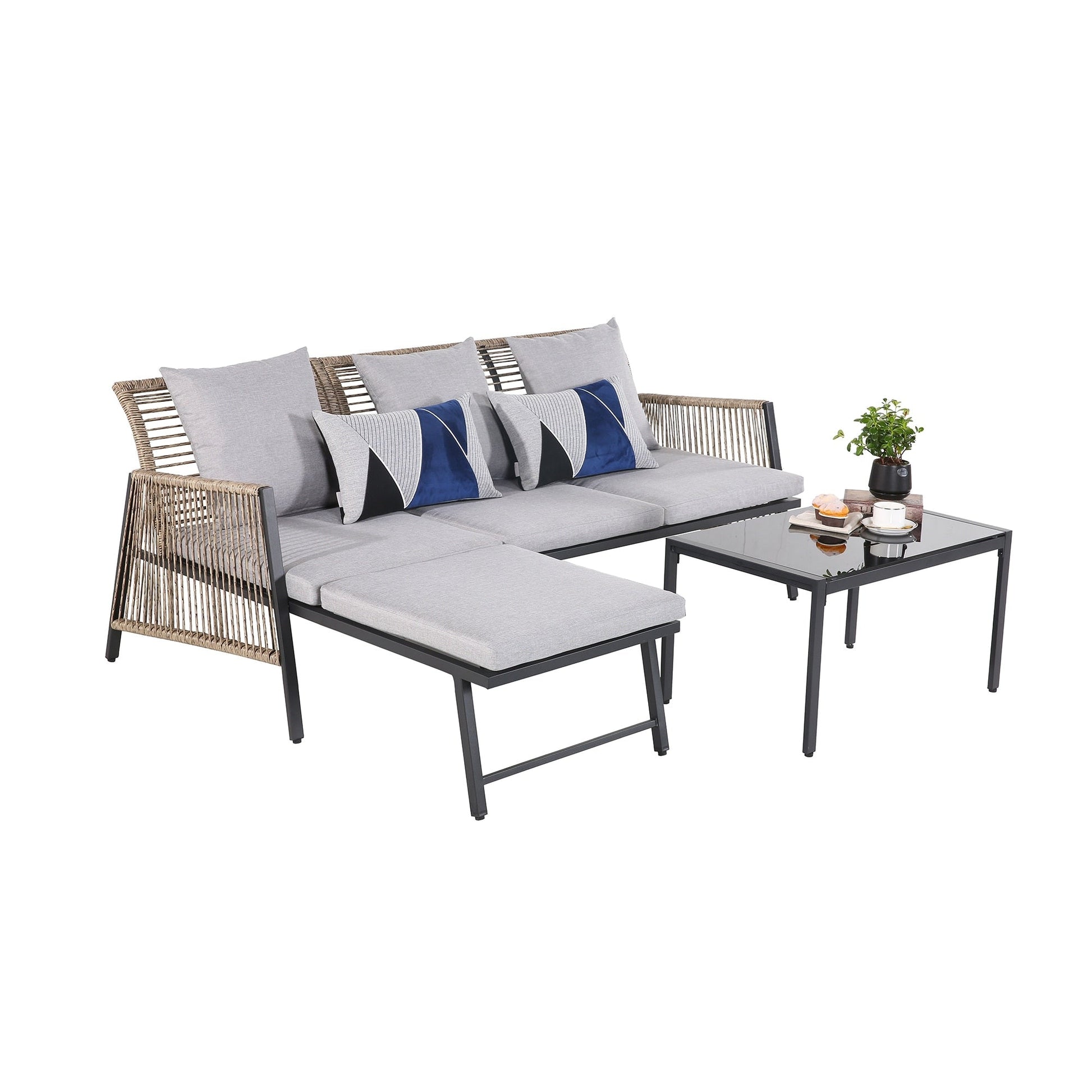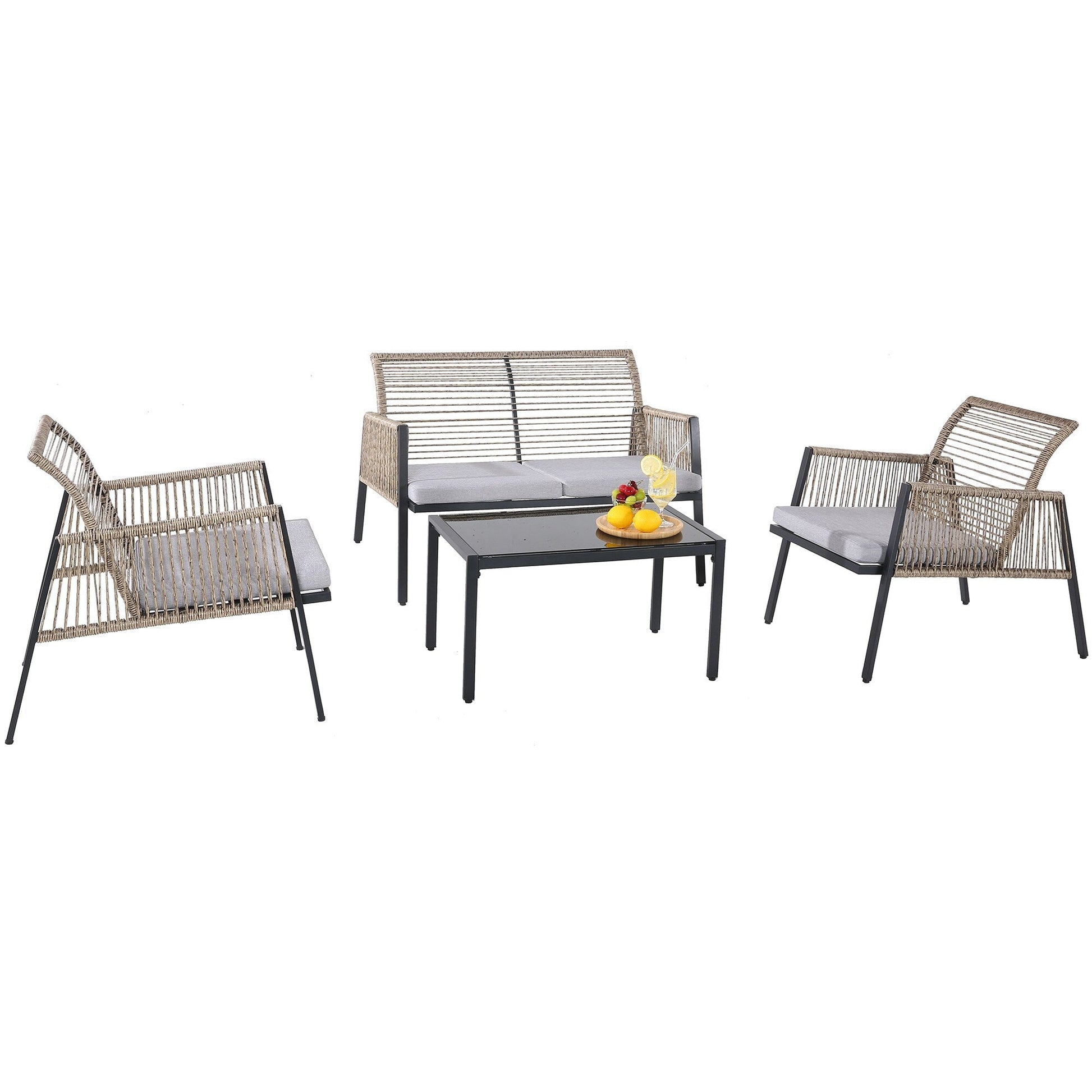 Godetevi pasti informali all'aperto, in veranda o in patio, con questo set da giardino adatto a tutte le stagioni. Realizzato in vimini PE intrecciato a mano e avvolto su una robusta struttura in acciaio, il set vi permetterà di rilassarvi per ore ogni volta che ne avrete bisogno. Inoltre, tutti i cuscini sono dotati di fodere sfoderabili e lavabili in lavatrice, facili da pulire e mantenere. Con un design in rattan, cuscini morbidi e accoglienti e un design minimalista, dona un look senza tempo al vostro spazio esterno, donando un tocco di stile innegabile alla vostra casa!