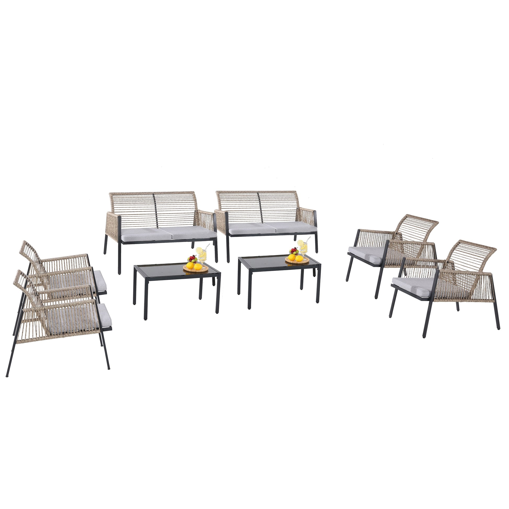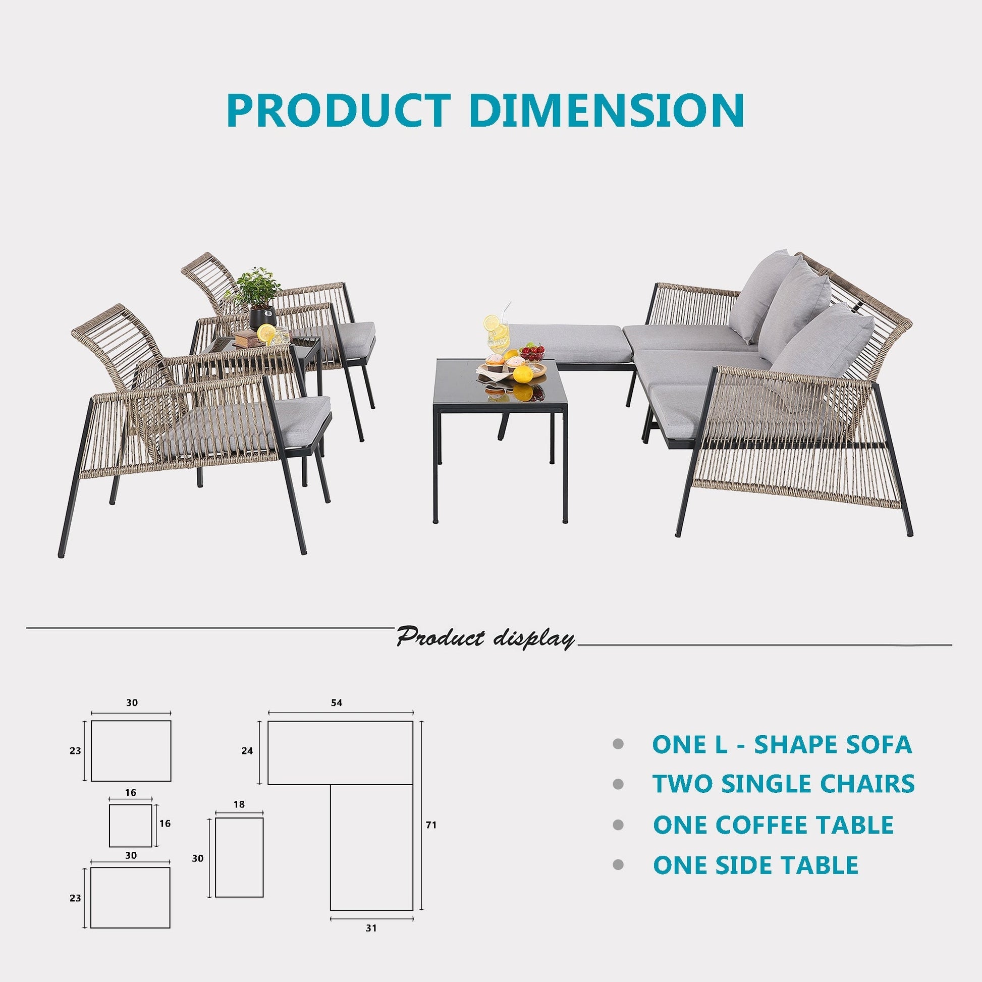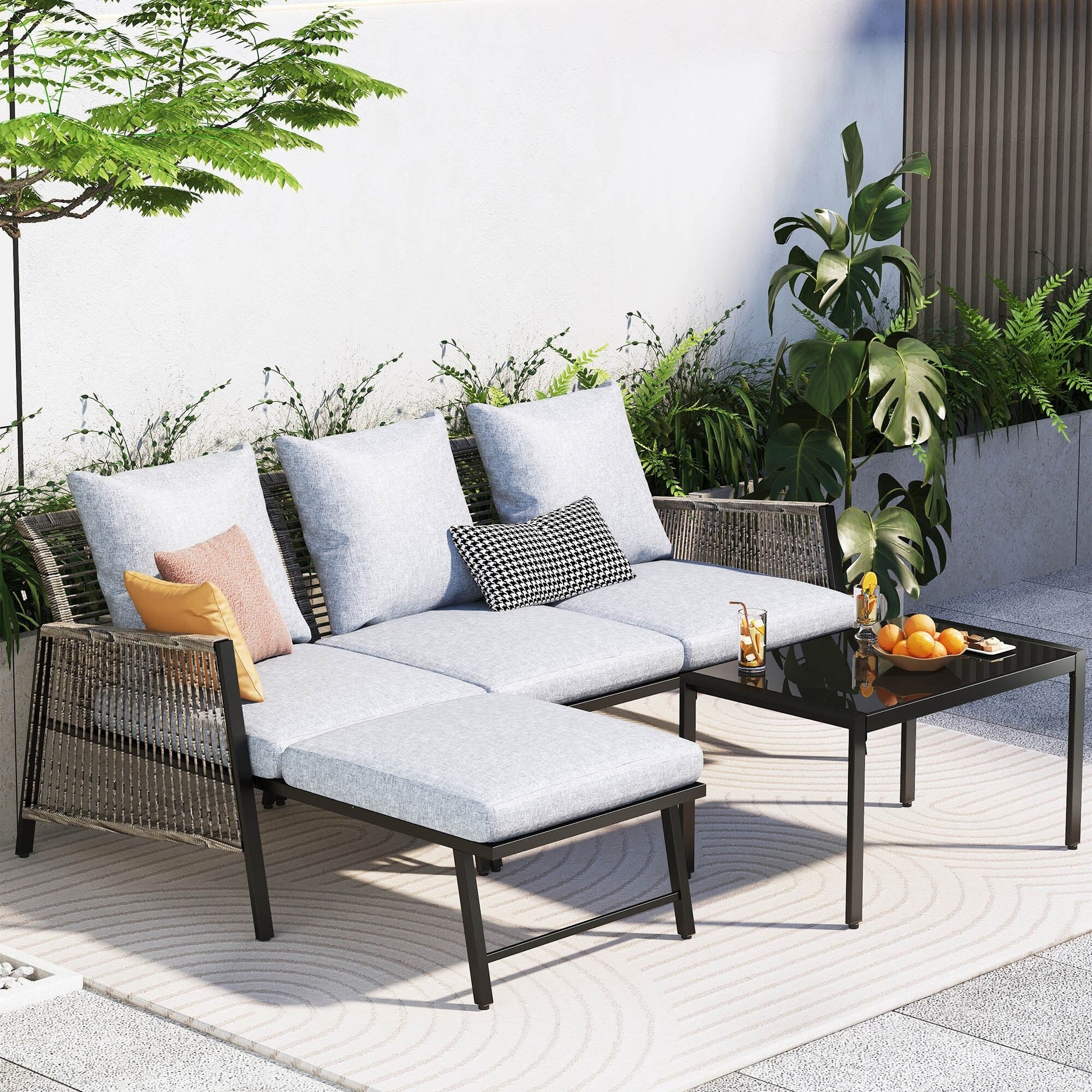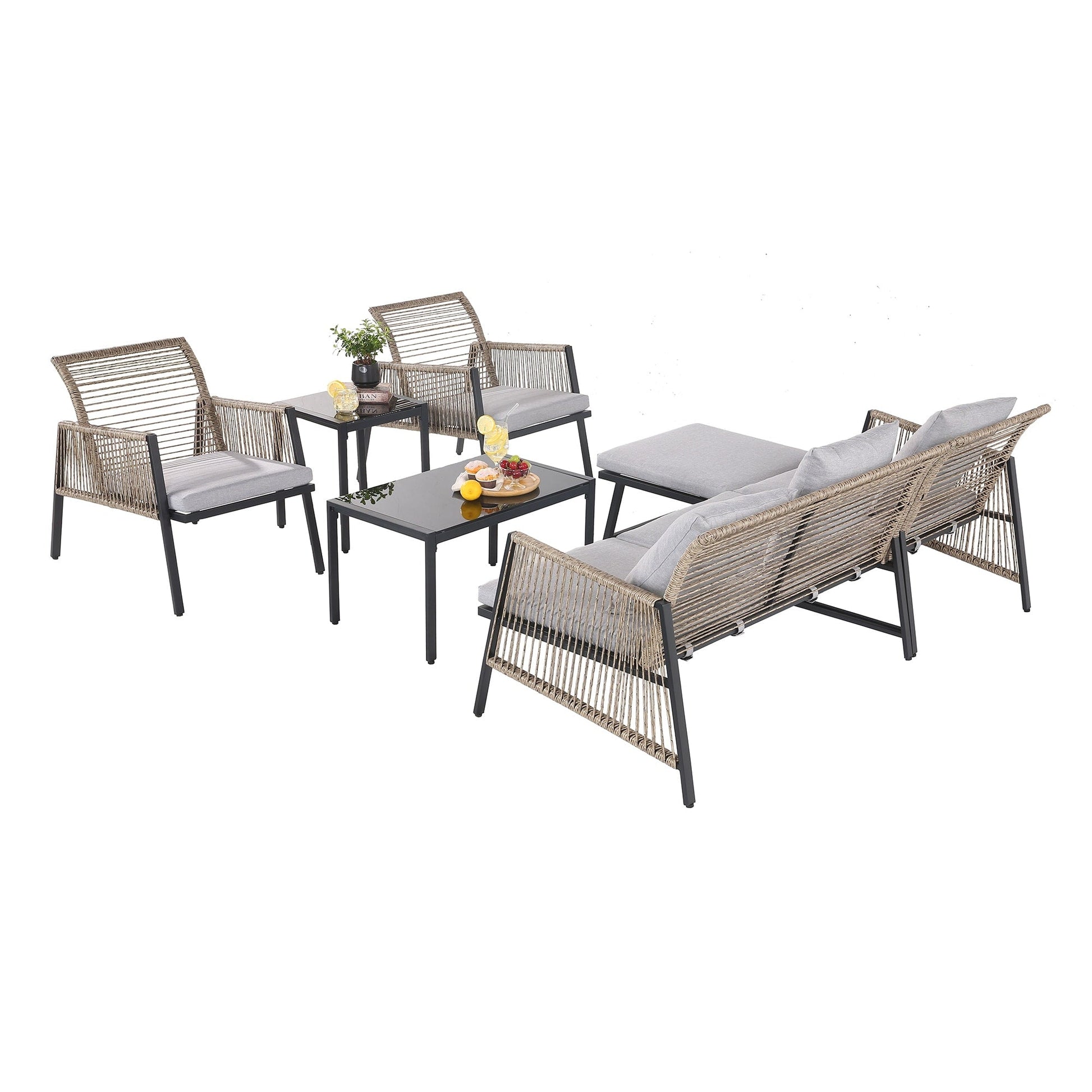 Godetevi pasti informali all'aperto, in veranda o in patio, con questo set da giardino adatto a tutte le stagioni. Realizzato in vimini PE intrecciato a mano e avvolto su una robusta struttura in acciaio, il set vi permetterà di rilassarvi per ore ogni volta che ne avrete bisogno. Inoltre, tutti i cuscini sono dotati di fodere sfoderabili e lavabili in lavatrice, facili da pulire e mantenere. Con un design in rattan, cuscini morbidi e accoglienti e un design minimalista, dona un look senza tempo al vostro spazio esterno, donando un tocco di stile innegabile alla vostra casa!
