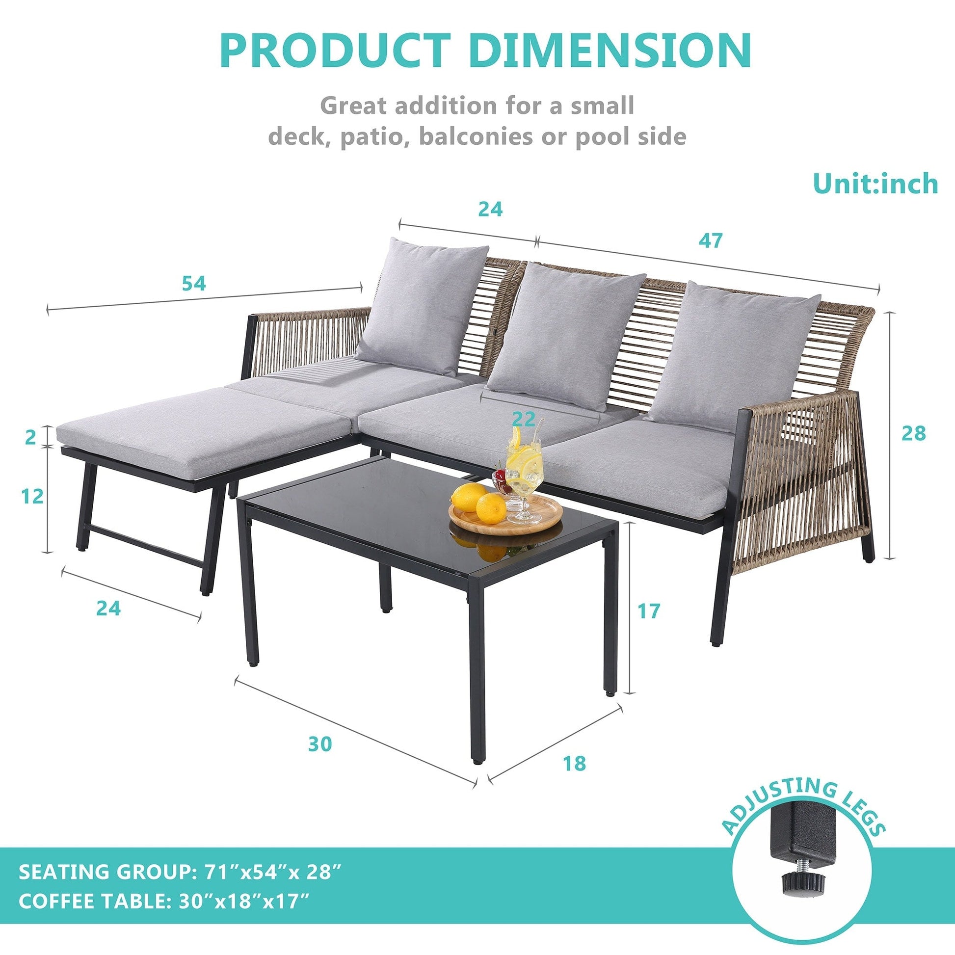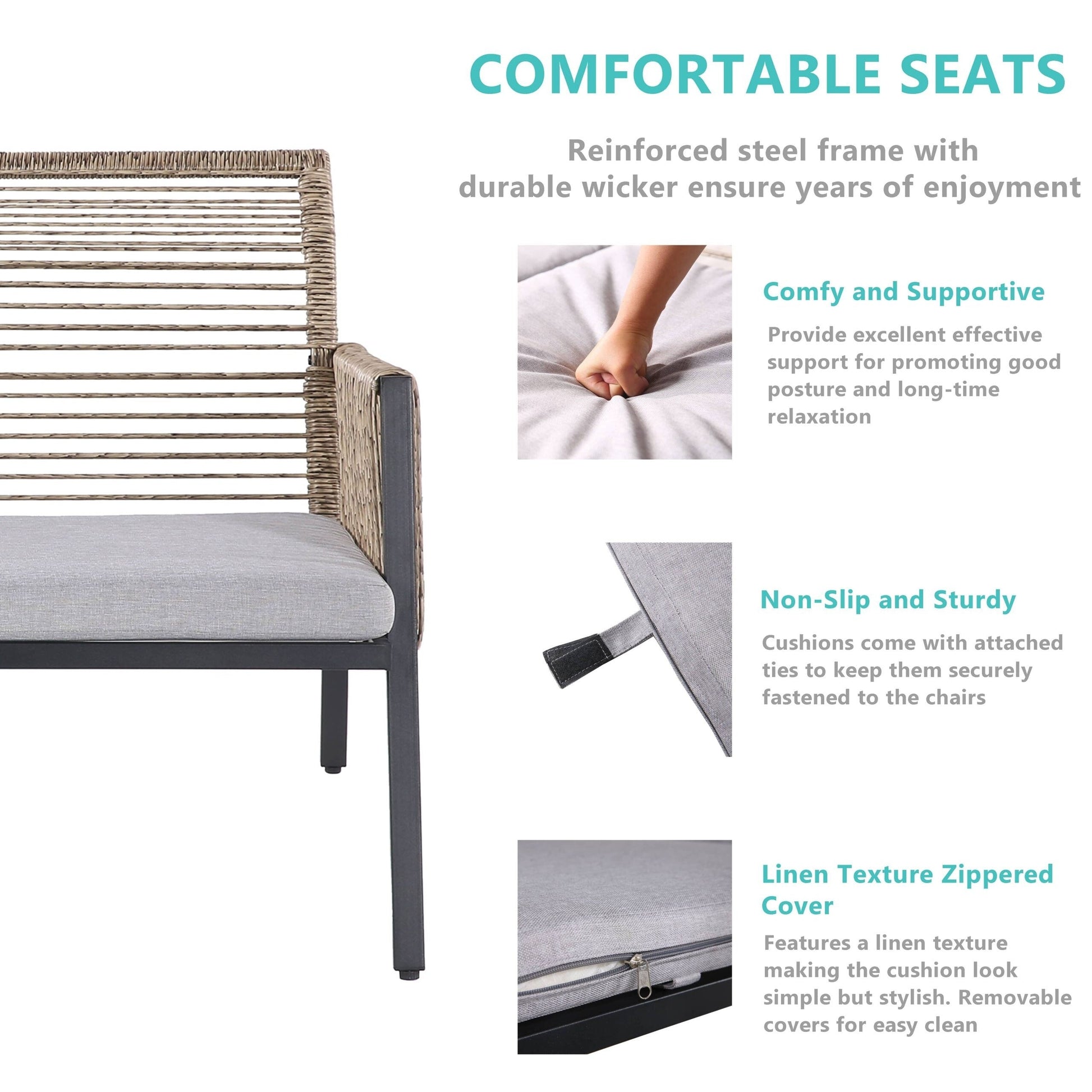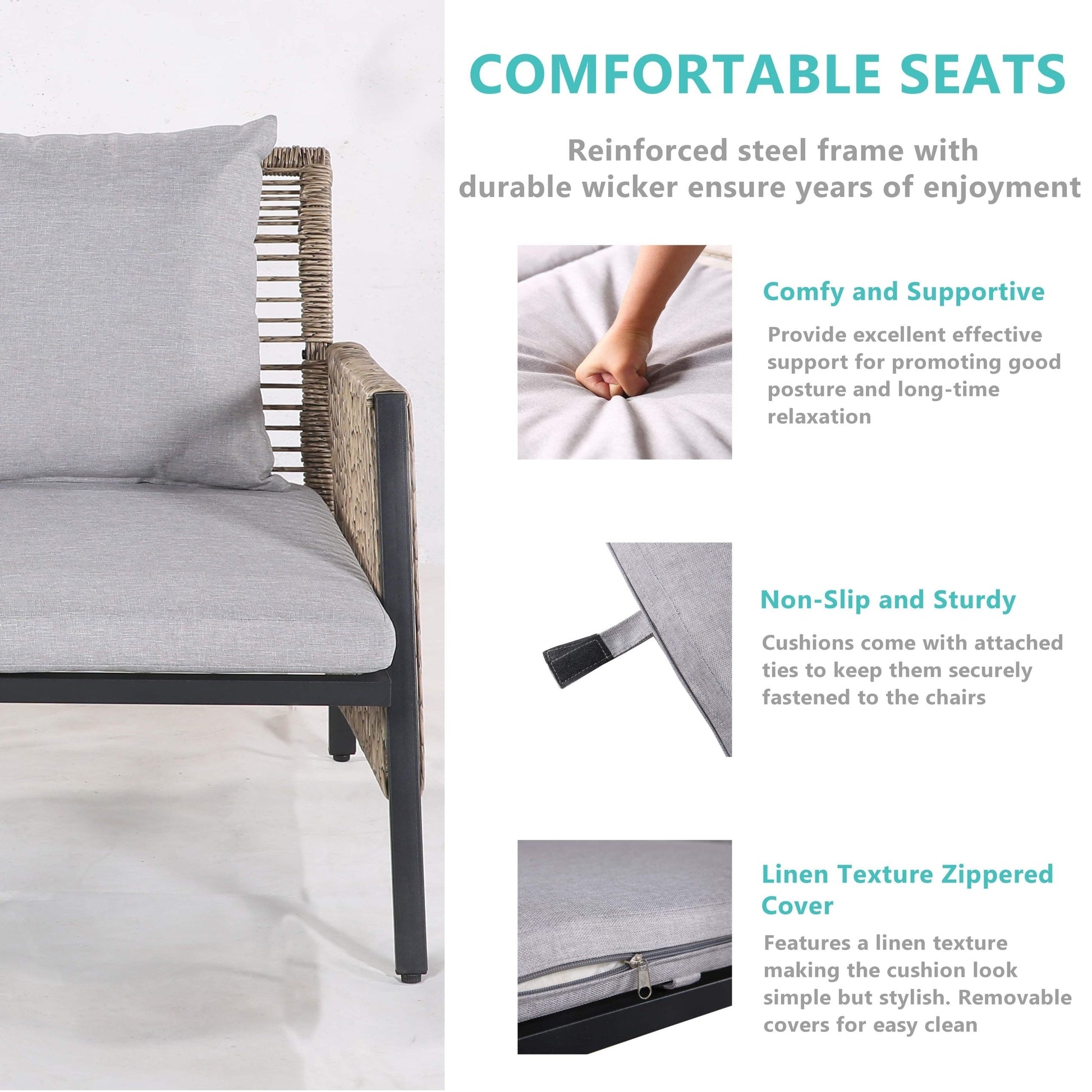 • Cuscini comodi e facili da pulire: tutti i cuscini sono dotati di fodere sfoderabili e lavabili in lavatrice, facili da pulire e da pulire. I cuscini della seduta sono fissati con cinghie in velcro per mantenerli fermi e non muoversi durante l'uso.