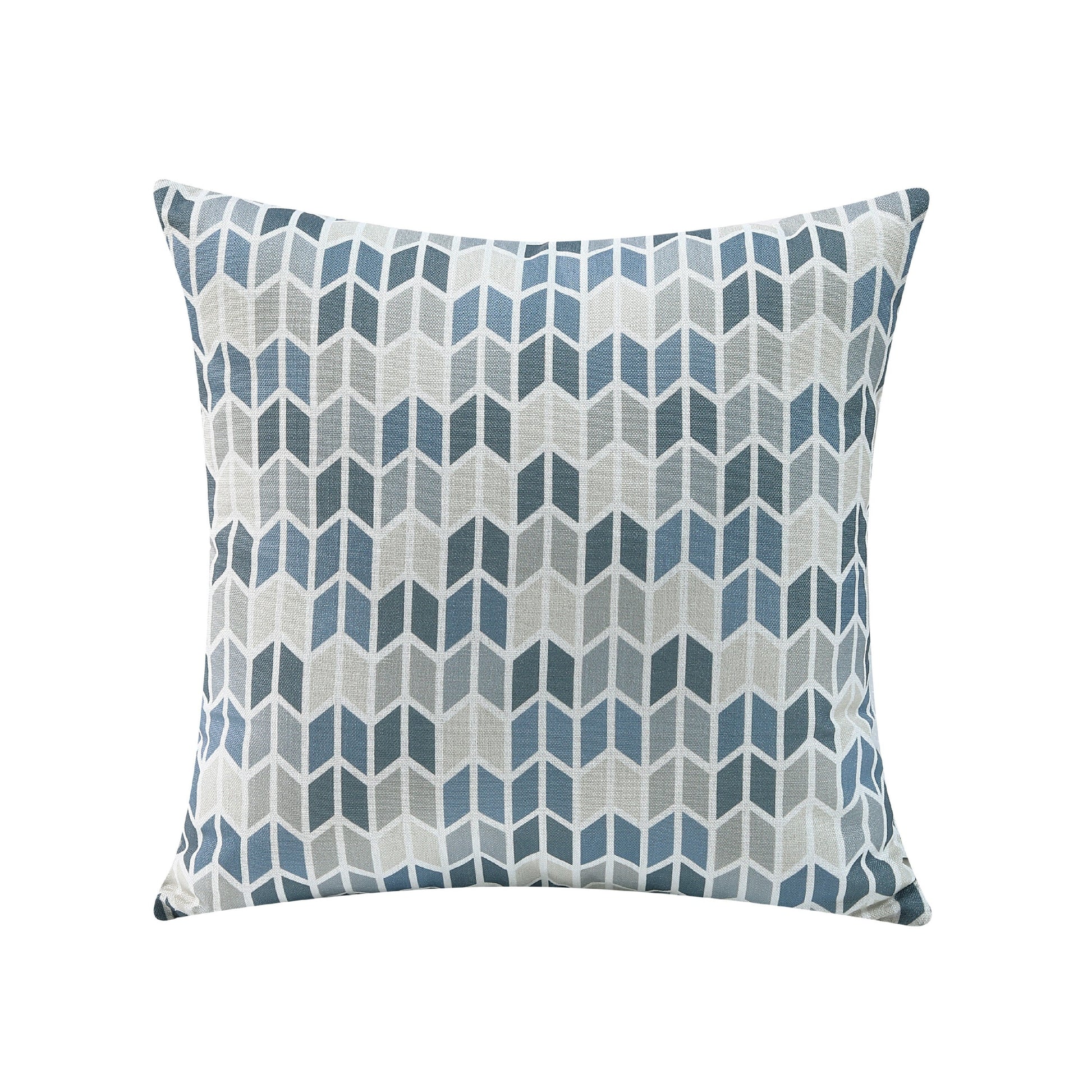 • Include due cuscini decorativi con un moderno motivo geometrico blu e avorio per un tocco di stile