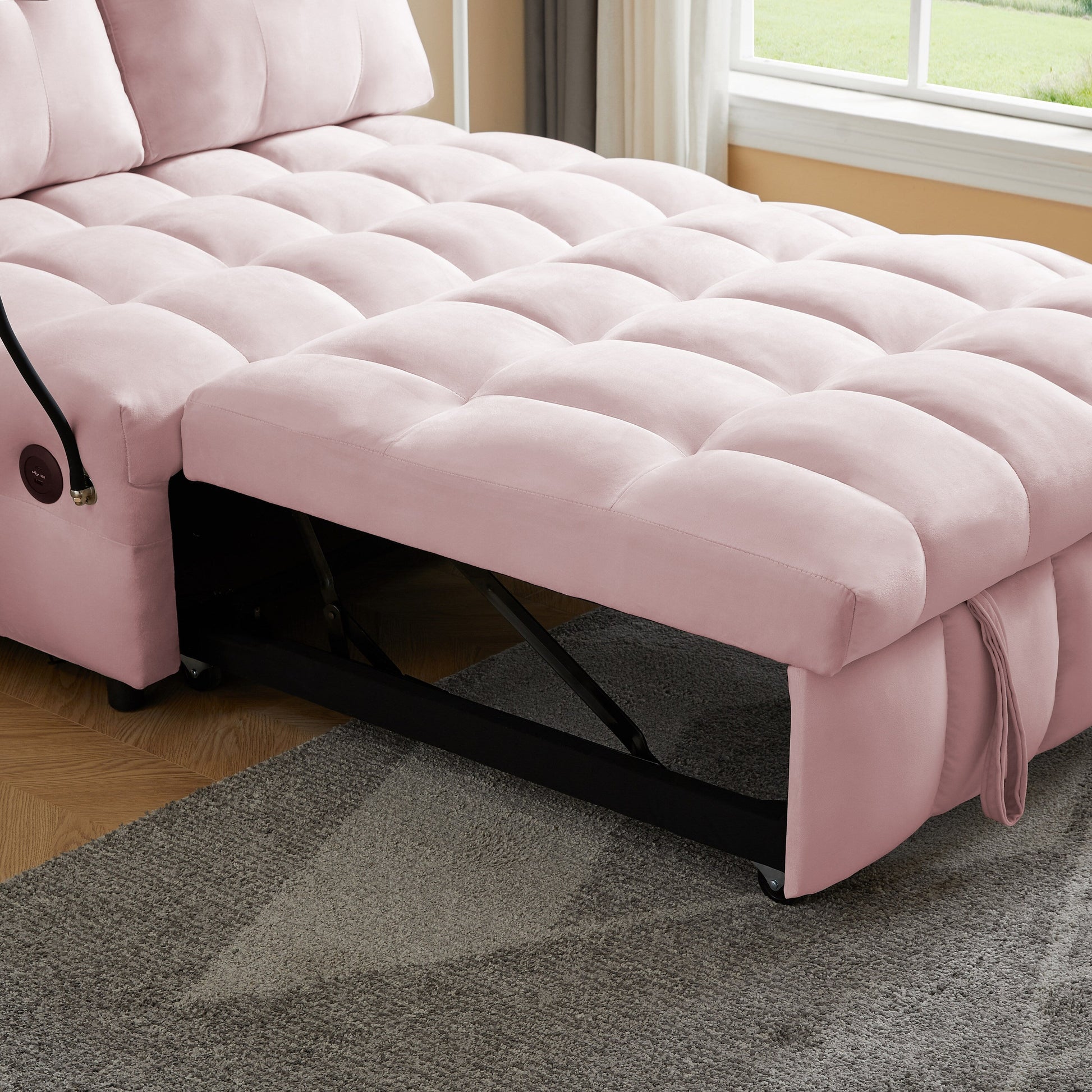 Divano letto estraibile con schienale rimovibile in velluto...