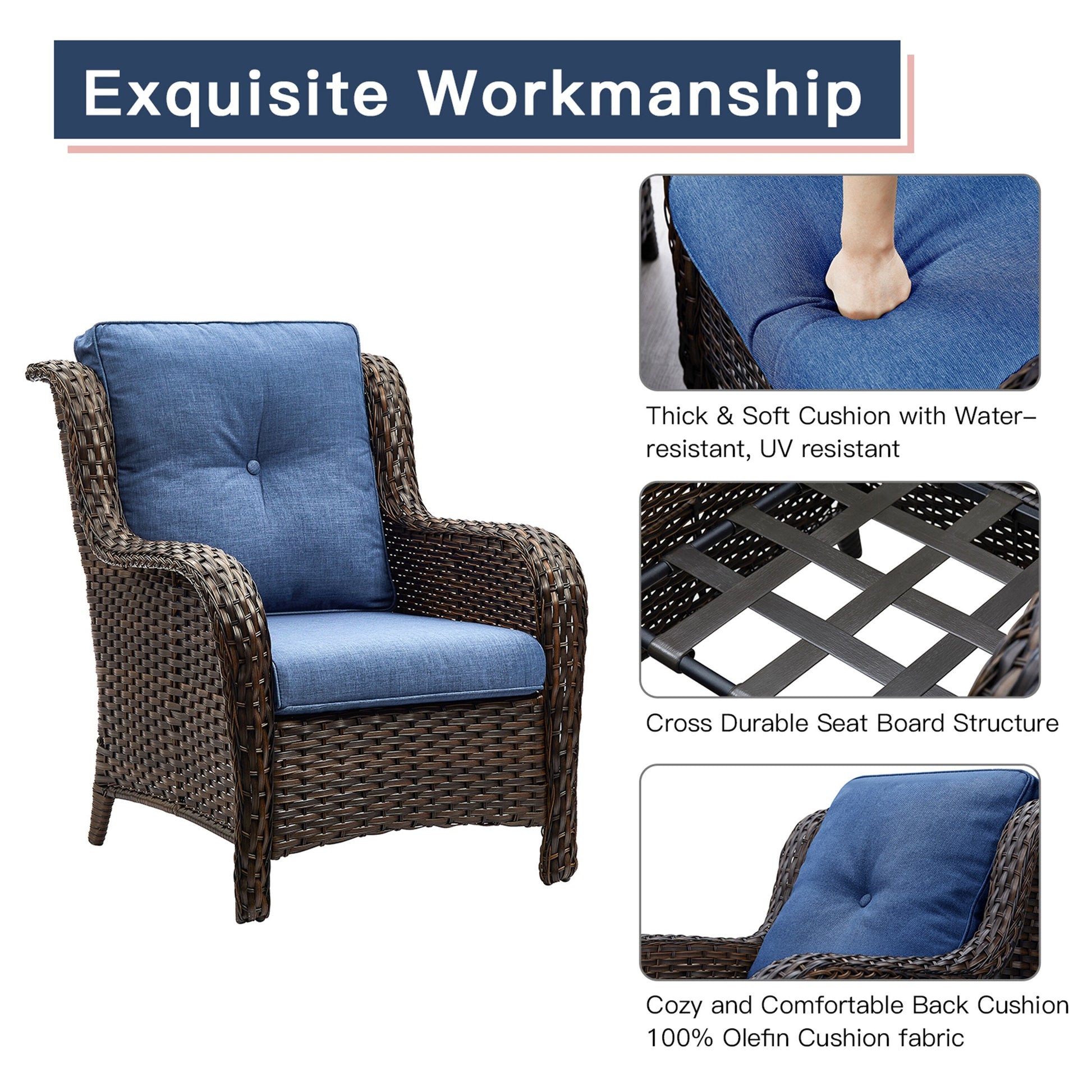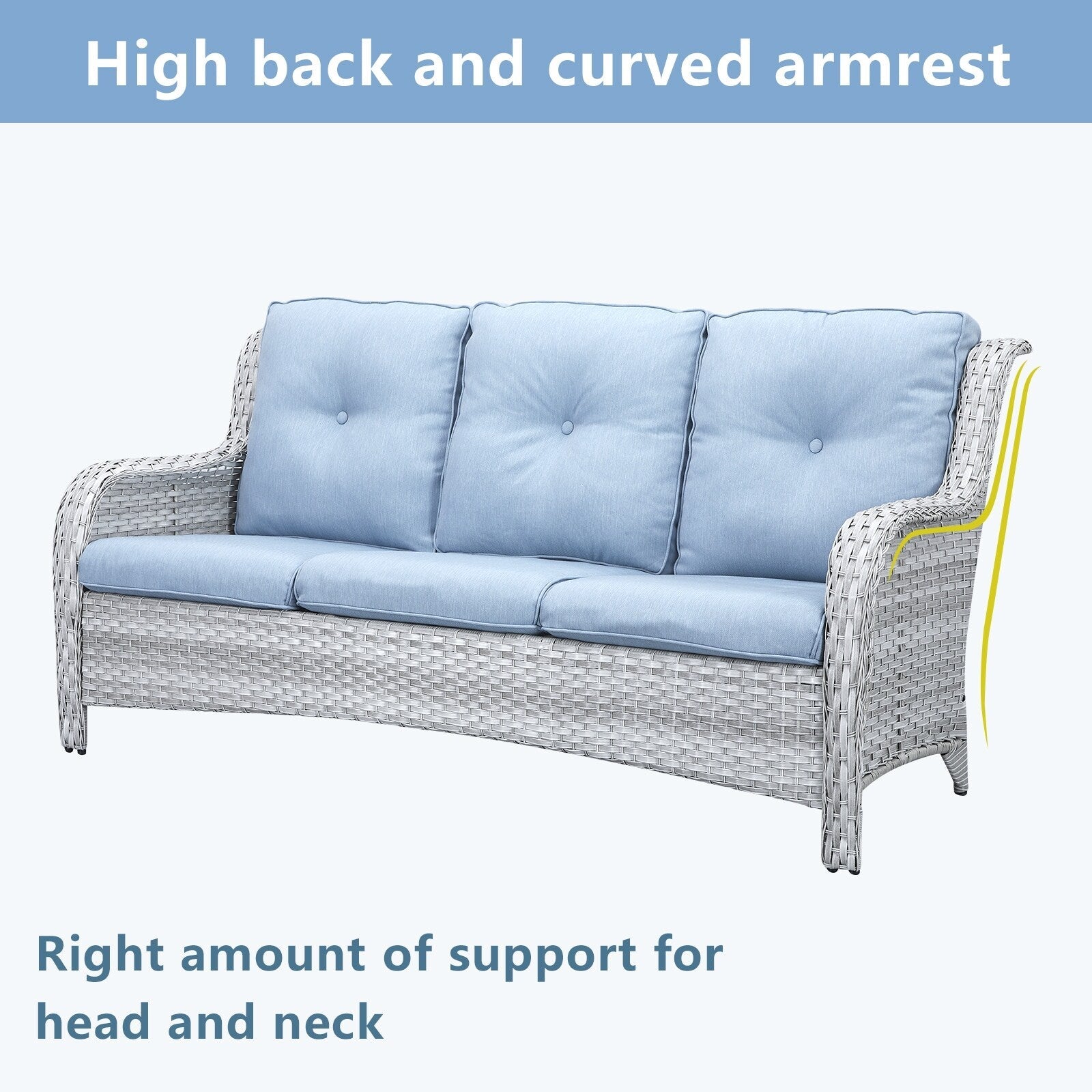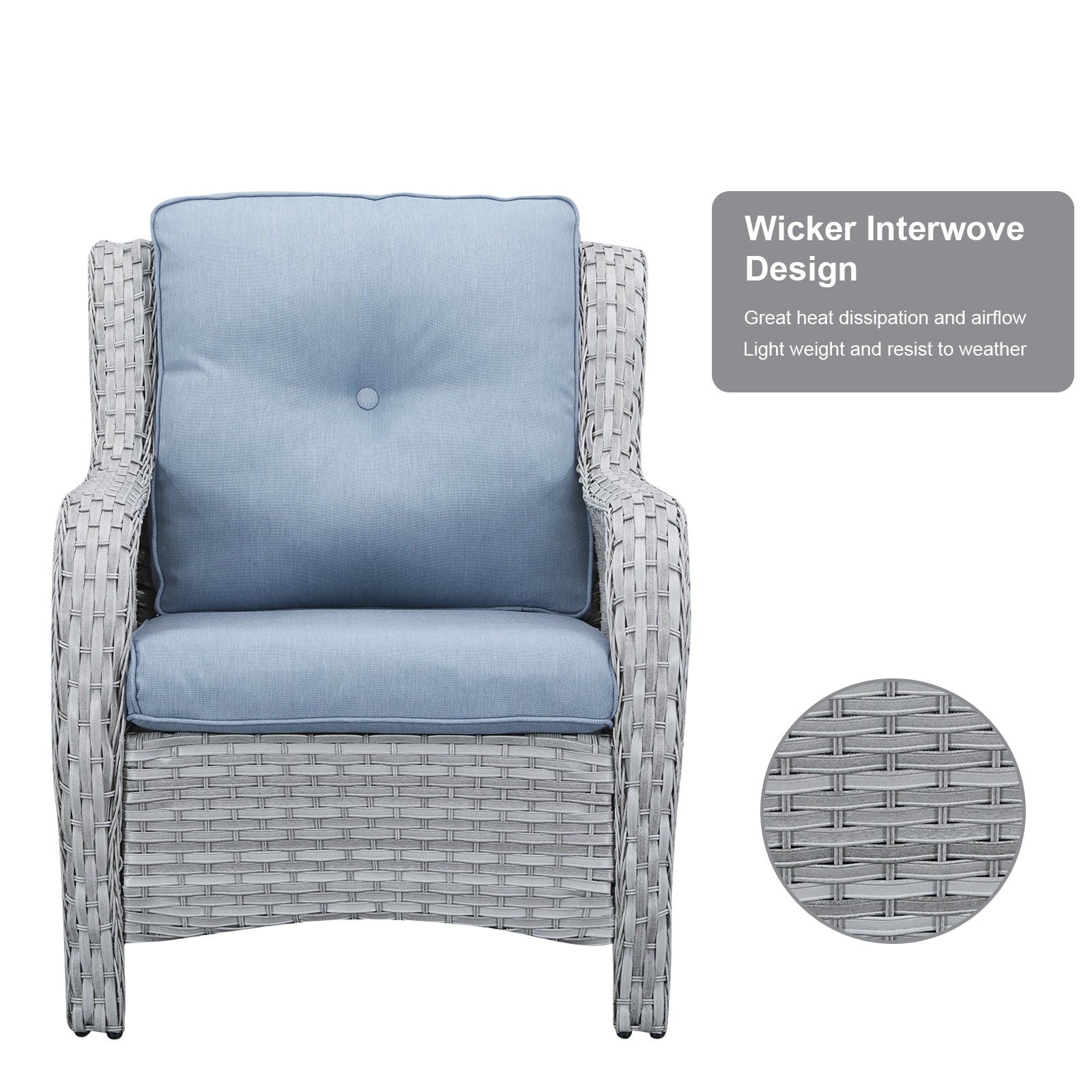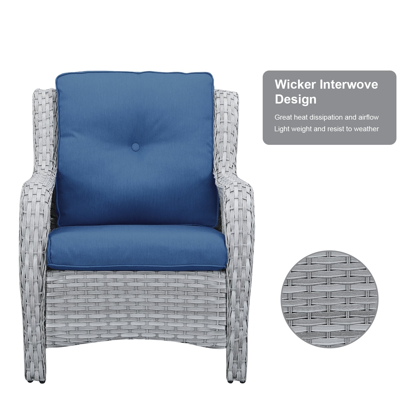• Lo schienale alto ed ergonomico e gli ampi braccioli offrono un supporto più confortevole. Queste due sedie hanno una lunga durata e sono adatte sia per l'uso interno che esterno. La capacità di carico può raggiungere i 360 libbre.