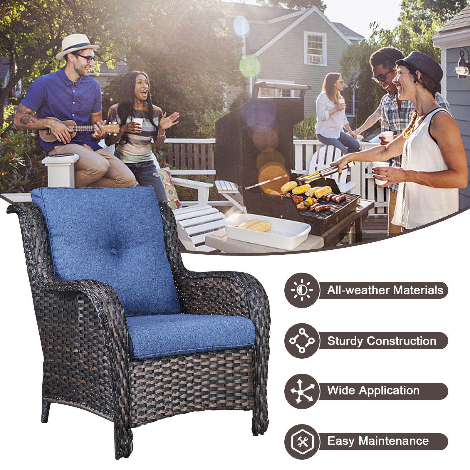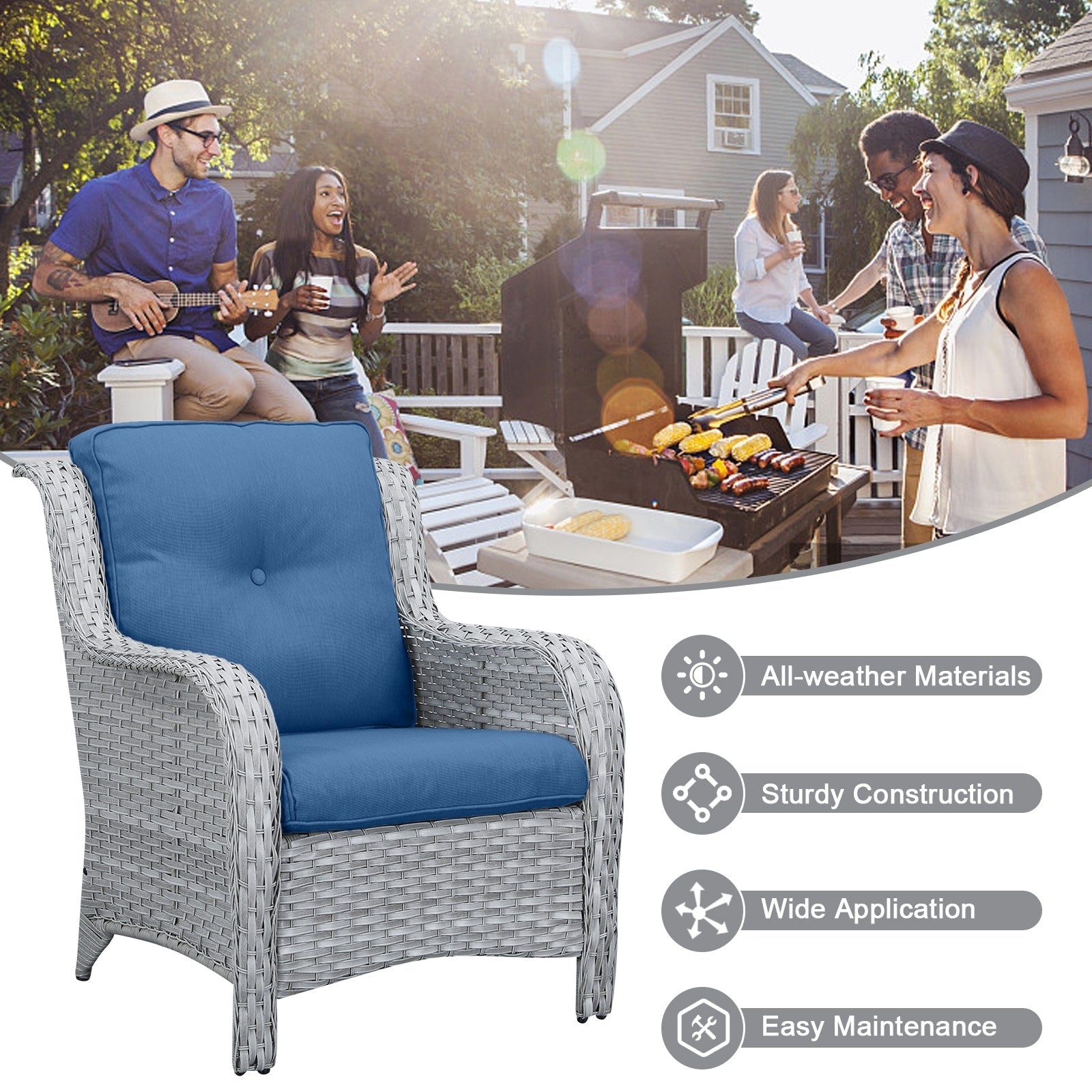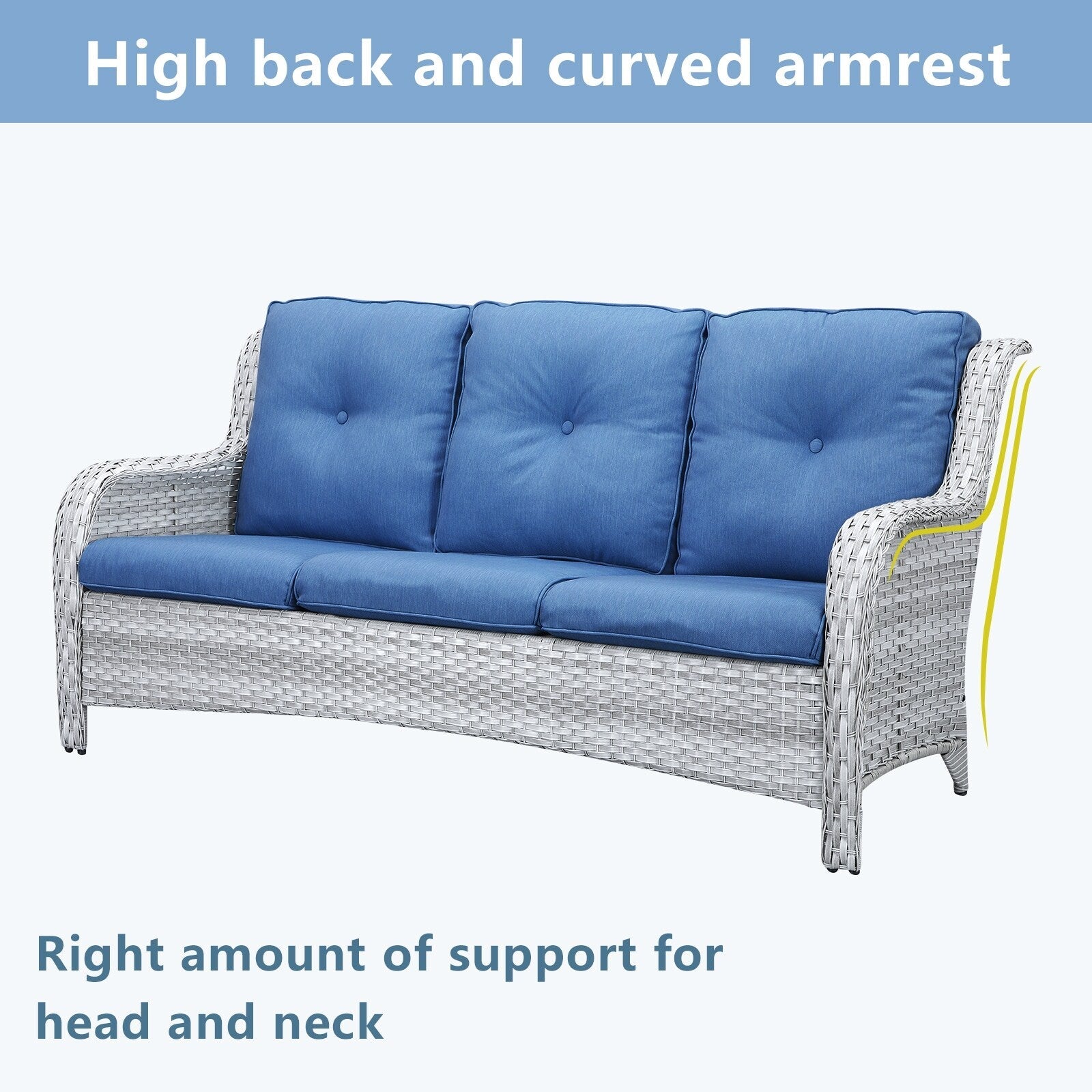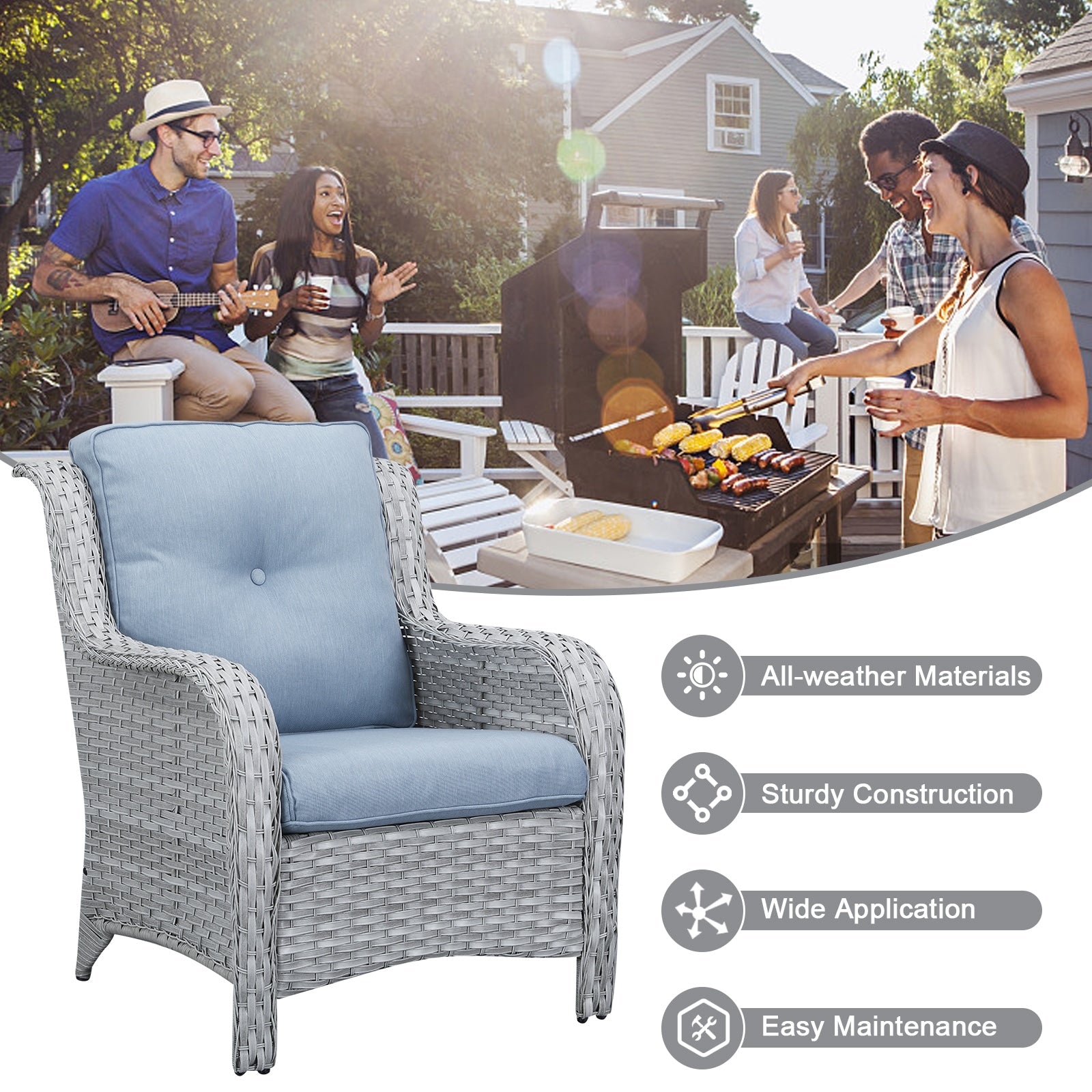 • Lo schienale alto ed ergonomico e gli ampi braccioli offrono un supporto più confortevole. Queste due sedie hanno una lunga durata e sono adatte sia per l'uso interno che esterno. La capacità di carico può raggiungere i 360 libbre.