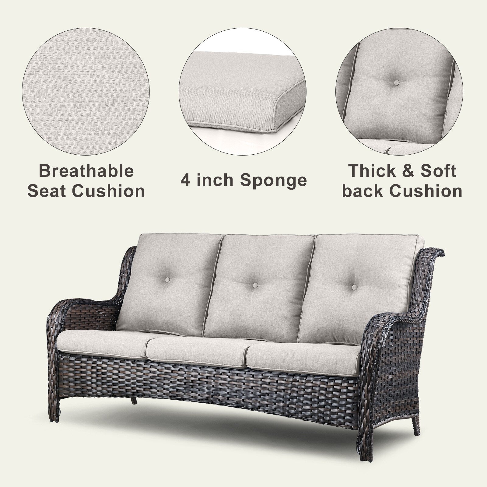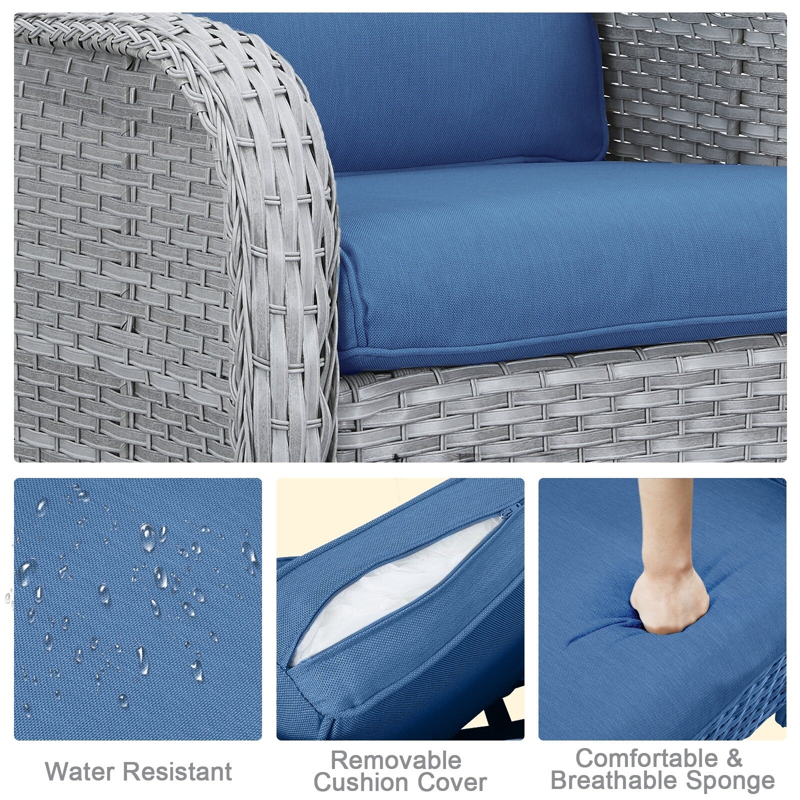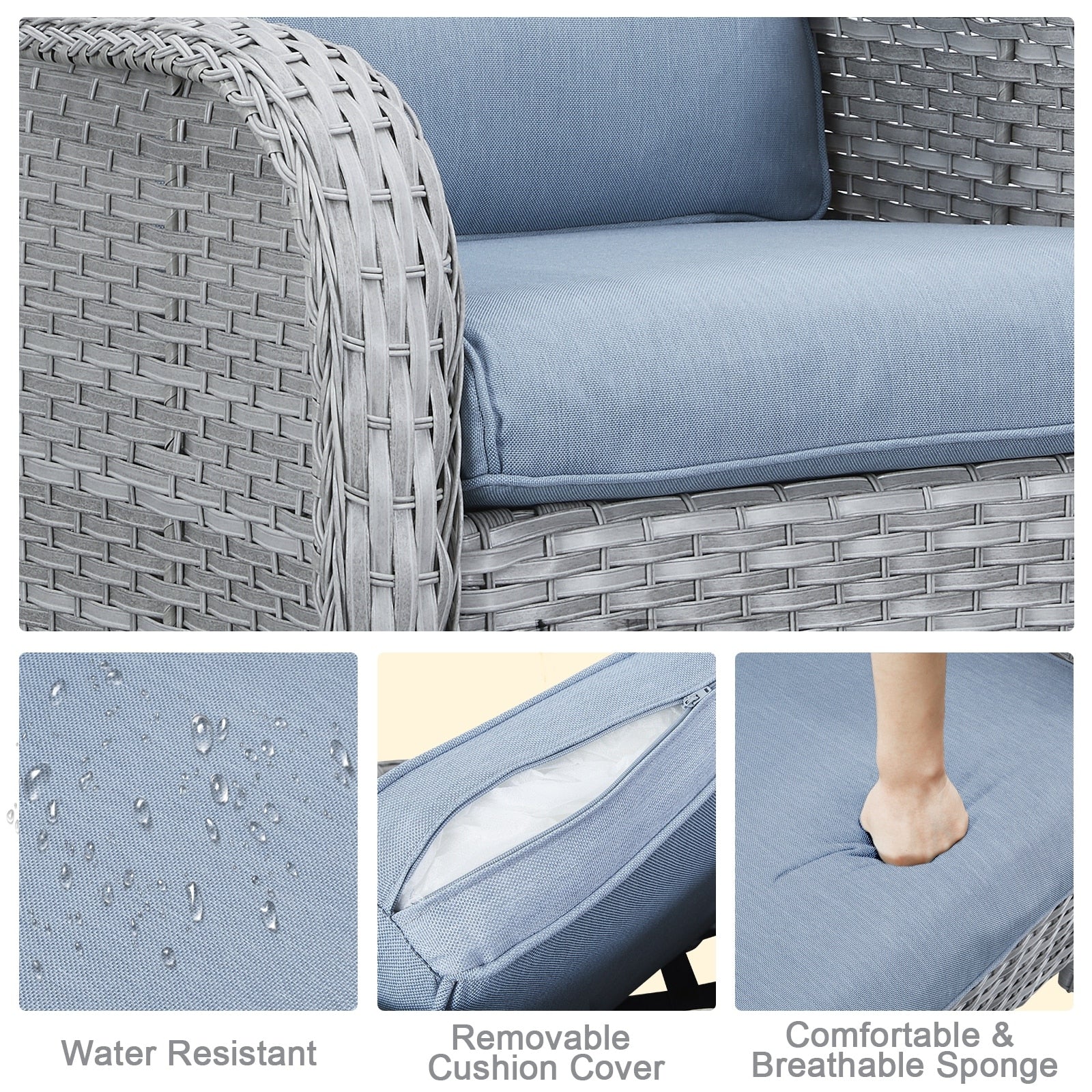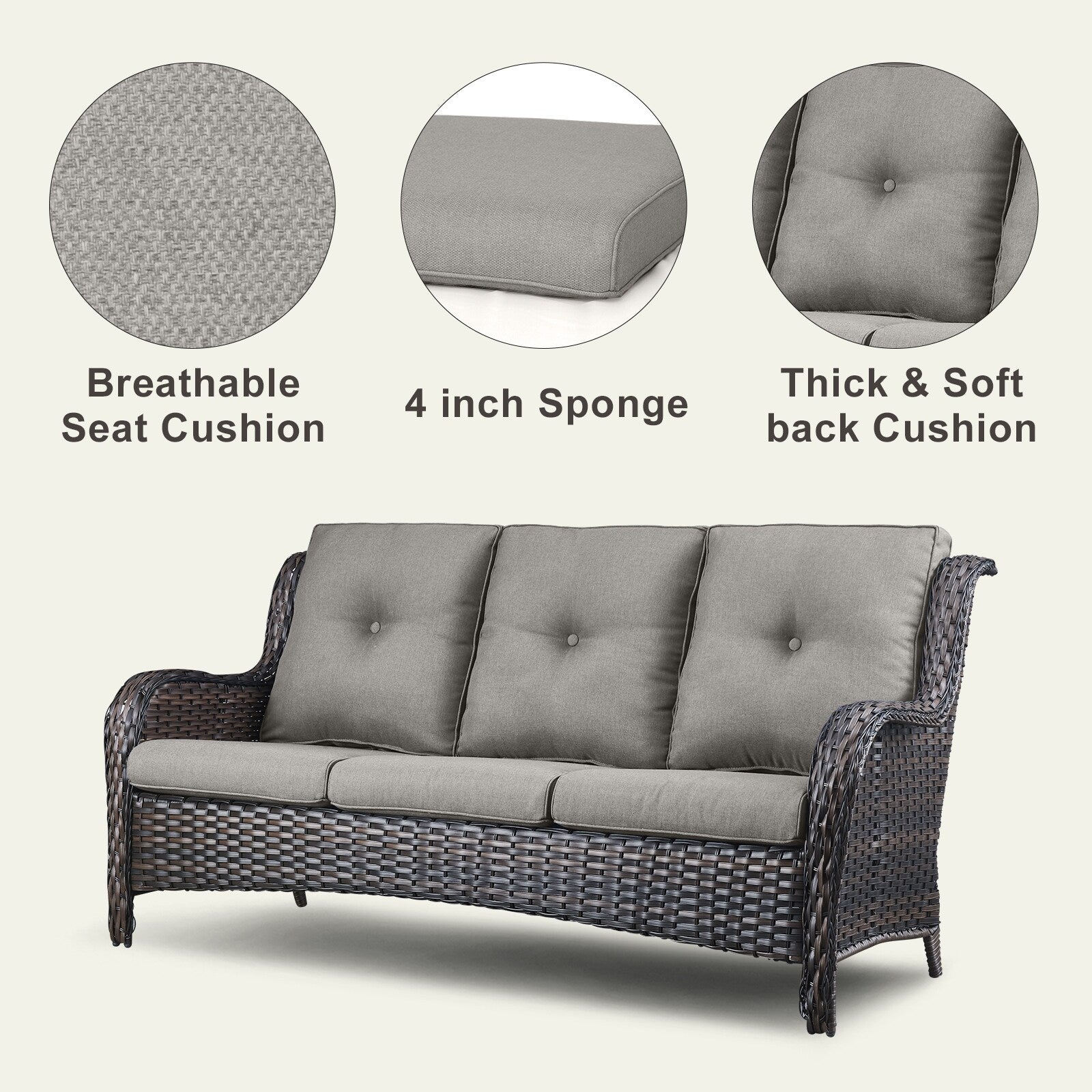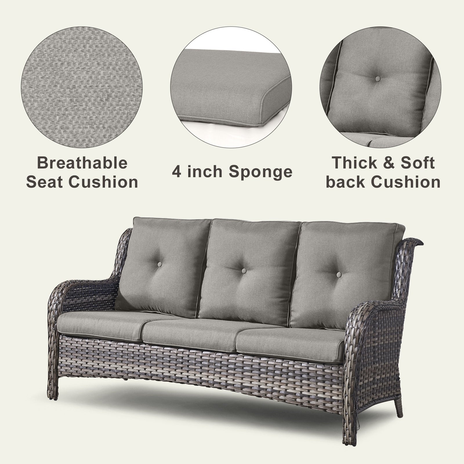 • Seduta profonda e cuscini confortevoli: sedute profonde e ampie con cuscini imbottiti in spugna spessi 10 cm. I cuscini offrono un'ottima elasticità, non si deformano o scivolano facilmente, proteggono la zona lombare e offrono una seduta confortevole.