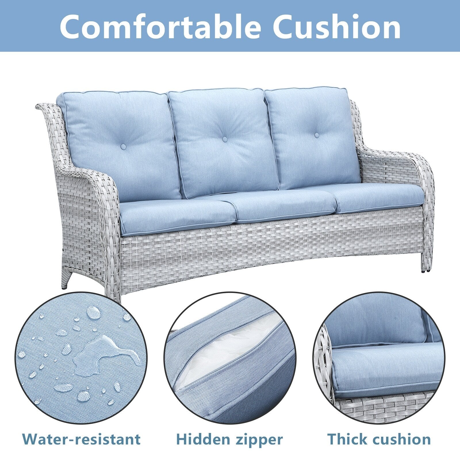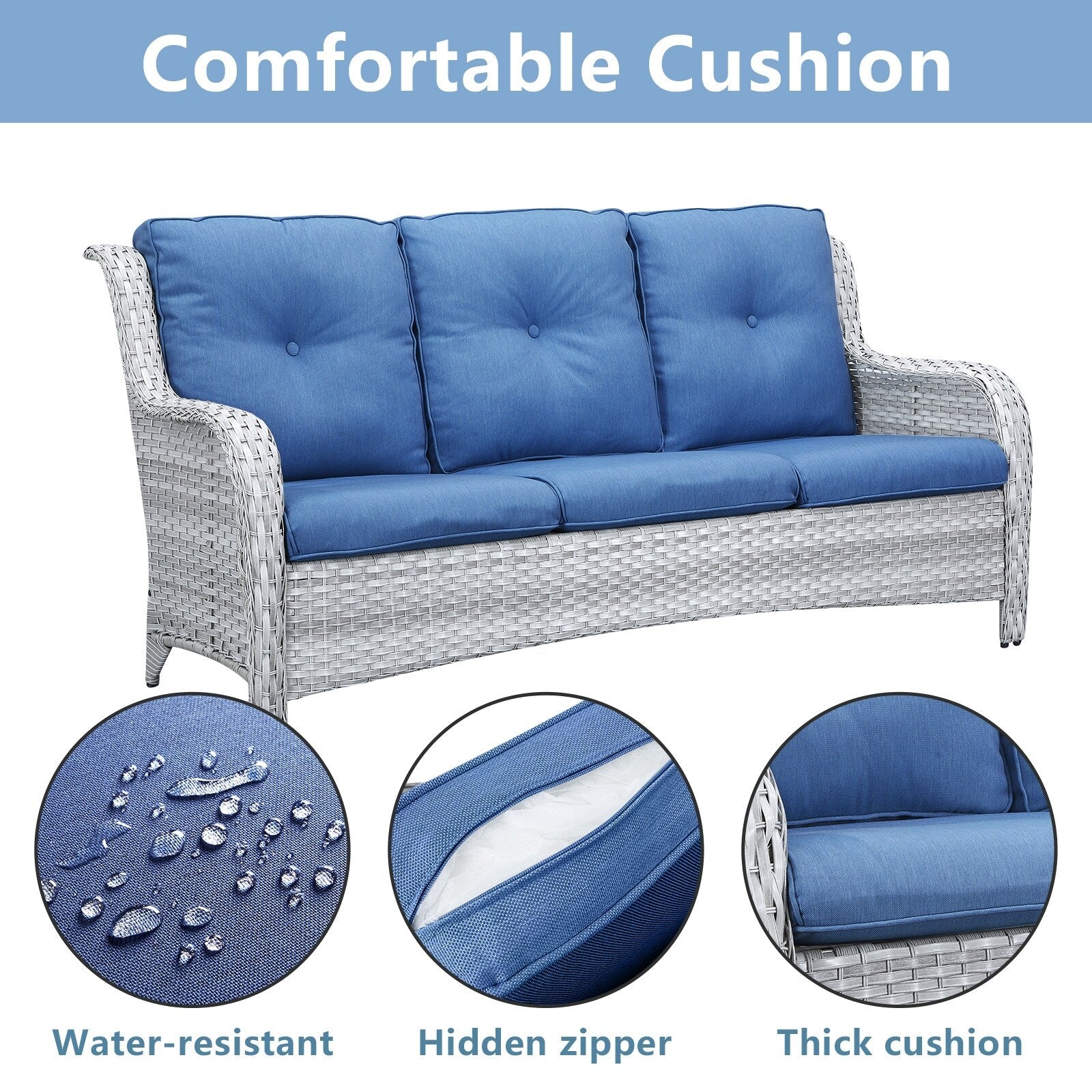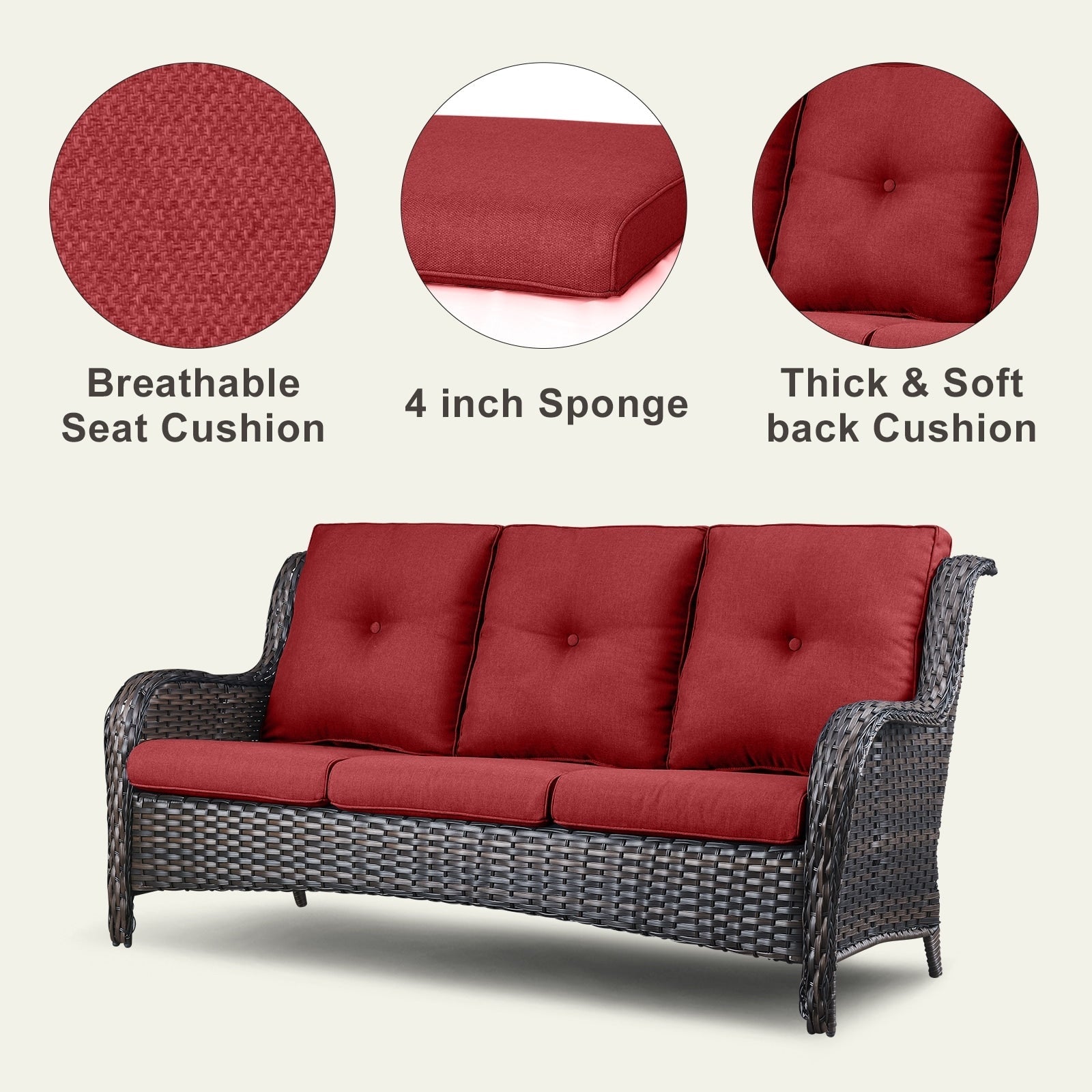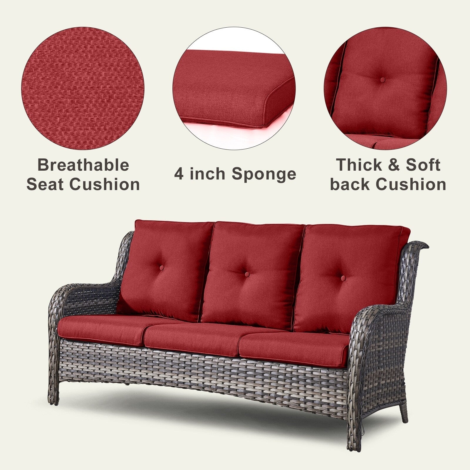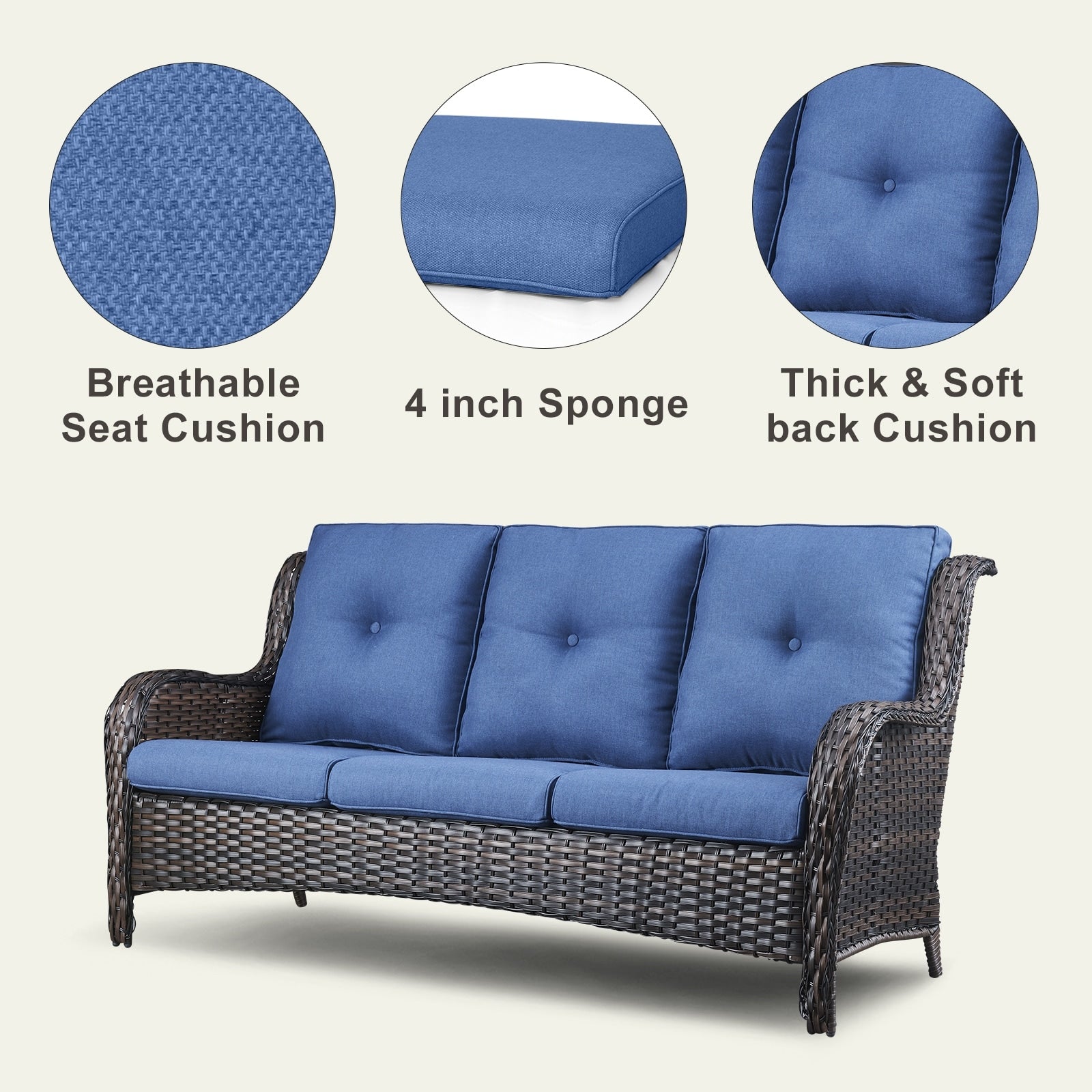 • Seduta profonda e cuscini confortevoli: sedute profonde e ampie con cuscini imbottiti in spugna spessi 10 cm. I cuscini offrono un'ottima elasticità, non si deformano o scivolano facilmente, proteggono la zona lombare e offrono una seduta confortevole.