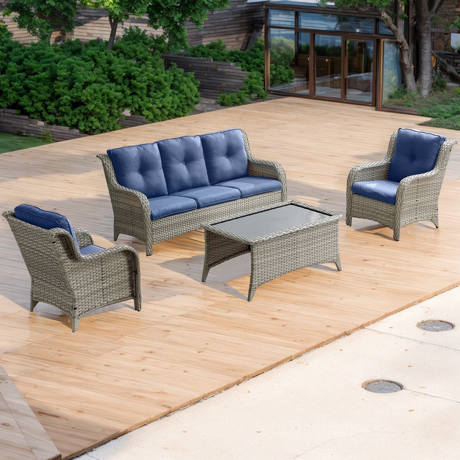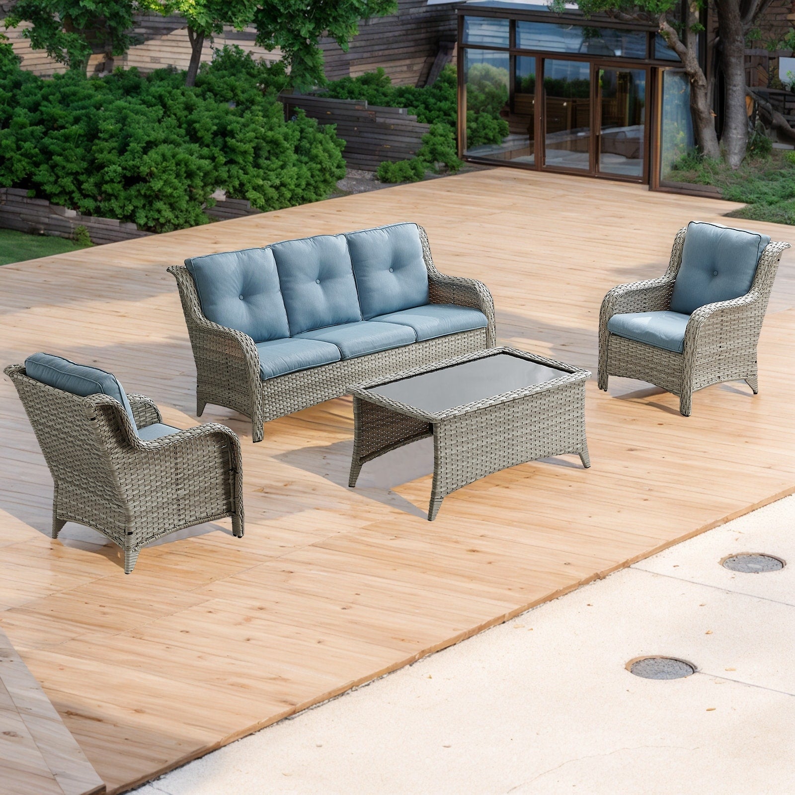 Divano da esterno Pocassy, ​​4 pezzi, sedia da giardino con tavolino