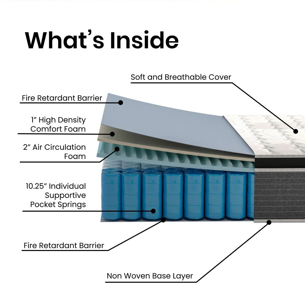 Grazie alla perfetta stratificazione di molle insacchettate singolarmente e schiuma certificata CertiPUR-US, priva di metalli pesanti, ftalati, BPDE, formaldeide e a ridotto contenuto di COV, questo materasso riduce il trasferimento del movimento e allevia i punti di pressione per più notti di sonno ininterrotto. Con un materasso Euro top, la parte superiore è a filo con i lati del materasso, per un migliore supporto sui bordi.