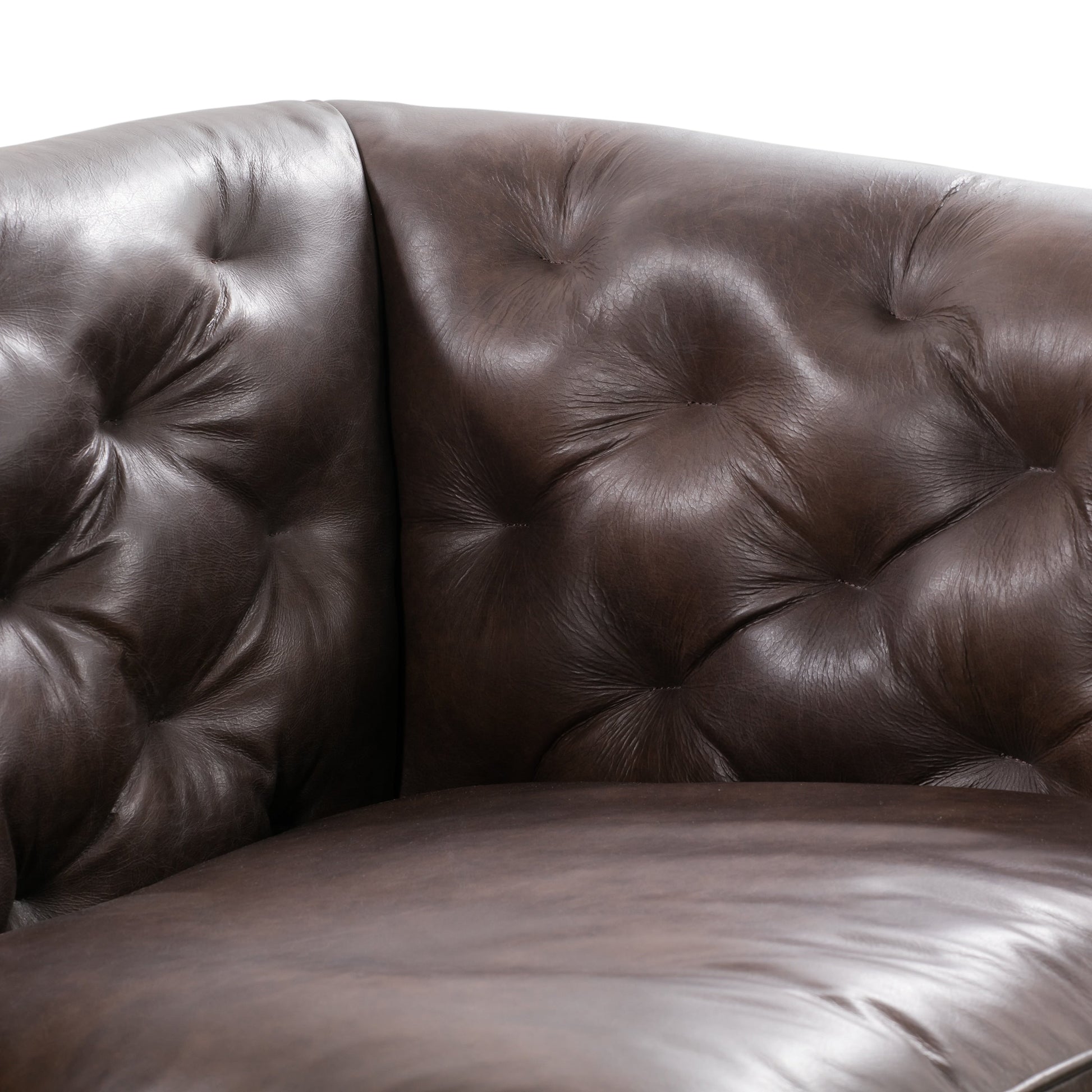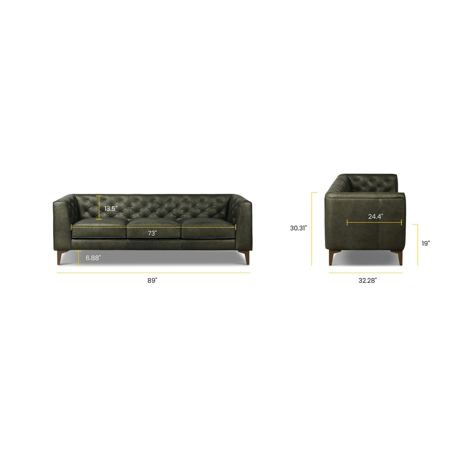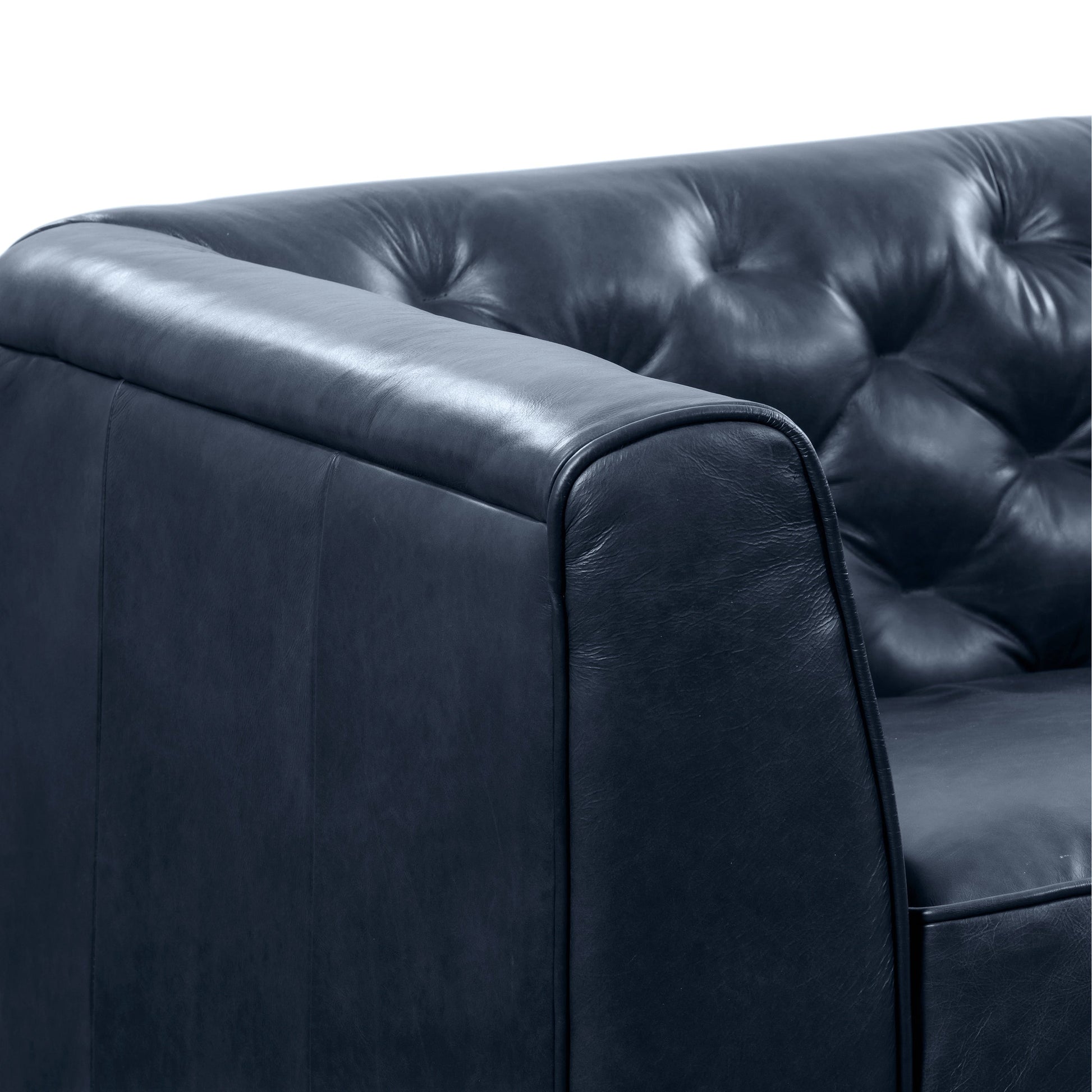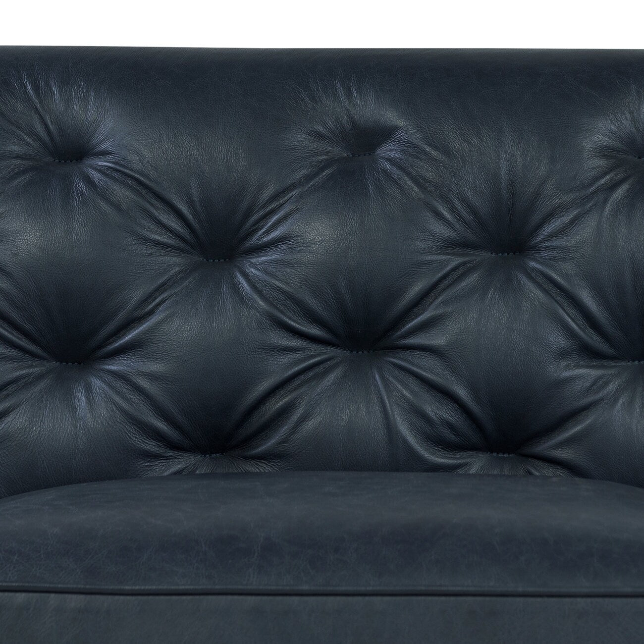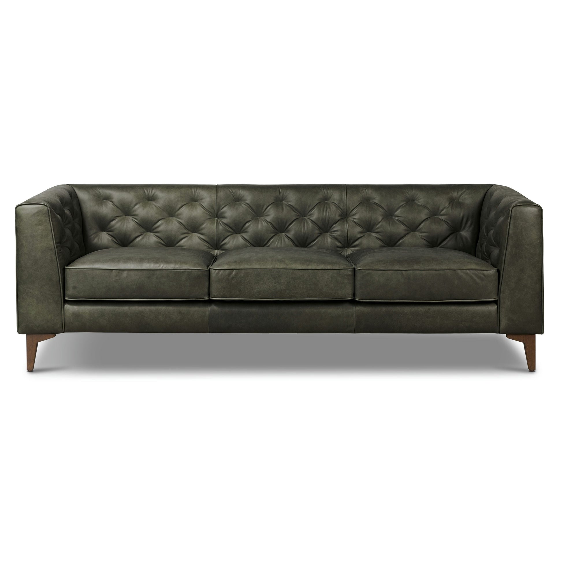 Realizzato con un omaggio alle silhouette vintage, il divano Essex dona un tocco di stile signorile al vostro soggiorno o studio con un ricco rivestimento in pelle pieno fiore conciata all'anilina pura (cognac, cacao) o semi-anilina (tutti gli altri colori). Il rivestimento in pelle conciata all'anilina pura, tinta all'anilina, enfatizza la bellezza naturale di ogni pelle, conferendo un aspetto unico a ogni pezzo. Con una lavorazione minima, le pelli all'anilina mostrano con orgoglio i tratti distintivi naturali della vera pelle, come rughe, segni di crescita, cicatrici rimarginate, punture di insetti e graffi. Simile al marmo o a un bellissimo pezzo di legno, ogni pelle varia nella tonalità e nel motivo e cambia, si macchia e si macchia, ammorbidendosi nella sua ricca patina con il tempo. Uno schienale trapuntato a rombi si estende su cuscini morbidi ed estremamente comodi, dotati di interni in piuma d'anatra, per un'esperienza di seduta all'altezza del look raffinato di questo divano. Le gambe affusolate in legno massello con finitura mogano aggiungono un tocco sartoriale a questo classico moderno.