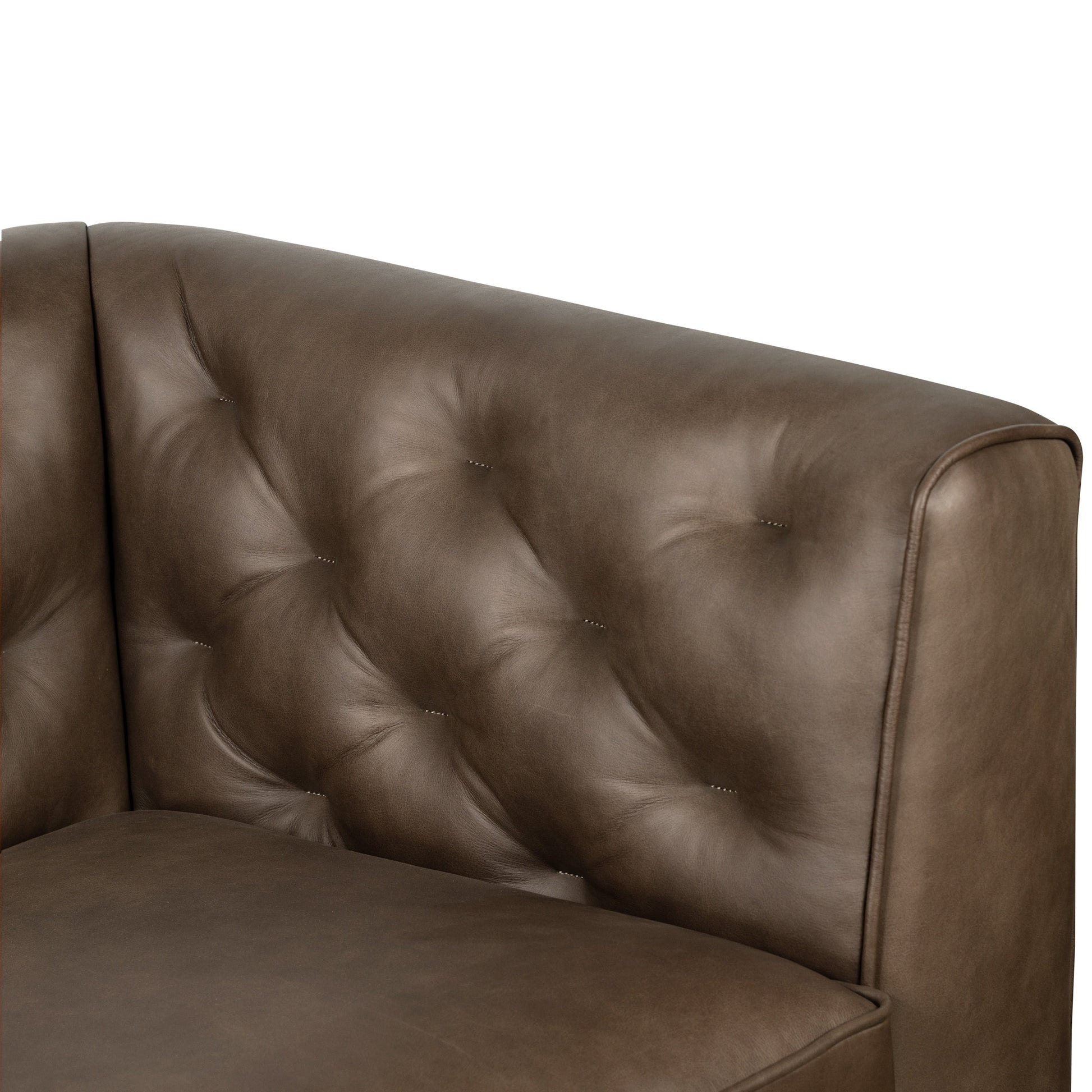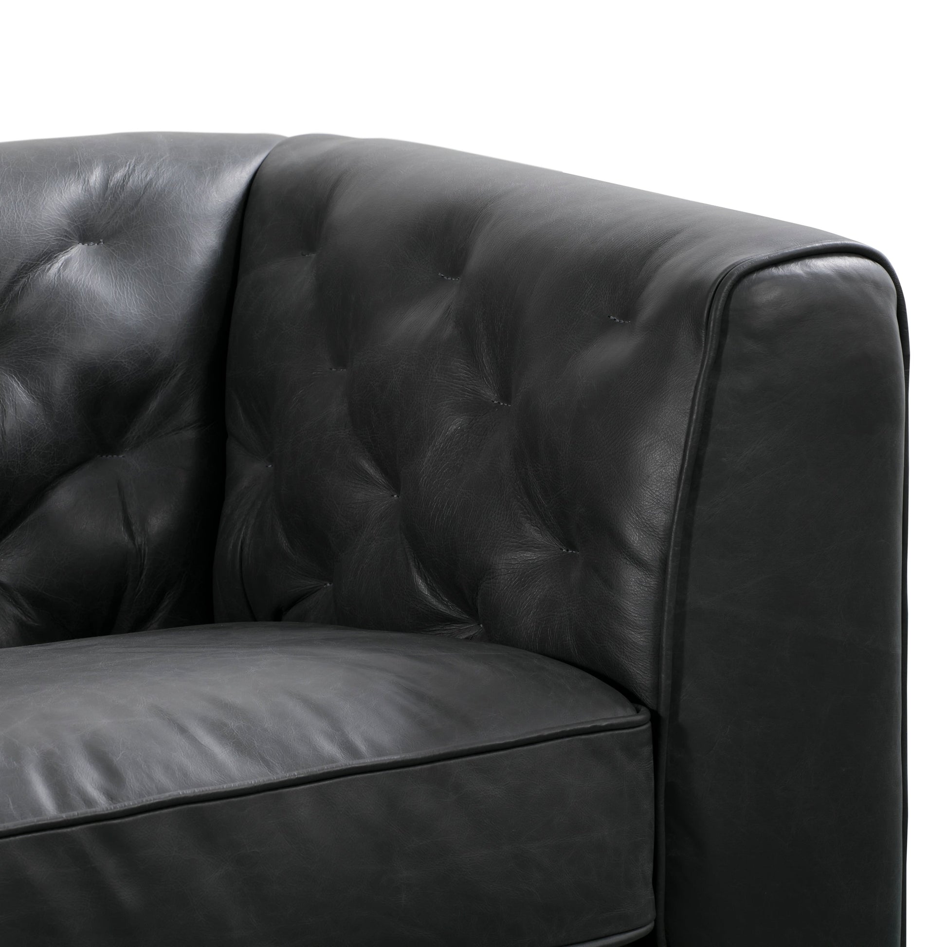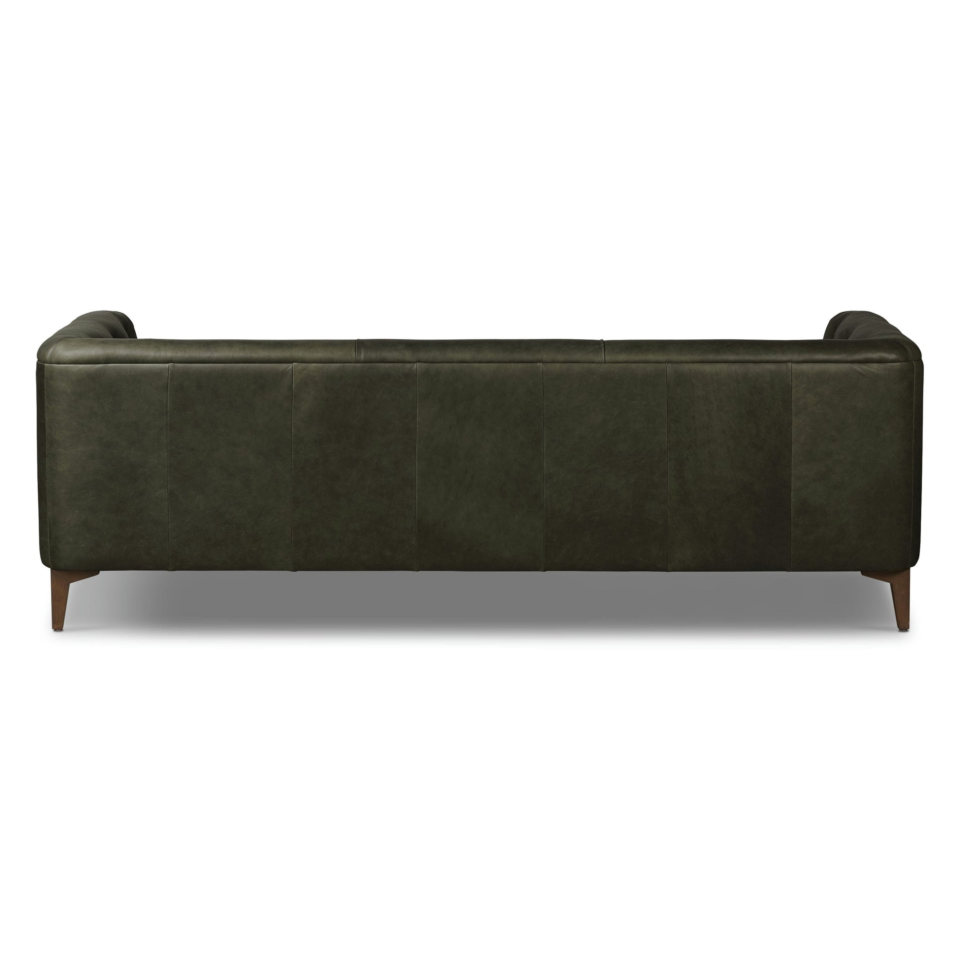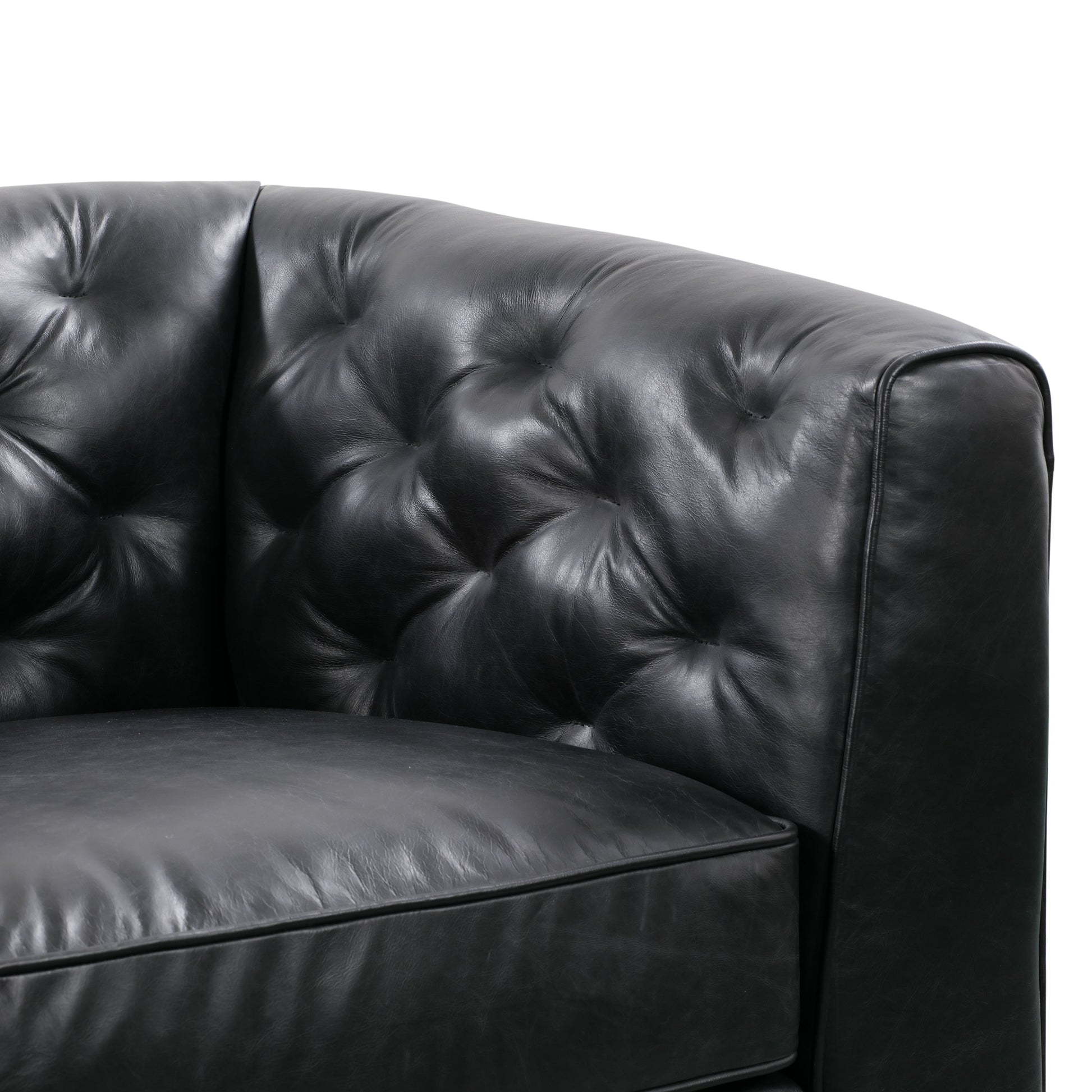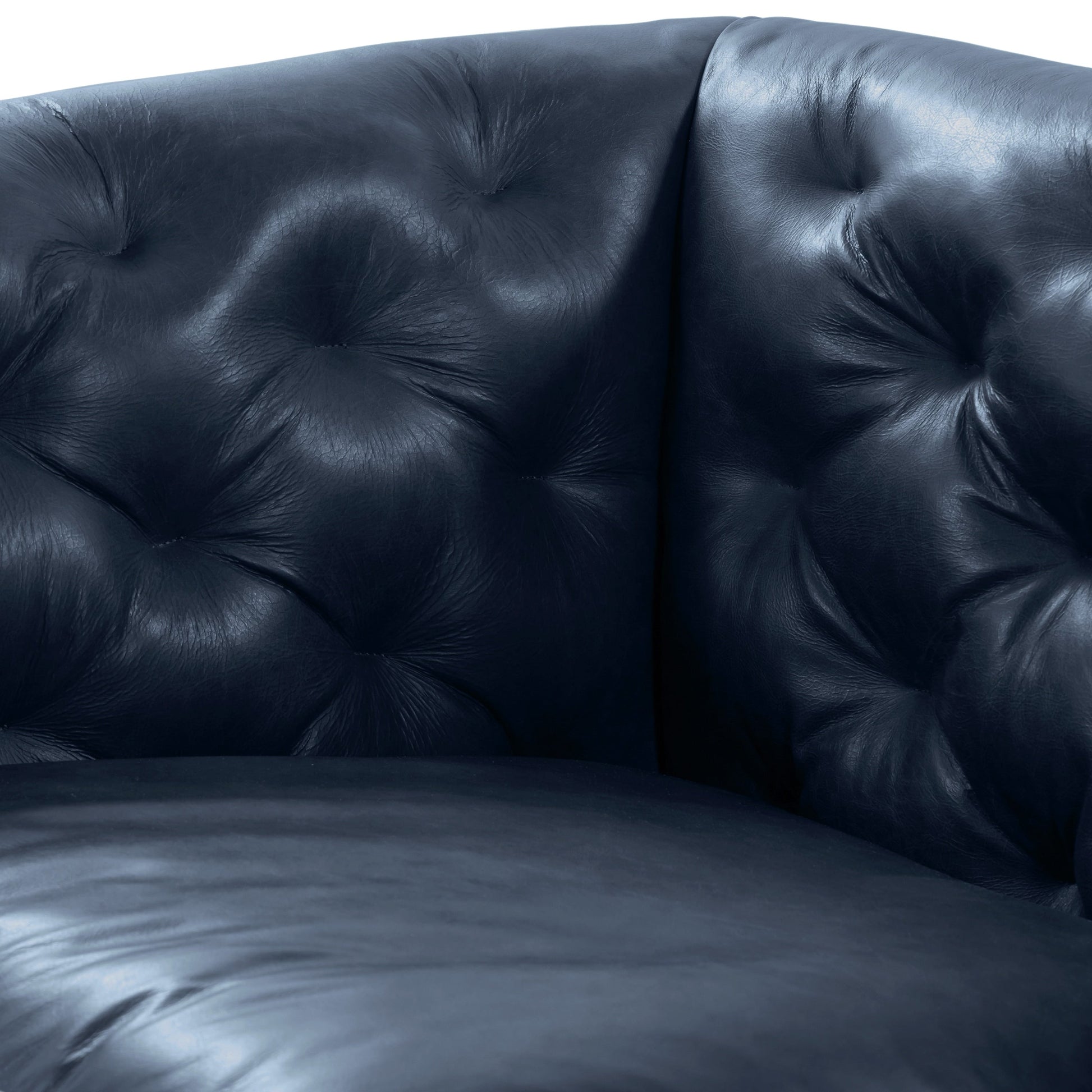 Realizzato con un omaggio alle silhouette vintage, il divano Essex dona un tocco di stile signorile al vostro soggiorno o studio con un ricco rivestimento in pelle pieno fiore conciata all'anilina pura (cognac, cacao) o semi-anilina (tutti gli altri colori). Il rivestimento in pelle conciata all'anilina pura, tinta all'anilina, enfatizza la bellezza naturale di ogni pelle, conferendo un aspetto unico a ogni pezzo. Con una lavorazione minima, le pelli all'anilina mostrano con orgoglio i tratti distintivi naturali della vera pelle, come rughe, segni di crescita, cicatrici rimarginate, punture di insetti e graffi. Simile al marmo o a un bellissimo pezzo di legno, ogni pelle varia nella tonalità e nel motivo e cambia, si macchia e si macchia, ammorbidendosi nella sua ricca patina con il tempo. Uno schienale trapuntato a rombi si estende su cuscini morbidi ed estremamente comodi, dotati di interni in piuma d'anatra, per un'esperienza di seduta all'altezza del look raffinato di questo divano. Le gambe affusolate in legno massello con finitura mogano aggiungono un tocco sartoriale a questo classico moderno.