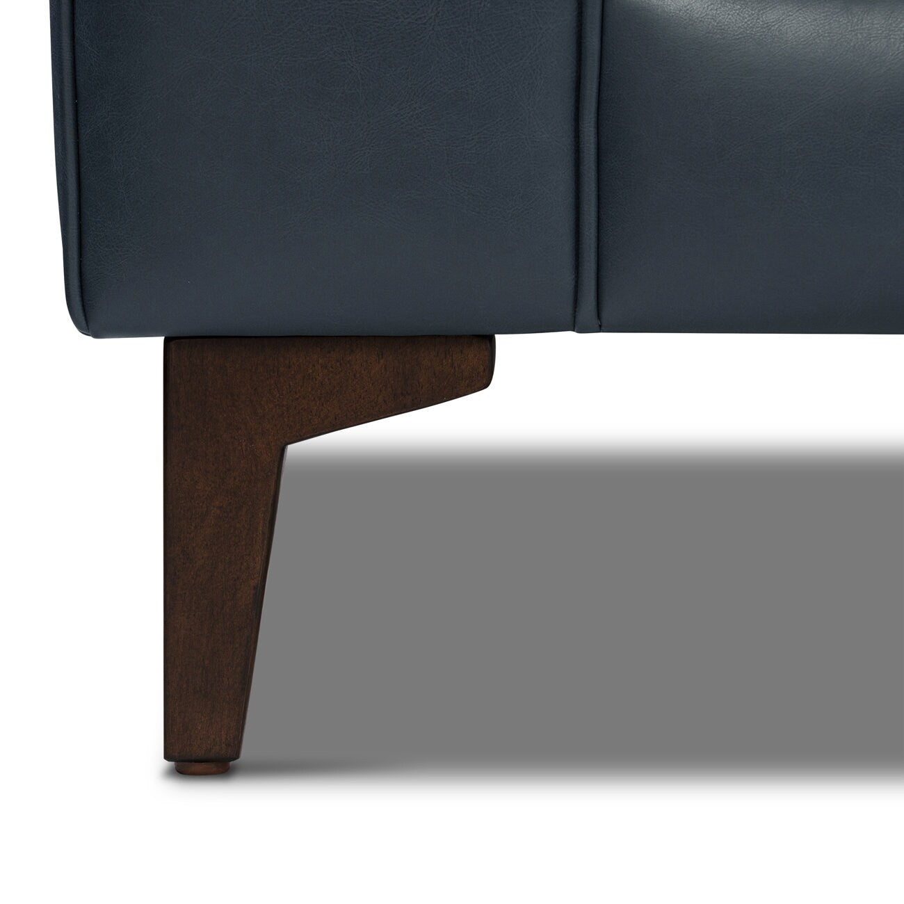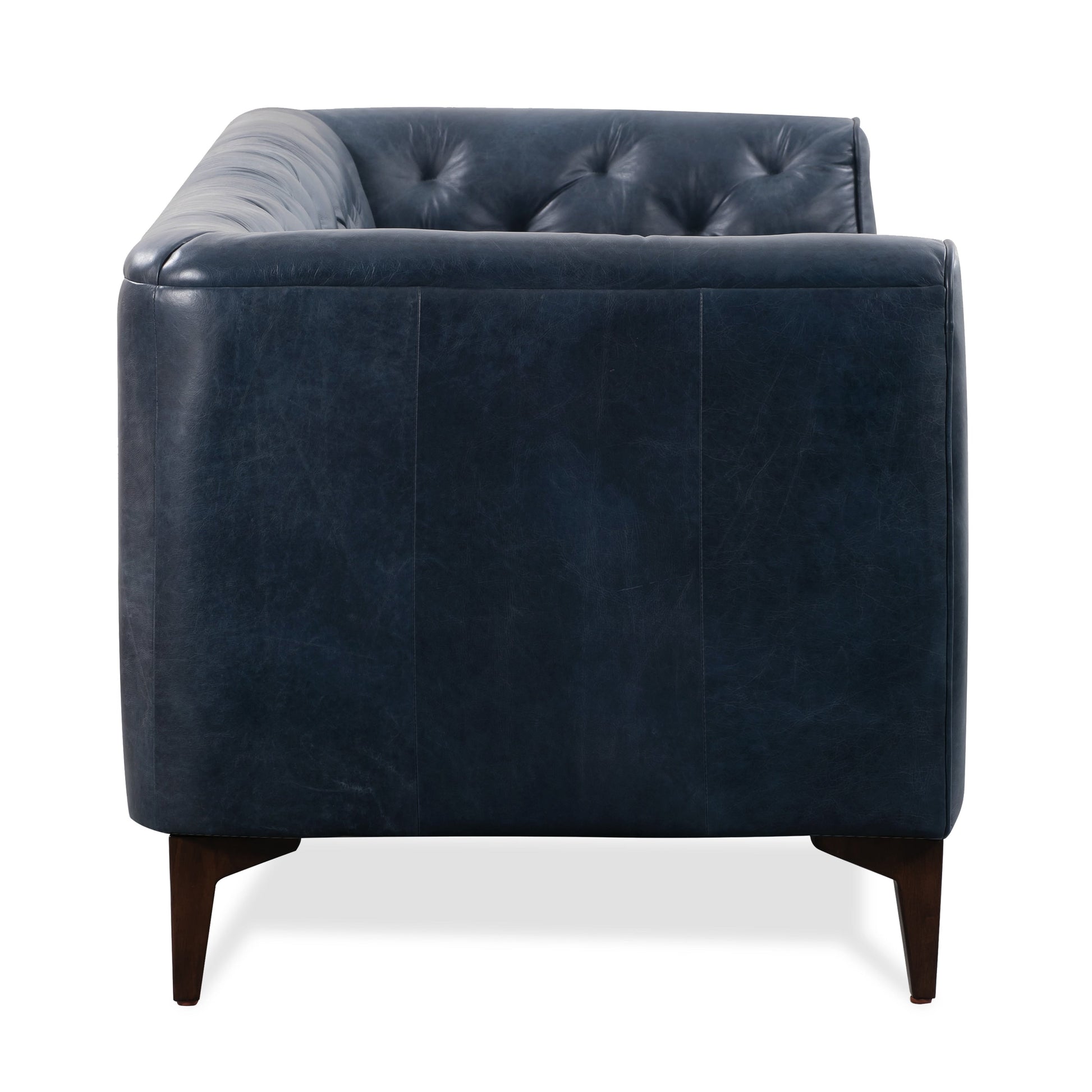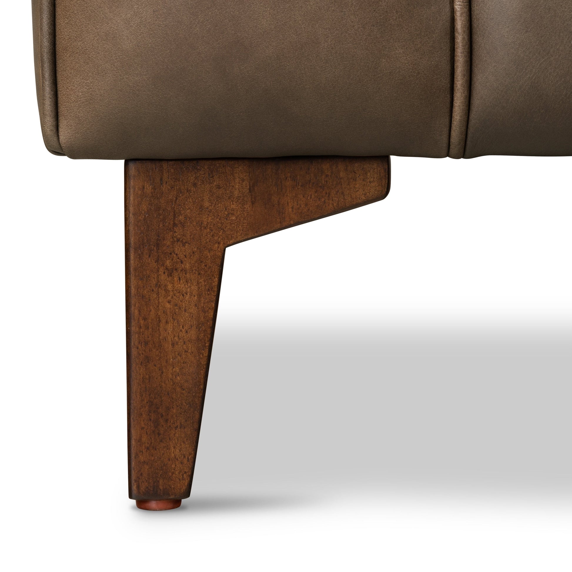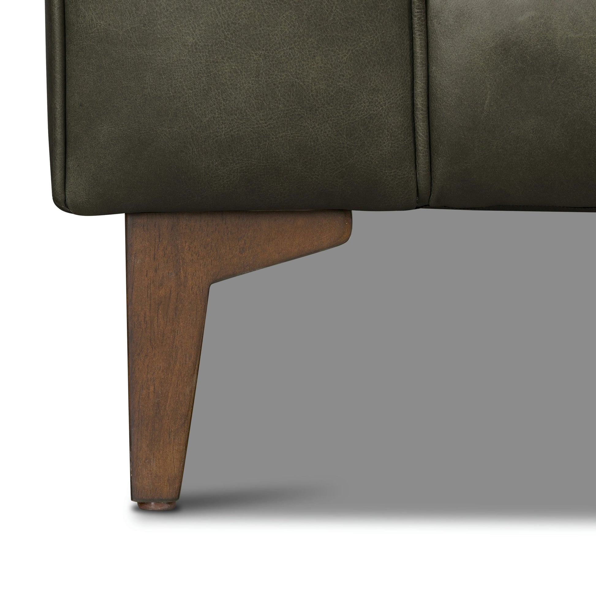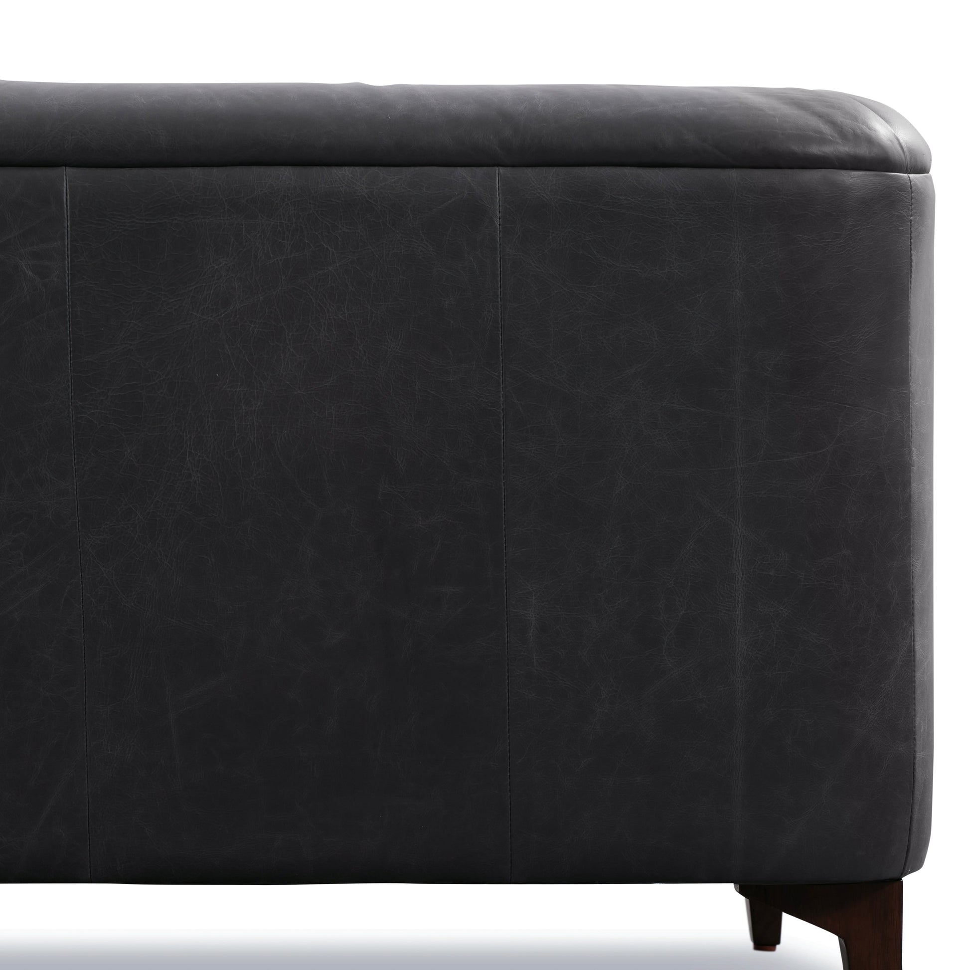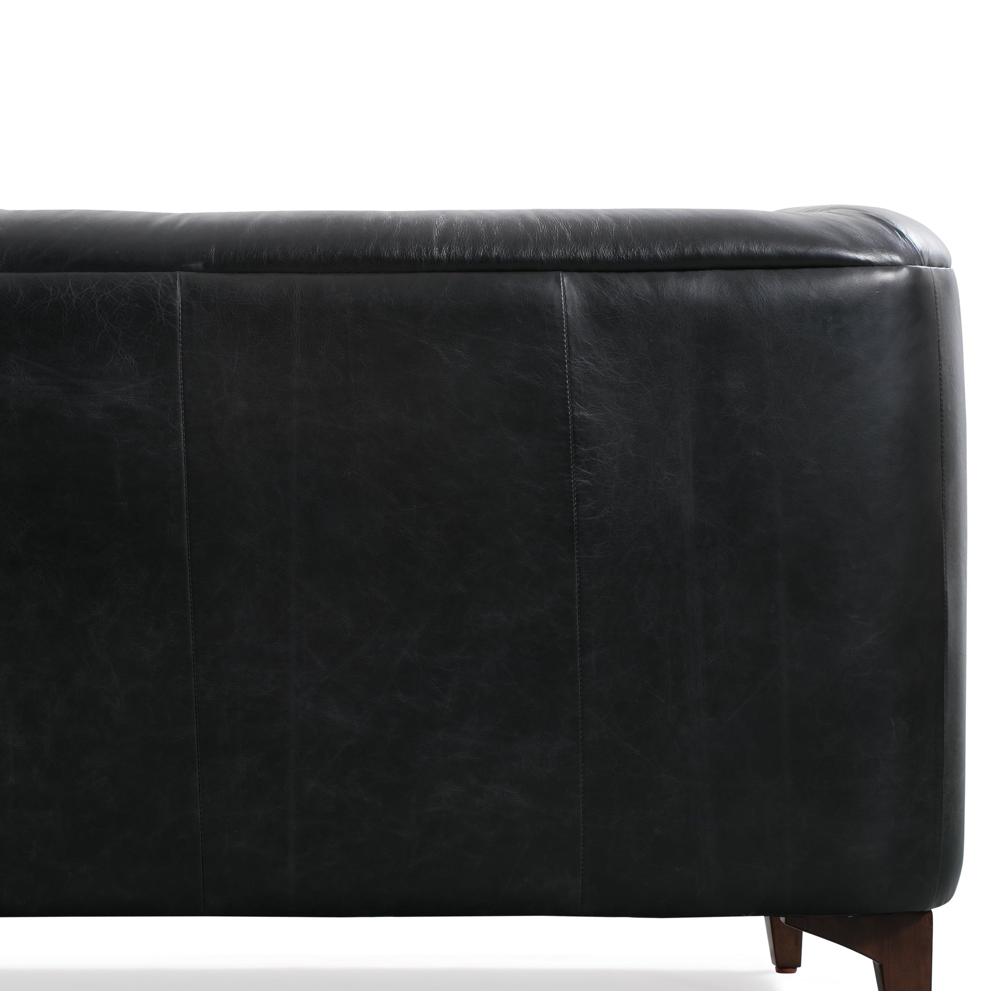 Realizzato con un omaggio alle silhouette vintage, il divano Essex dona un tocco di stile signorile al vostro soggiorno o studio con un ricco rivestimento in pelle pieno fiore conciata all'anilina pura (cognac, cacao) o semi-anilina (tutti gli altri colori). Il rivestimento in pelle conciata all'anilina pura, tinta all'anilina, enfatizza la bellezza naturale di ogni pelle, conferendo un aspetto unico a ogni pezzo. Con una lavorazione minima, le pelli all'anilina mostrano con orgoglio i tratti distintivi naturali della vera pelle, come rughe, segni di crescita, cicatrici rimarginate, punture di insetti e graffi. Simile al marmo o a un bellissimo pezzo di legno, ogni pelle varia nella tonalità e nel motivo e cambia, si macchia e si macchia, ammorbidendosi nella sua ricca patina con il tempo. Uno schienale trapuntato a rombi si estende su cuscini morbidi ed estremamente comodi, dotati di interni in piuma d'anatra, per un'esperienza di seduta all'altezza del look raffinato di questo divano. Le gambe affusolate in legno massello con finitura mogano aggiungono un tocco sartoriale a questo classico moderno.