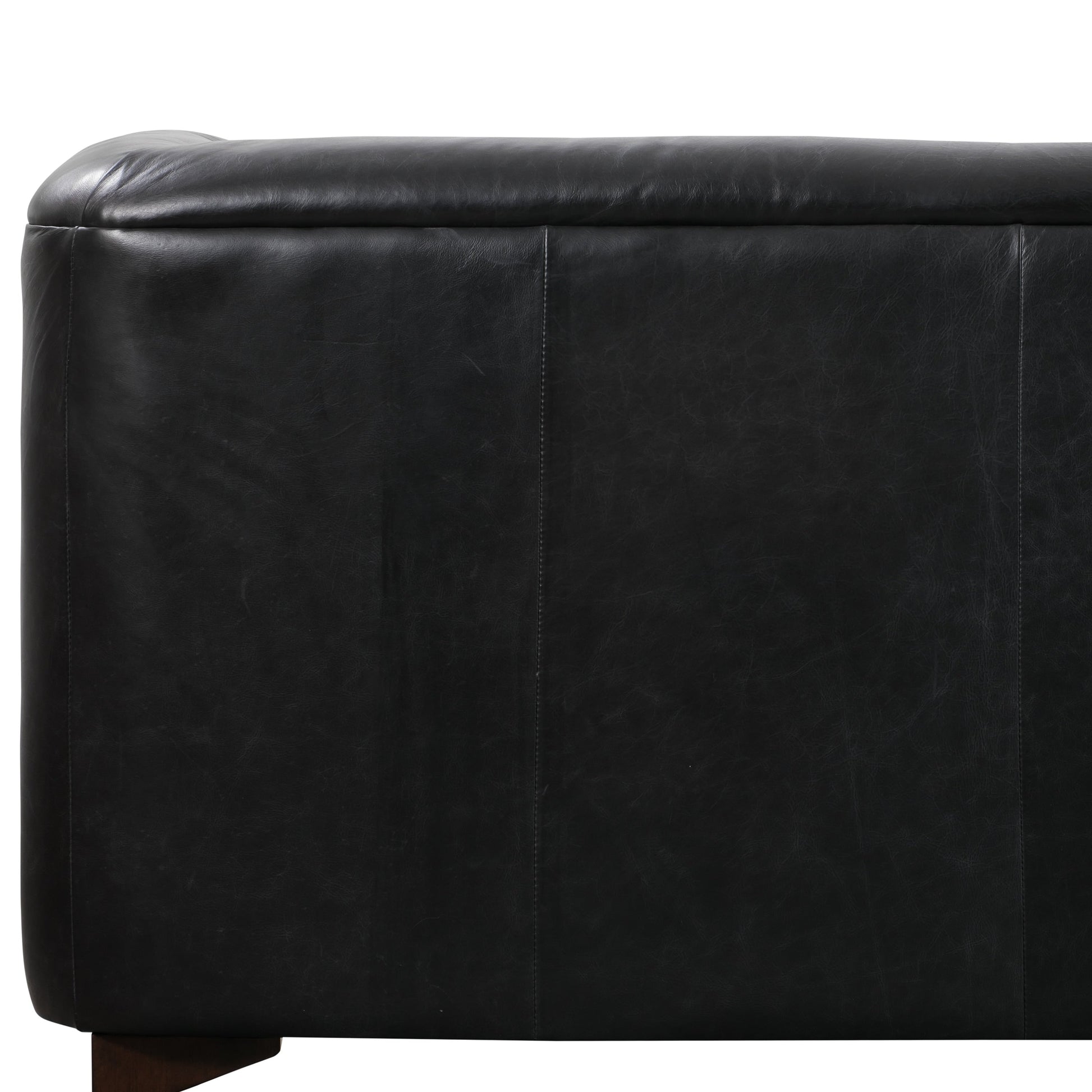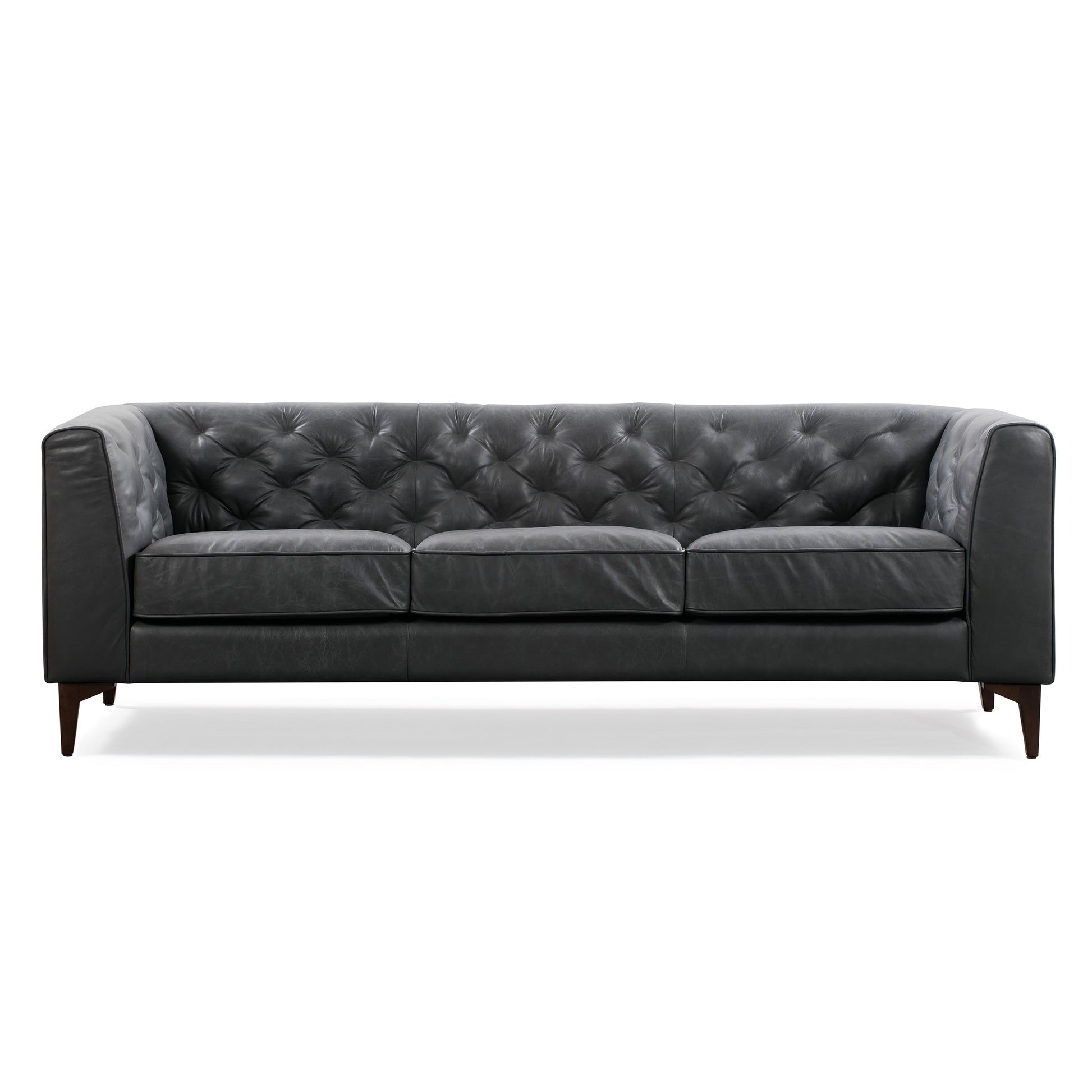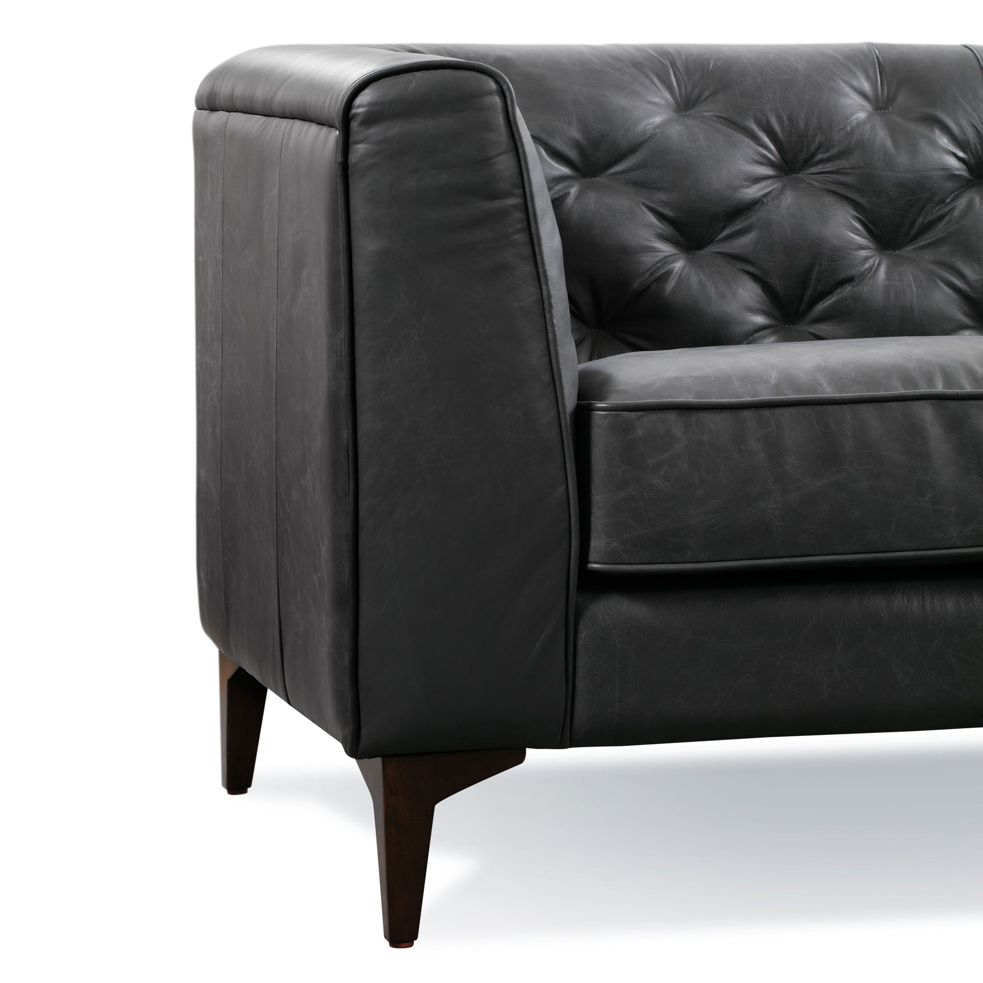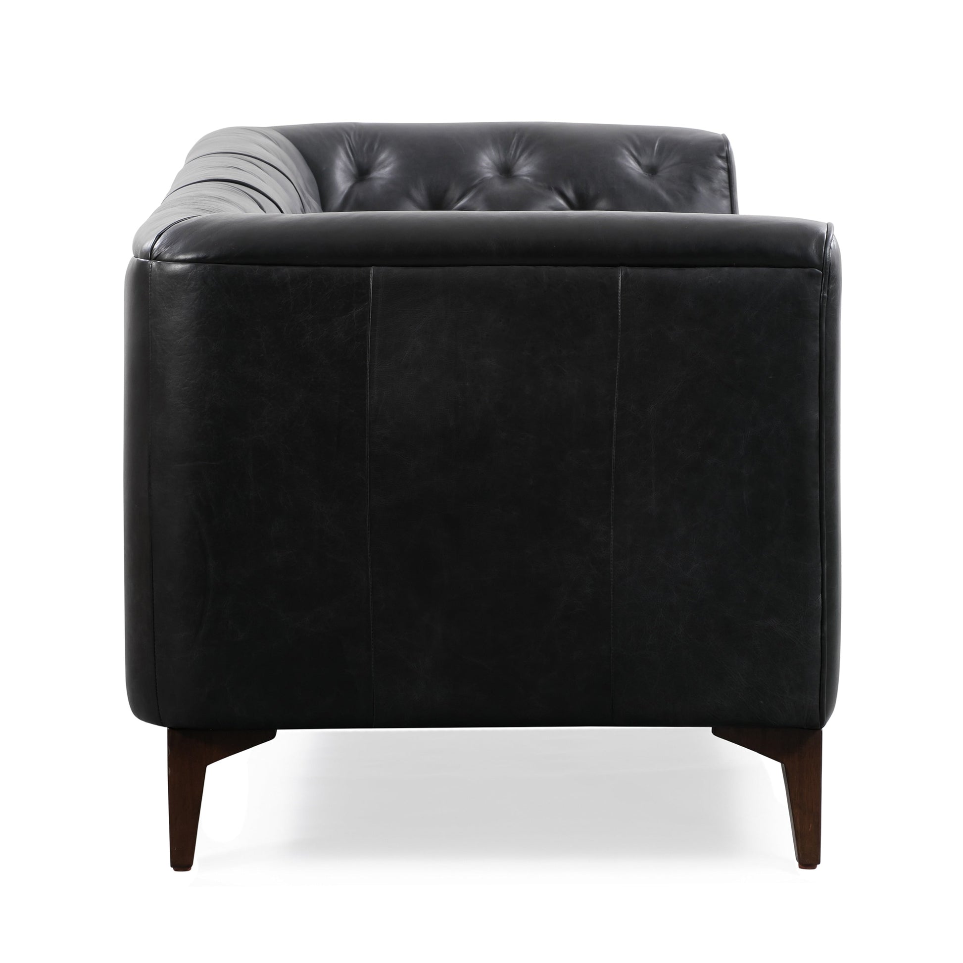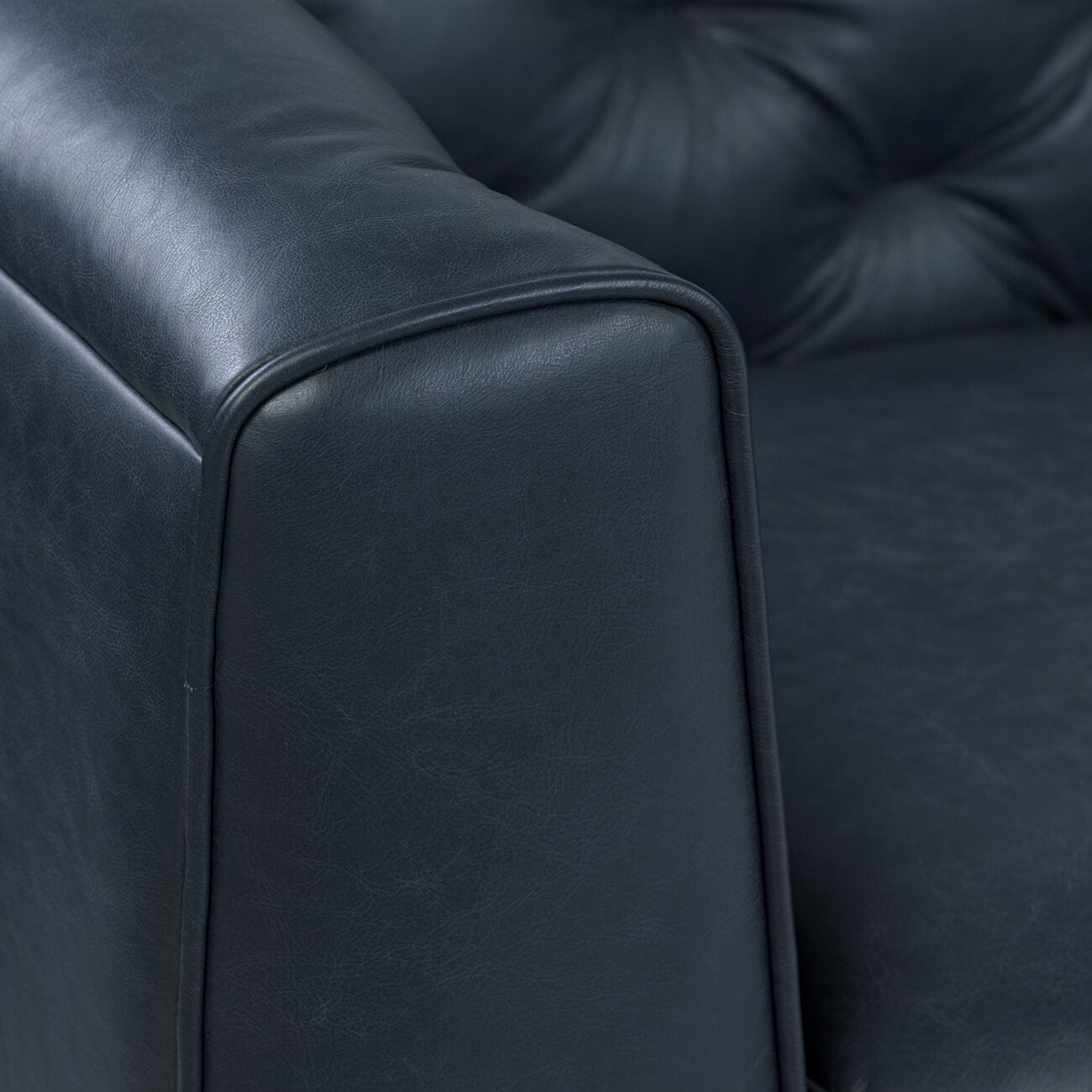 Realizzato con un omaggio alle silhouette vintage, il divano Essex dona un tocco di stile signorile al vostro soggiorno o studio con un ricco rivestimento in pelle pieno fiore conciata all'anilina pura (cognac, cacao) o semi-anilina (tutti gli altri colori). Il rivestimento in pelle conciata all'anilina pura, tinta all'anilina, enfatizza la bellezza naturale di ogni pelle, conferendo un aspetto unico a ogni pezzo. Con una lavorazione minima, le pelli all'anilina mostrano con orgoglio i tratti distintivi naturali della vera pelle, come rughe, segni di crescita, cicatrici rimarginate, punture di insetti e graffi. Simile al marmo o a un bellissimo pezzo di legno, ogni pelle varia nella tonalità e nel motivo e cambia, si macchia e si macchia, ammorbidendosi nella sua ricca patina con il tempo. Uno schienale trapuntato a rombi si estende su cuscini morbidi ed estremamente comodi, dotati di interni in piuma d'anatra, per un'esperienza di seduta all'altezza del look raffinato di questo divano. Le gambe affusolate in legno massello con finitura mogano aggiungono un tocco sartoriale a questo classico moderno.