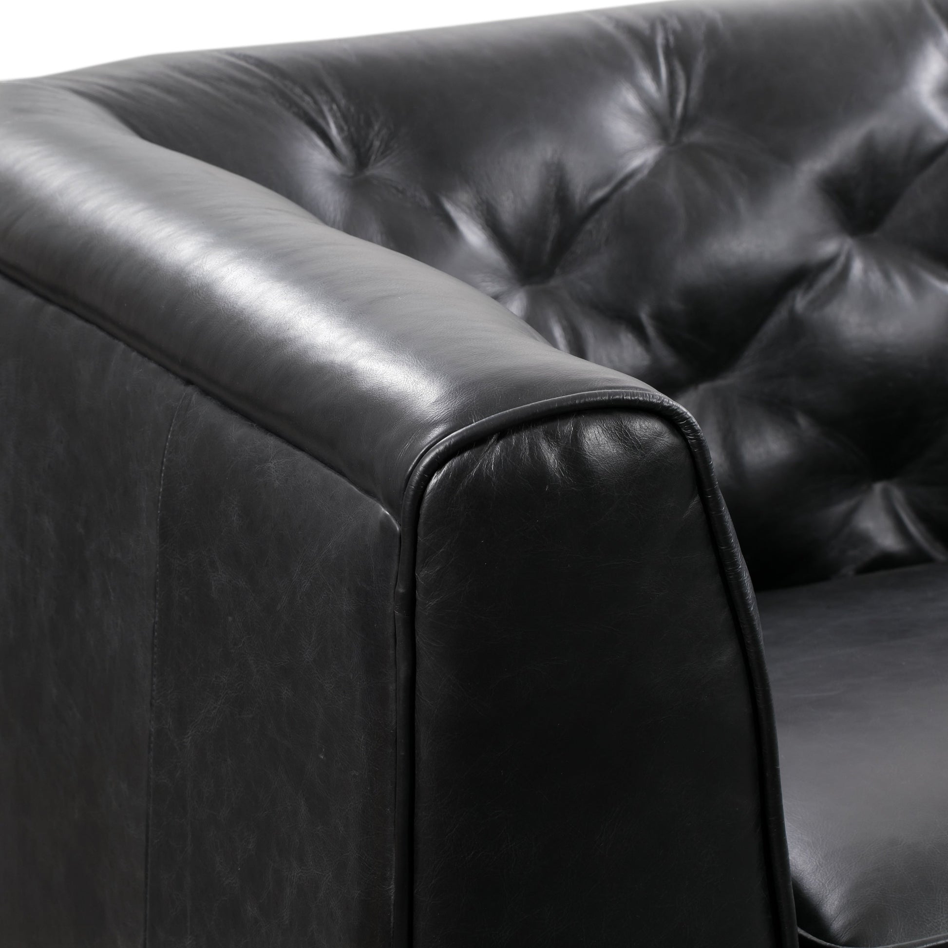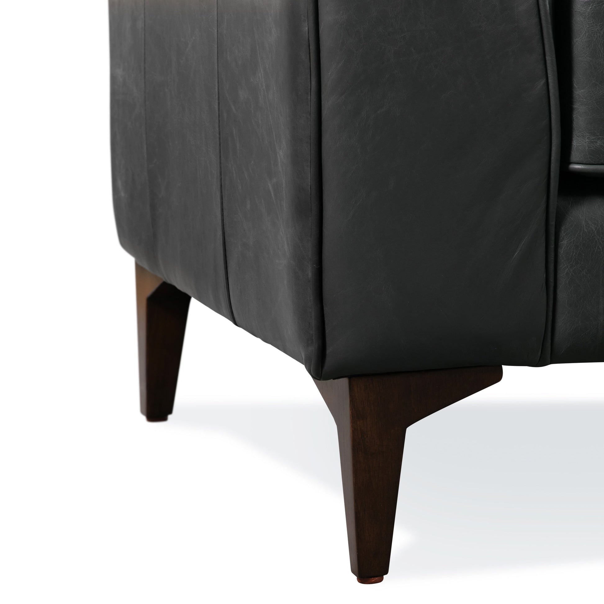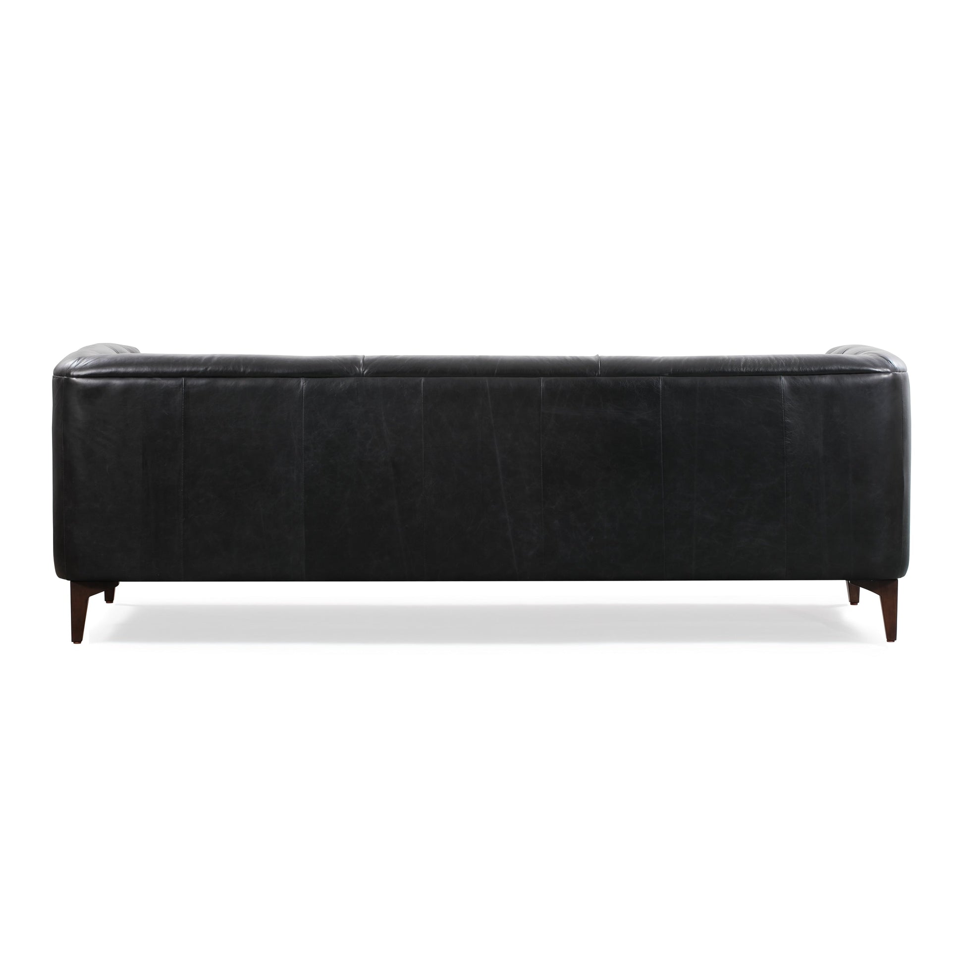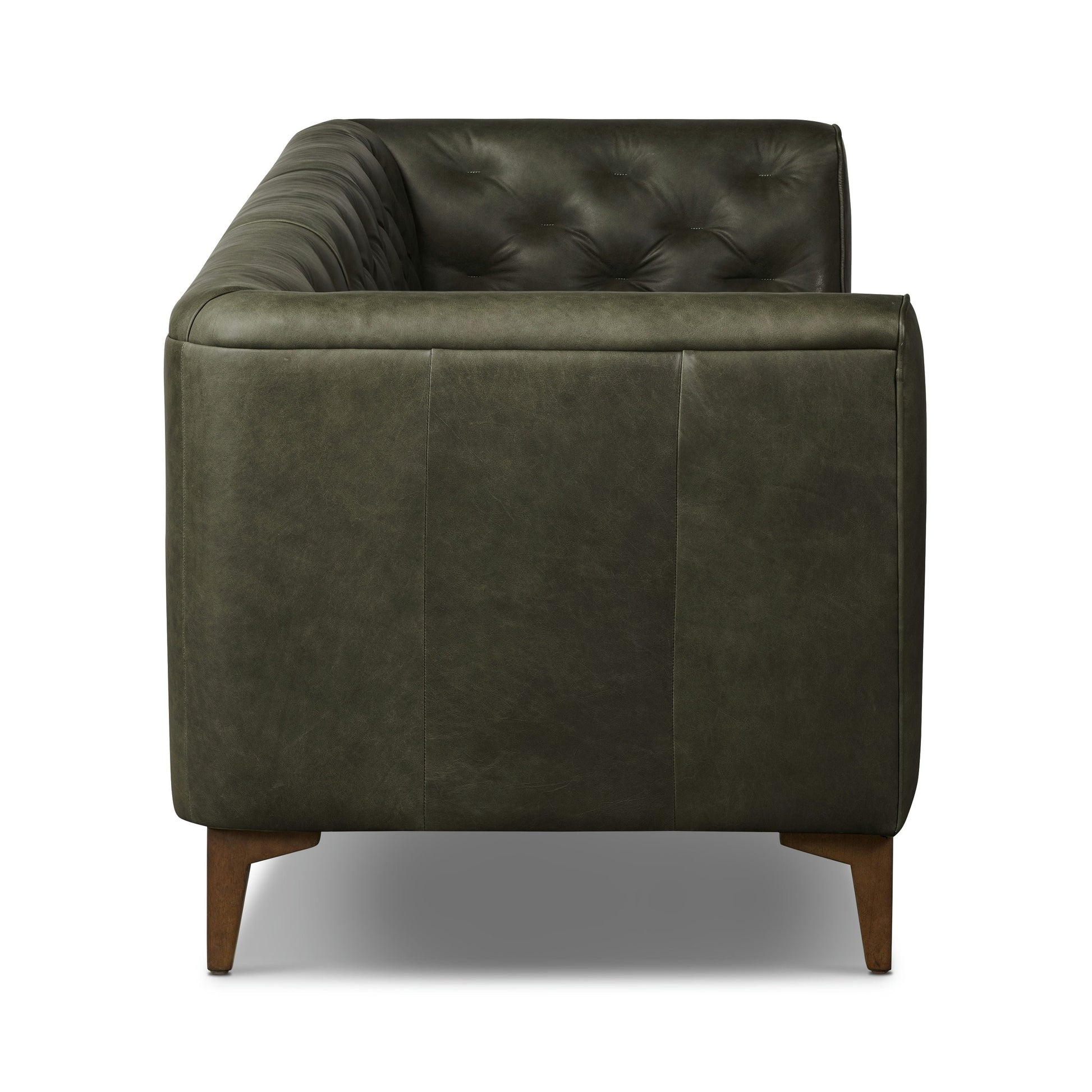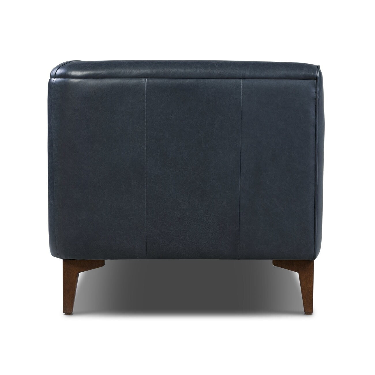 Realizzato con un omaggio alle silhouette vintage, il divano Essex dona un tocco di stile signorile al vostro soggiorno o studio con un ricco rivestimento in pelle pieno fiore conciata all'anilina pura (cognac, cacao) o semi-anilina (tutti gli altri colori). Il rivestimento in pelle conciata all'anilina pura, tinta all'anilina, enfatizza la bellezza naturale di ogni pelle, conferendo un aspetto unico a ogni pezzo. Con una lavorazione minima, le pelli all'anilina mostrano con orgoglio i tratti distintivi naturali della vera pelle, come rughe, segni di crescita, cicatrici rimarginate, punture di insetti e graffi. Simile al marmo o a un bellissimo pezzo di legno, ogni pelle varia nella tonalità e nel motivo e cambia, si macchia e si macchia, ammorbidendosi nella sua ricca patina con il tempo. Uno schienale trapuntato a rombi si estende su cuscini morbidi ed estremamente comodi, dotati di interni in piuma d'anatra, per un'esperienza di seduta all'altezza del look raffinato di questo divano. Le gambe affusolate in legno massello con finitura mogano aggiungono un tocco sartoriale a questo classico moderno.
