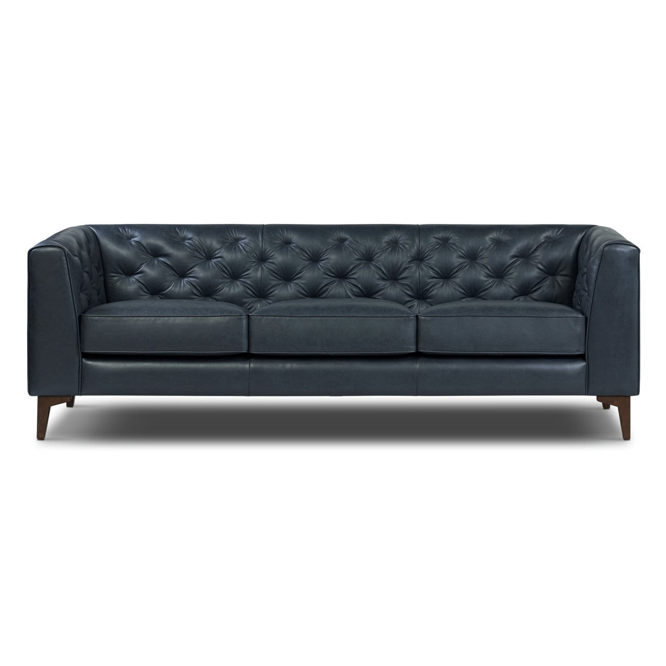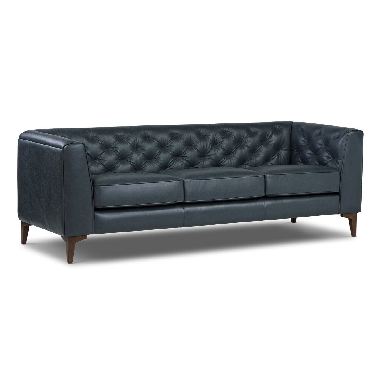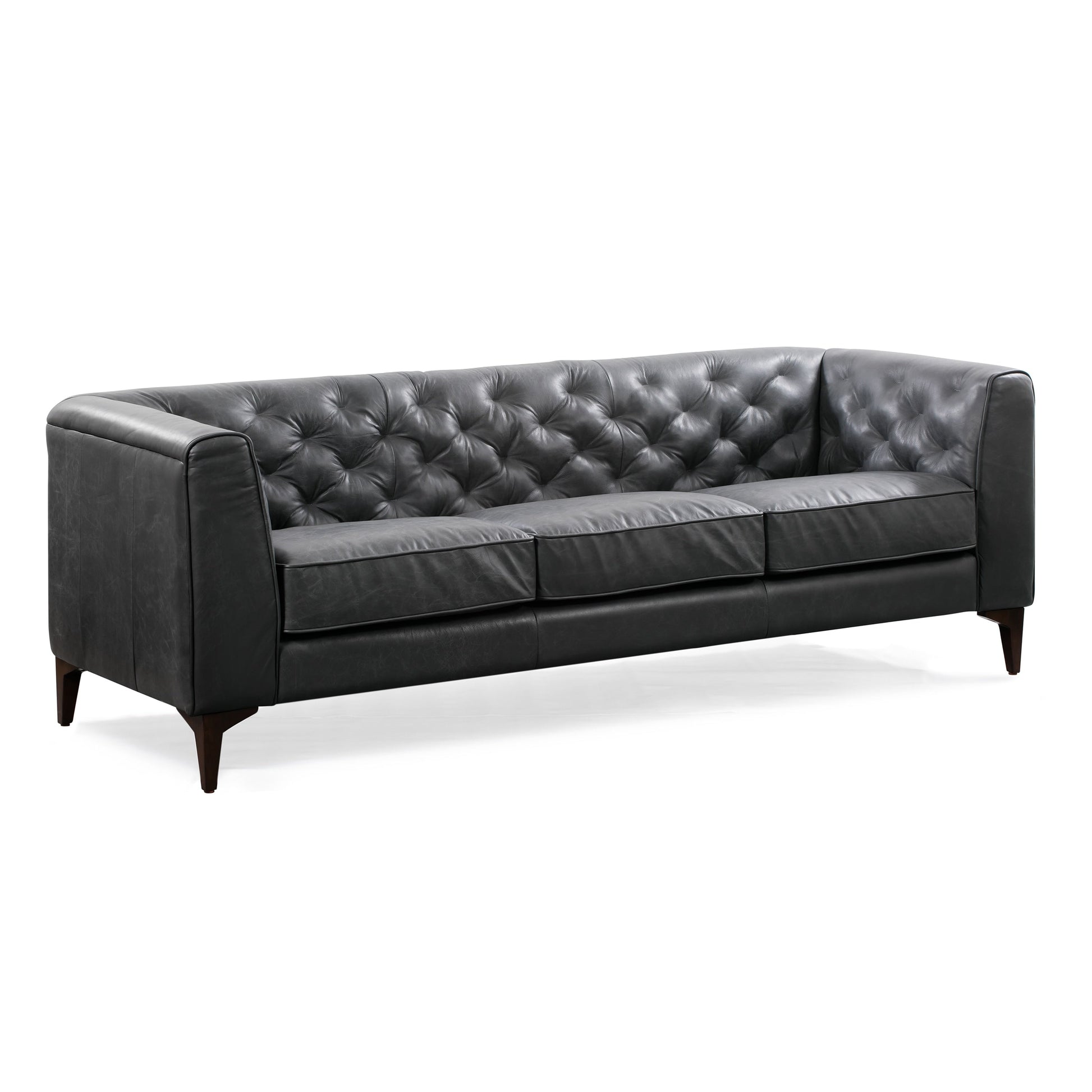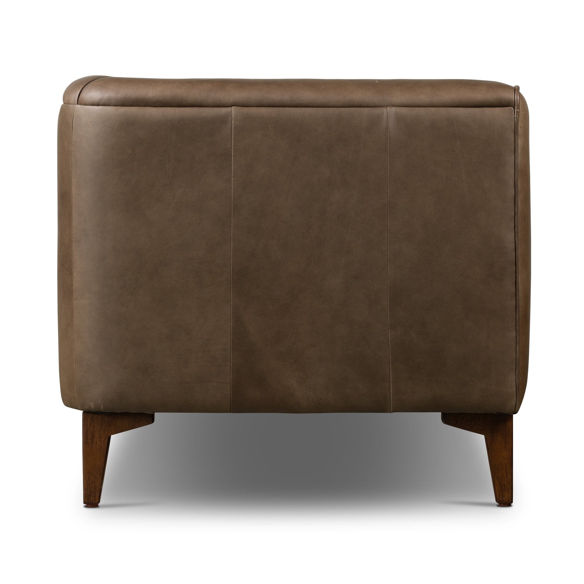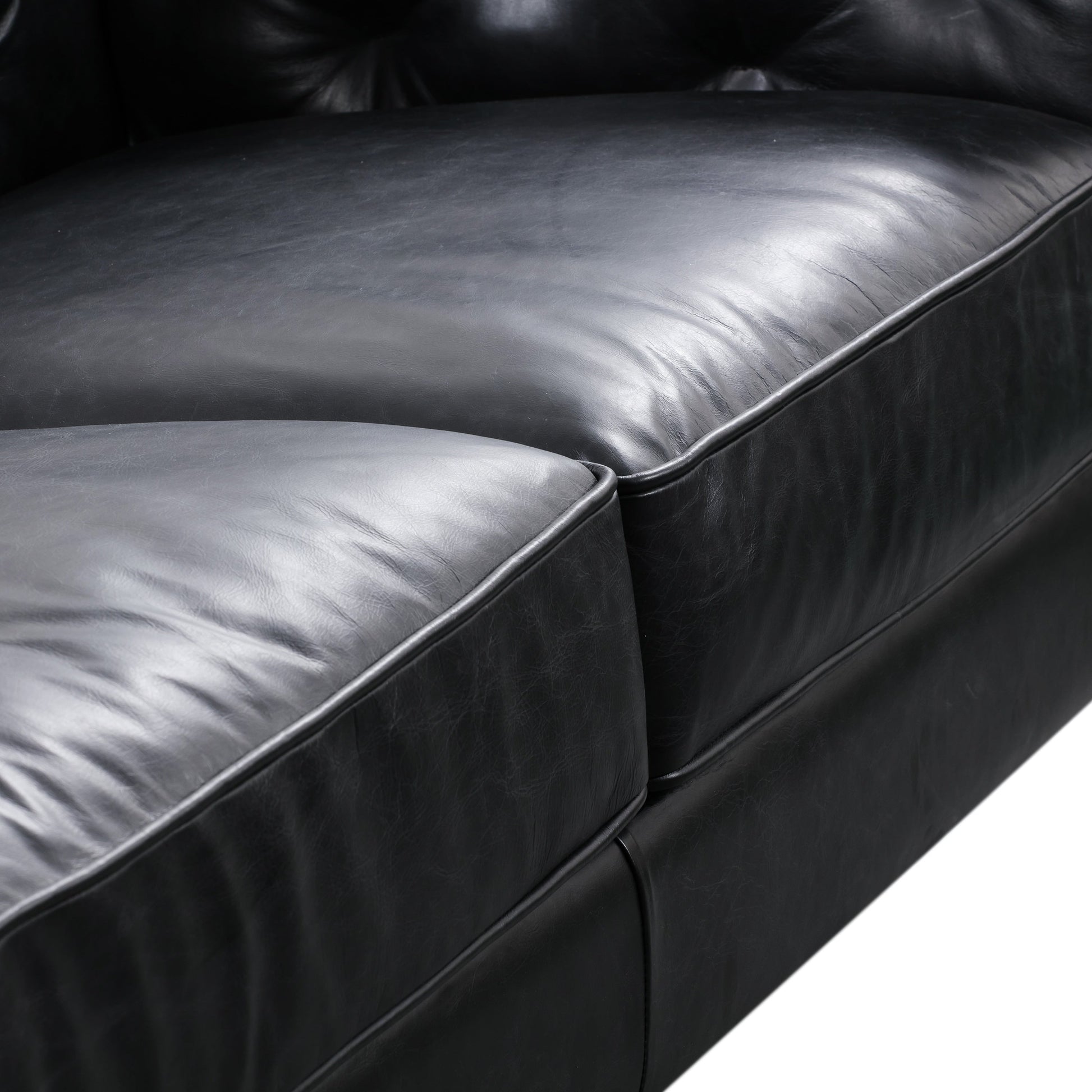 Realizzato con un omaggio alle silhouette vintage, il divano Essex dona un tocco di stile signorile al vostro soggiorno o studio con un ricco rivestimento in pelle pieno fiore conciata all'anilina pura (cognac, cacao) o semi-anilina (tutti gli altri colori). Il rivestimento in pelle conciata all'anilina pura, tinta all'anilina, enfatizza la bellezza naturale di ogni pelle, conferendo un aspetto unico a ogni pezzo. Con una lavorazione minima, le pelli all'anilina mostrano con orgoglio i tratti distintivi naturali della vera pelle, come rughe, segni di crescita, cicatrici rimarginate, punture di insetti e graffi. Simile al marmo o a un bellissimo pezzo di legno, ogni pelle varia nella tonalità e nel motivo e cambia, si macchia e si macchia, ammorbidendosi nella sua ricca patina con il tempo. Uno schienale trapuntato a rombi si estende su cuscini morbidi ed estremamente comodi, dotati di interni in piuma d'anatra, per un'esperienza di seduta all'altezza del look raffinato di questo divano. Le gambe affusolate in legno massello con finitura mogano aggiungono un tocco sartoriale a questo classico moderno.