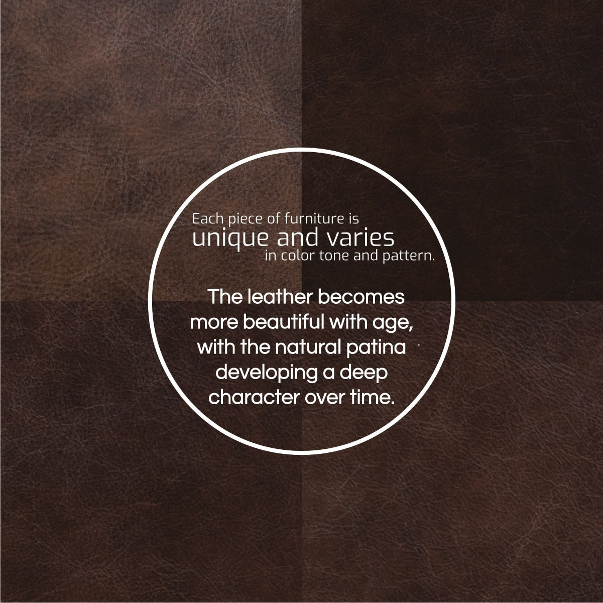 • I colori all'anilina pura sono caratterizzati da una pelle non pigmentata che ne accentua la bellezza naturale. La pelle si graffierà e con l'uso svilupperà una splendida patina vintage.