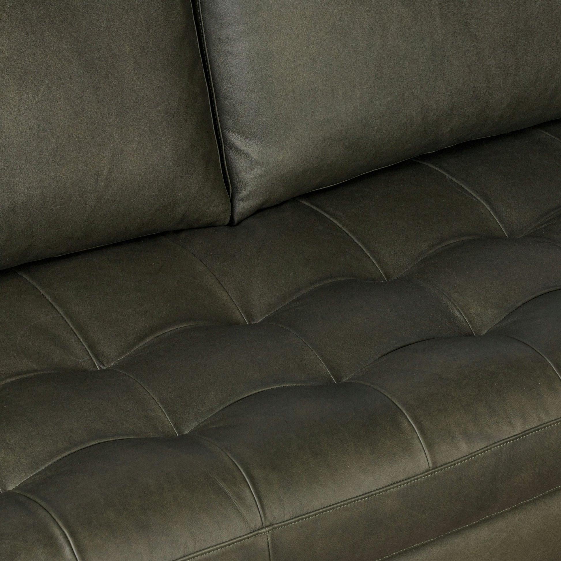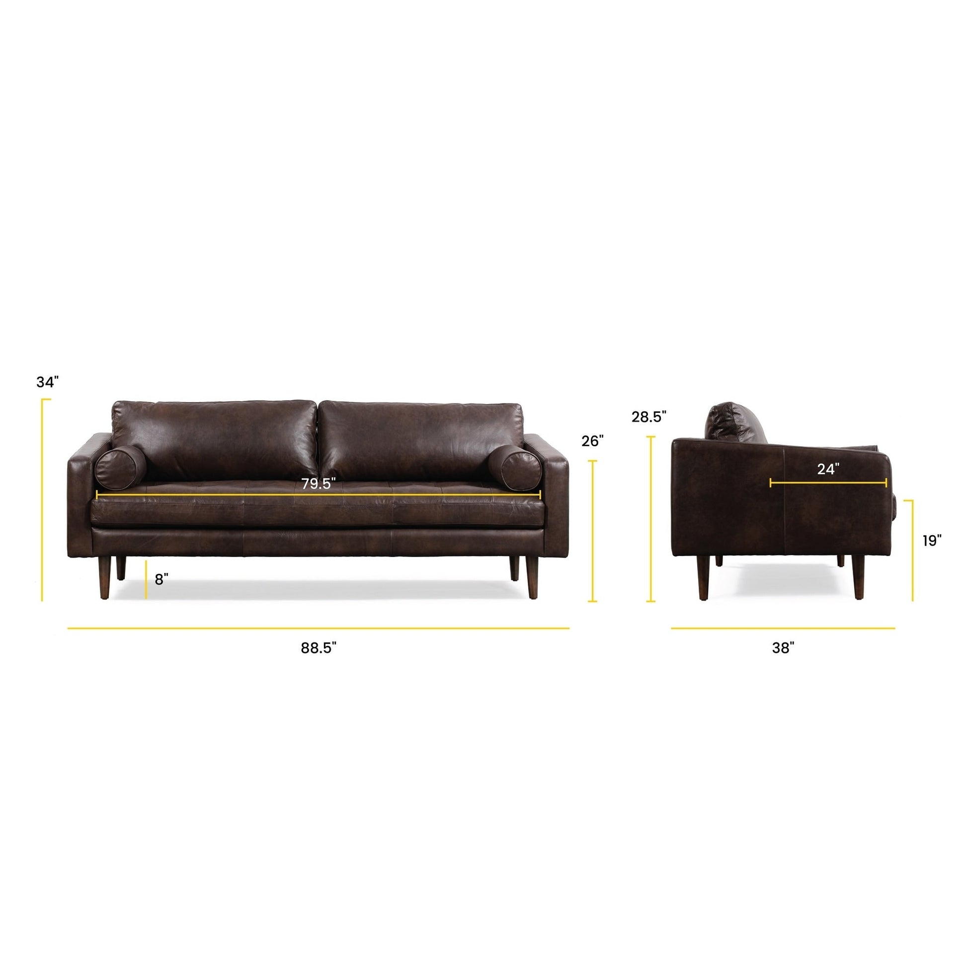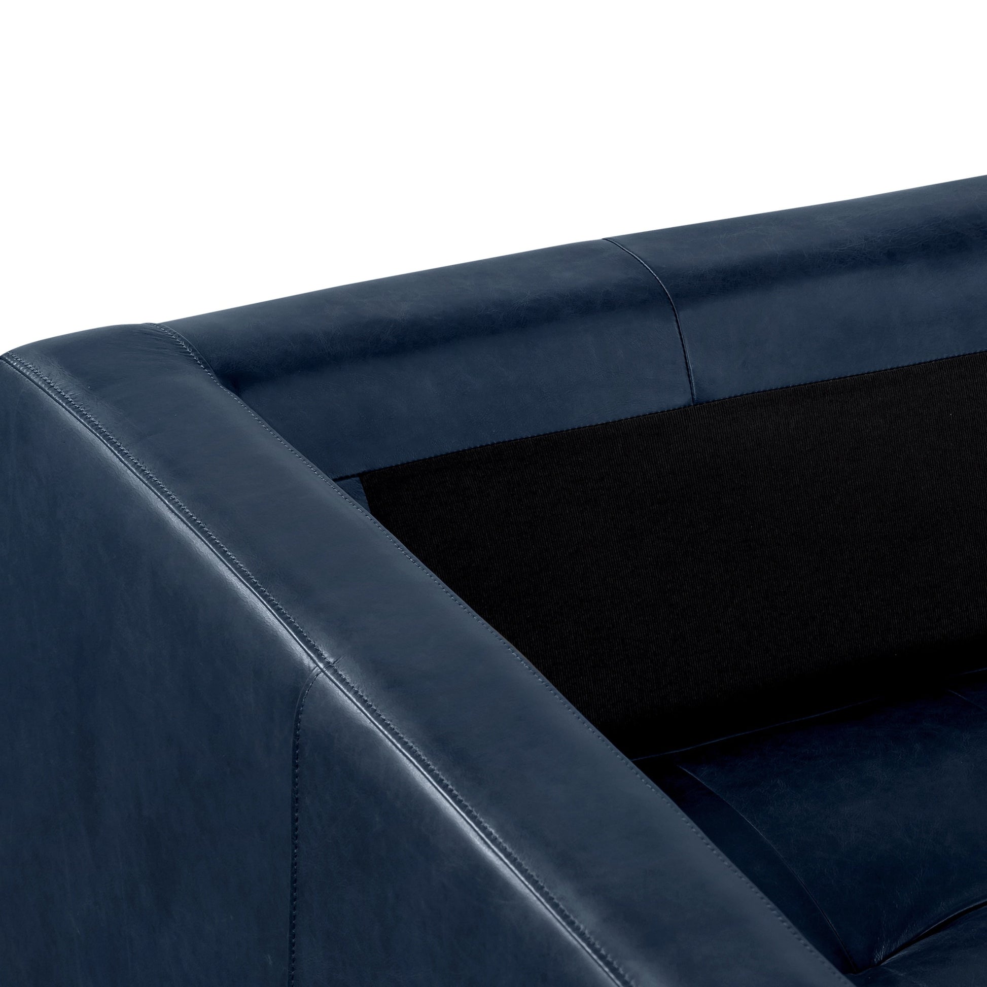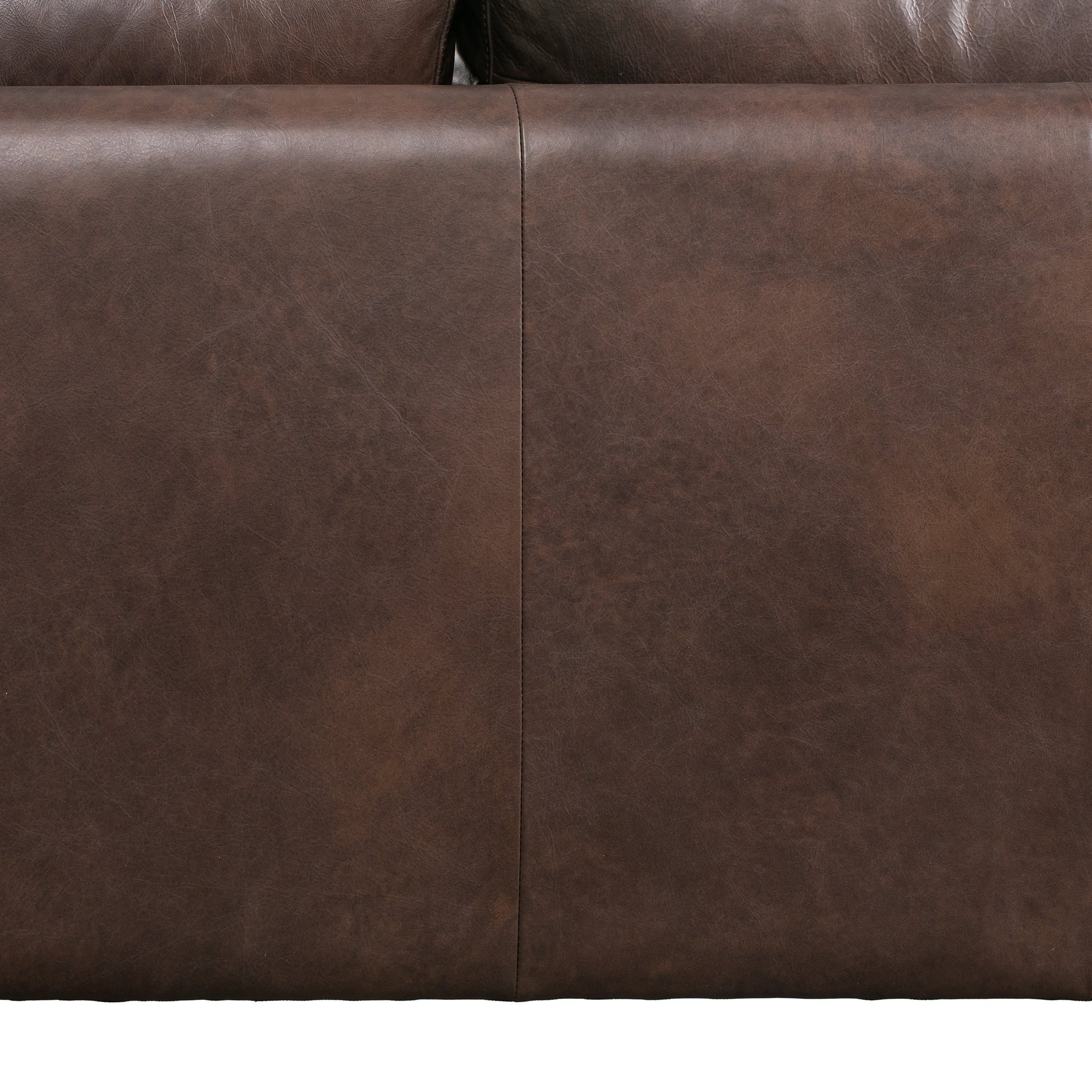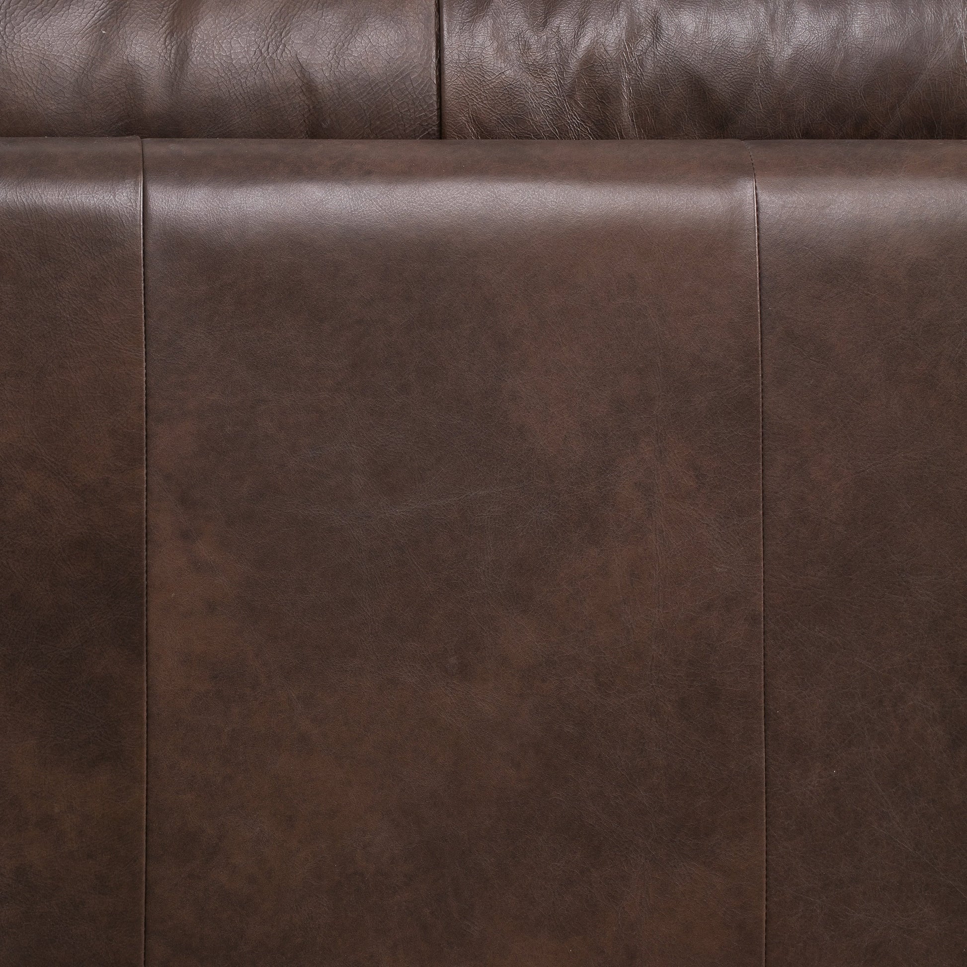 Immergetevi nella morbidezza e nello stile di questo divano in pelle Napa pieno fiore, in pura anilina (cognac, cacao) o semi-anilina (tutti gli altri colori). Splendido in un raffinato living, il colore Cognac presenta un rivestimento in pelle conciata all'anilina pura davvero straordinario, che enfatizza la bellezza naturale di ogni pelle, conferendo un aspetto unico a ogni pezzo. Con una lavorazione minima, le pelli all'anilina mostrano con orgoglio i tratti distintivi naturali della vera pelle, come rughe, segni di crescita, cicatrici rimarginate, punture di insetti e graffi. Simile al marmo o a un bel pezzo di legno, ogni pelle varia nella tonalità e nel motivo e cambia, si macchia e si macchia, ammorbidendosi nella sua ricca patina con il tempo. Una struttura in legno massello essiccato in forno è dotata di angoli rinforzati per una durevolezza duratura. Le cinghie Pirelli a sostegno di seduta e schienale offrono a questo divano il miglior supporto possibile. Un unico lungo cuscino di seduta è realizzato in schiuma ad alta densità con imbottitura in poliestere per un ampio supporto, mentre un topper in piuma d'anatra garantisce una morbidezza avvolgente. Sono inclusi un paio di cuscini imbottiti, che offrono uno stile classico e un supporto aggiuntivo a seconda delle esigenze.