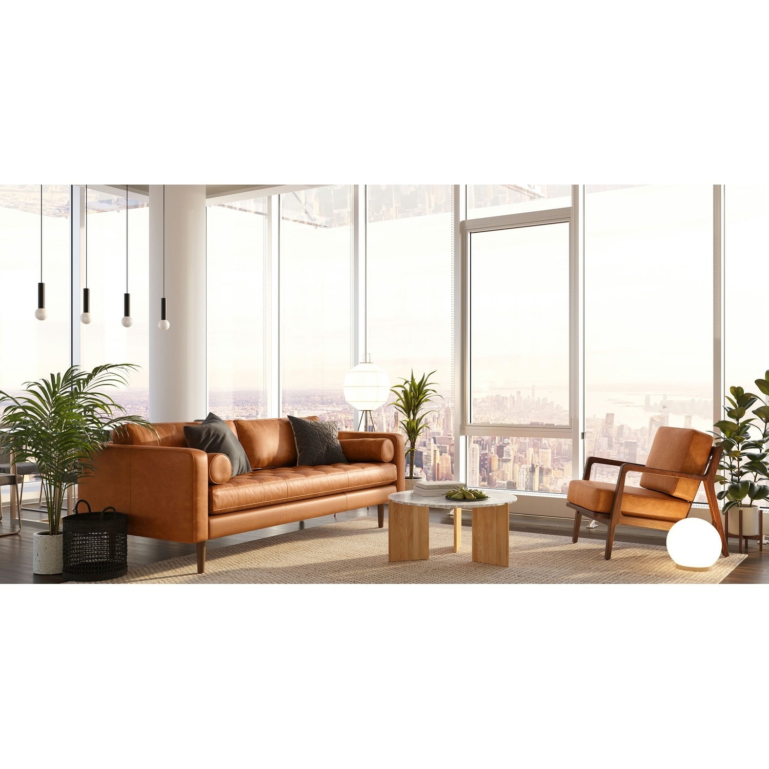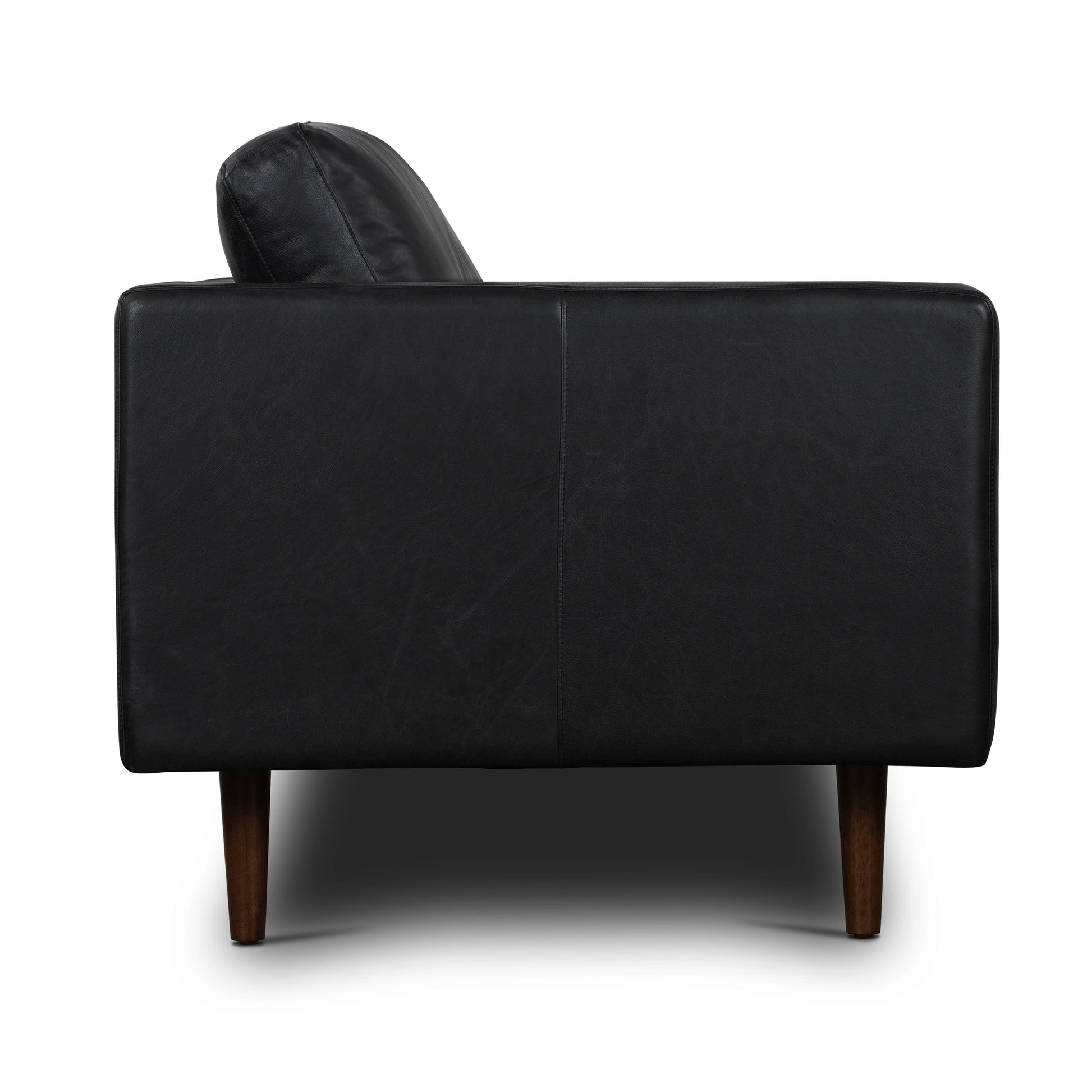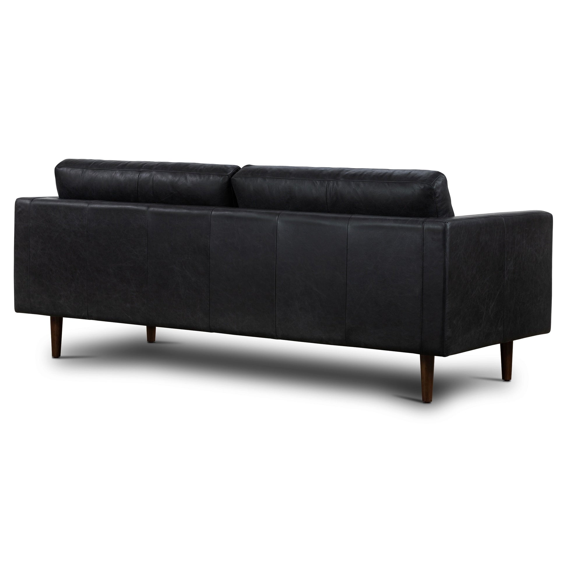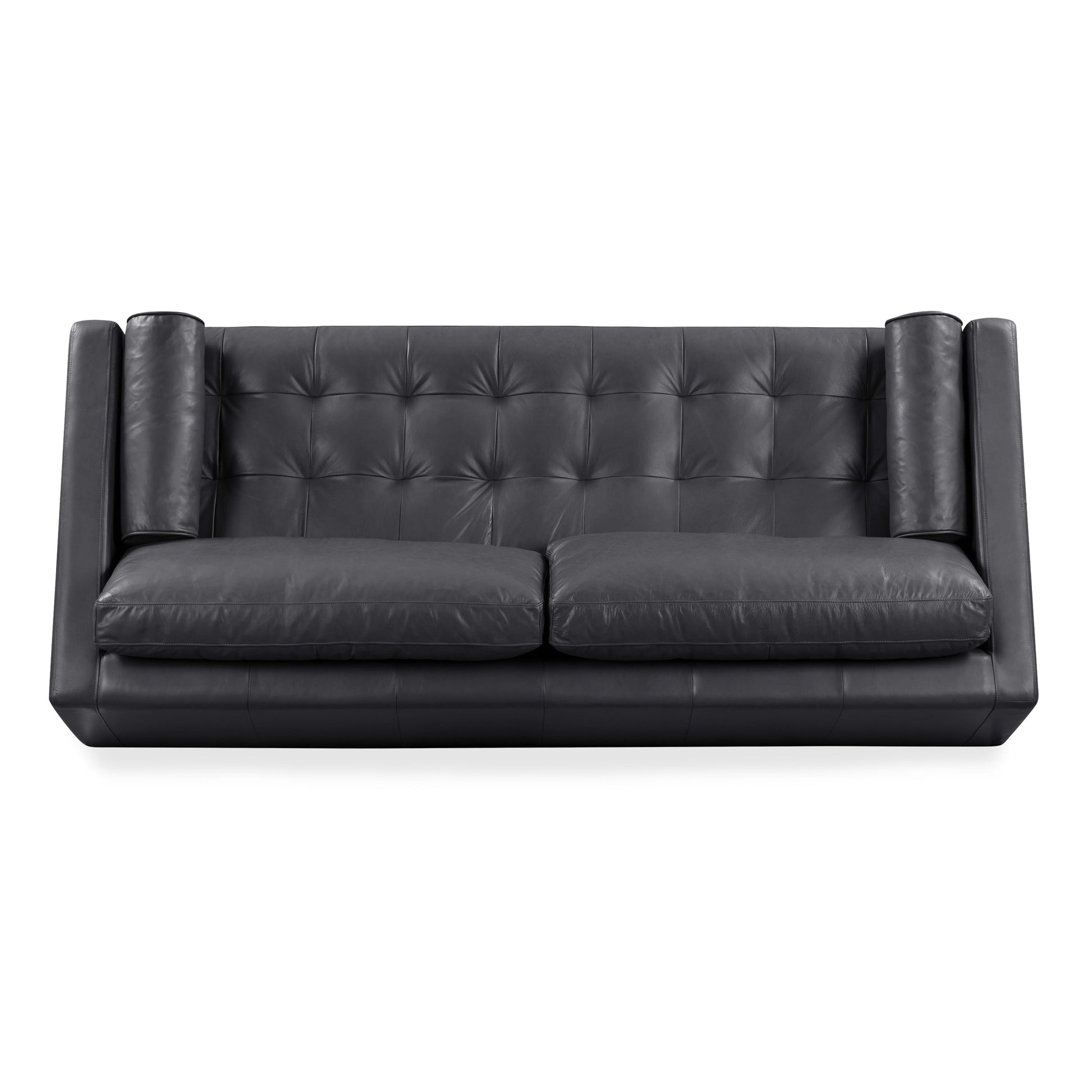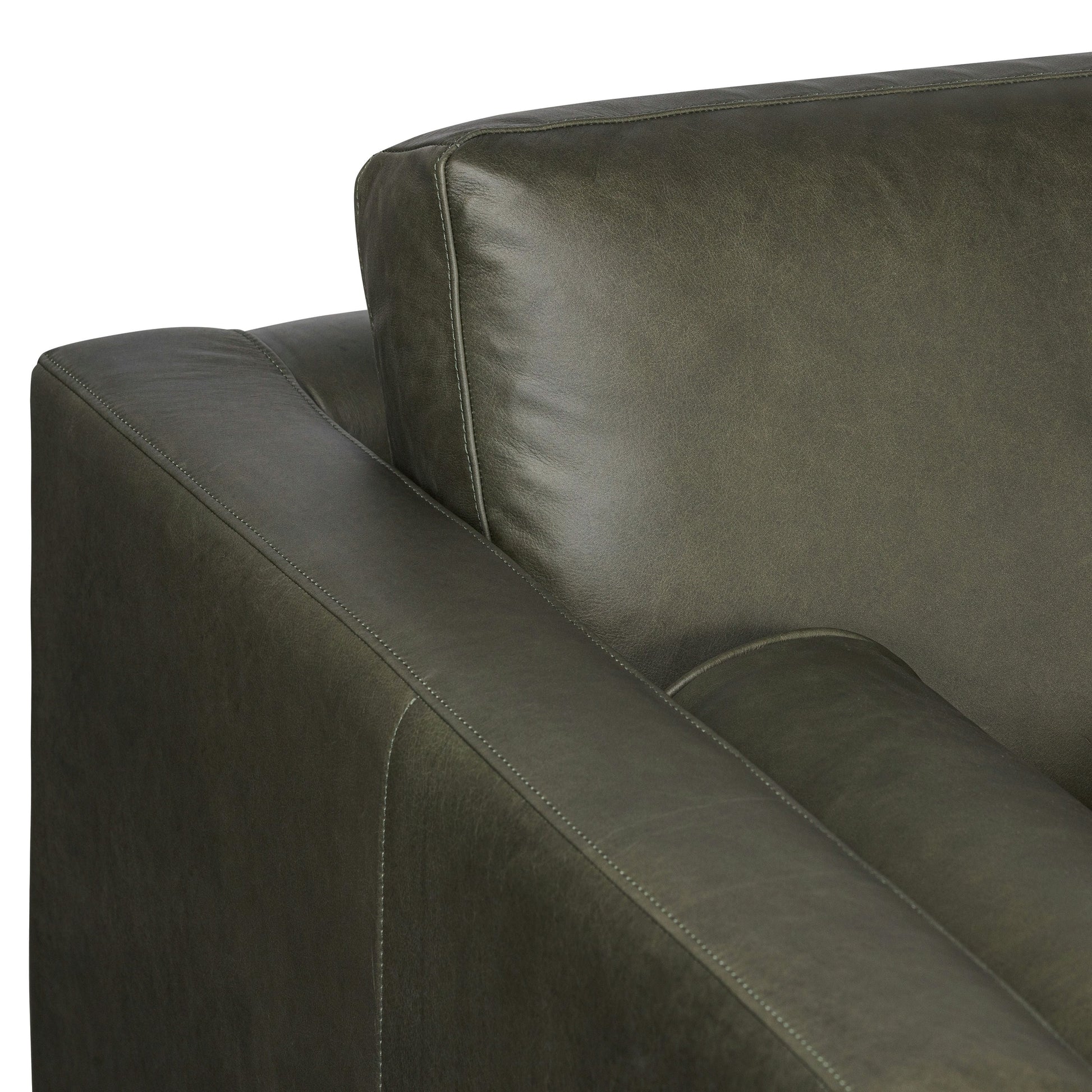 Immergetevi nella morbidezza e nello stile di questo divano in pelle Napa pieno fiore, in pura anilina (cognac, cacao) o semi-anilina (tutti gli altri colori). Splendido in un raffinato living, il colore Cognac presenta un rivestimento in pelle conciata all'anilina pura davvero straordinario, che enfatizza la bellezza naturale di ogni pelle, conferendo un aspetto unico a ogni pezzo. Con una lavorazione minima, le pelli all'anilina mostrano con orgoglio i tratti distintivi naturali della vera pelle, come rughe, segni di crescita, cicatrici rimarginate, punture di insetti e graffi. Simile al marmo o a un bel pezzo di legno, ogni pelle varia nella tonalità e nel motivo e cambia, si macchia e si macchia, ammorbidendosi nella sua ricca patina con il tempo. Una struttura in legno massello essiccato in forno è dotata di angoli rinforzati per una durevolezza duratura. Le cinghie Pirelli a sostegno di seduta e schienale offrono a questo divano il miglior supporto possibile. Un unico lungo cuscino di seduta è realizzato in schiuma ad alta densità con imbottitura in poliestere per un ampio supporto, mentre un topper in piuma d'anatra garantisce una morbidezza avvolgente. Sono inclusi un paio di cuscini imbottiti, che offrono uno stile classico e un supporto aggiuntivo a seconda delle esigenze.