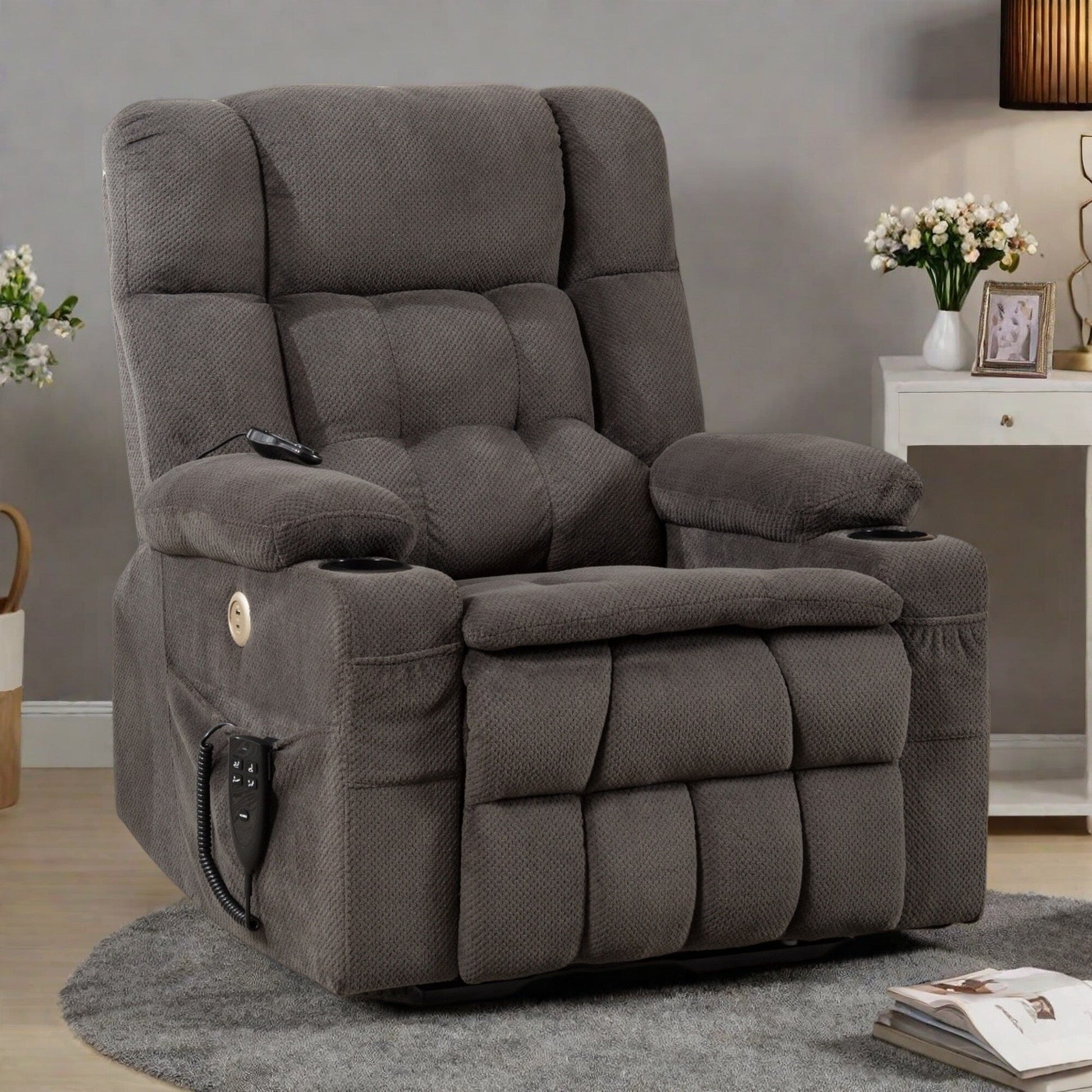 Poltrona reclinabile in poliestere con doppio motore, massaggio,...