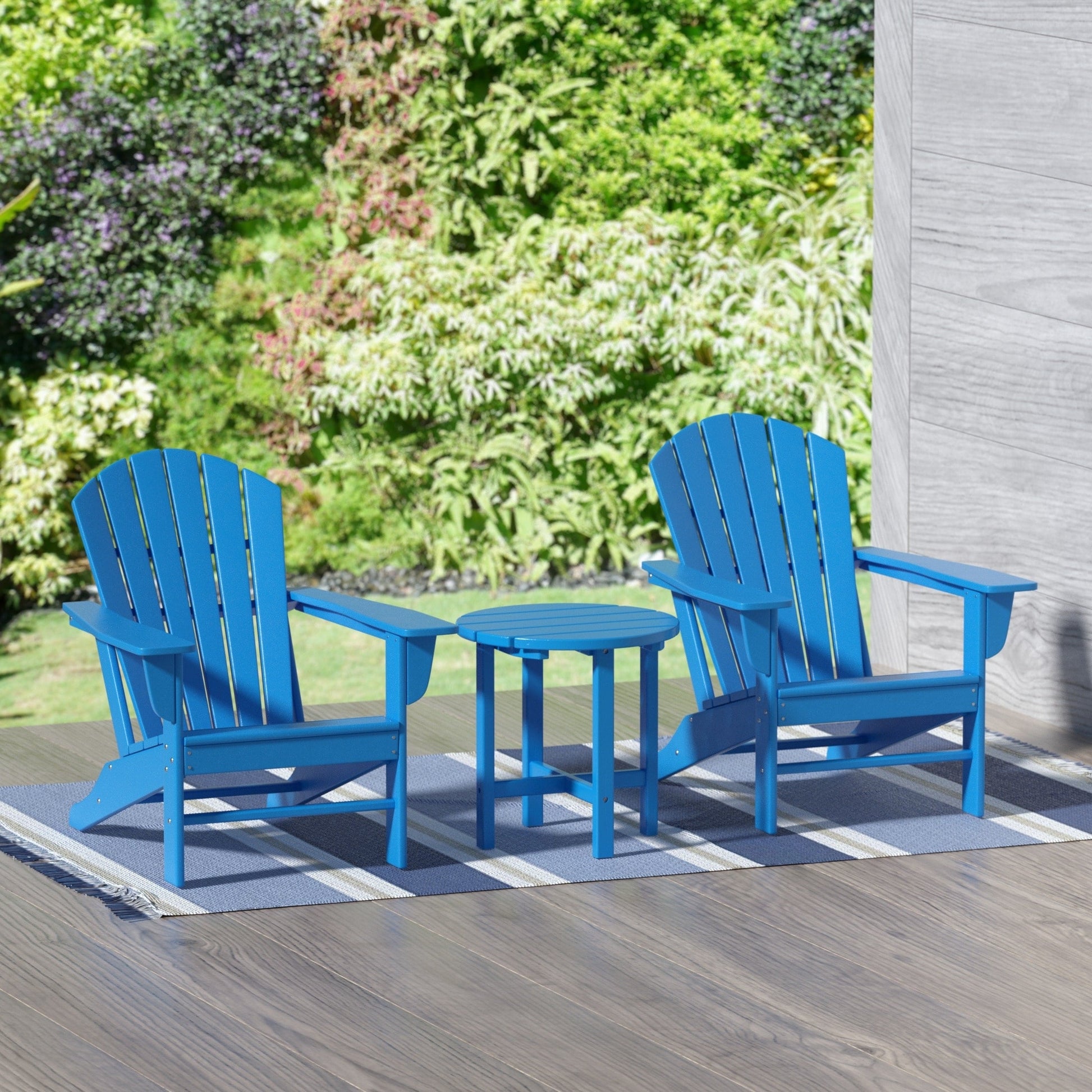 Rilassati con questo splendido set Adirondack da tre pezzi. Include due (2) sedie e un tavolino laterale. Questo set ti stupirà sicuramente con il suo design ergonomico, i comodi braccioli larghi, la seduta e lo schienale sagomati e la silhouette reclinata. È l'aggiunta perfetta a qualsiasi giardino o spazio esterno.