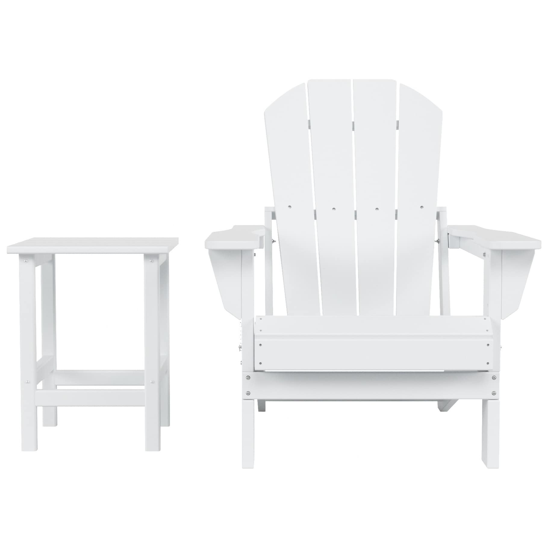 Sedia Adirondack pieghevole per esterni e patio Polytrends Laguna HDPE, adatta a tutte le stagioni, con tavolino laterale (set da 2 pezzi)