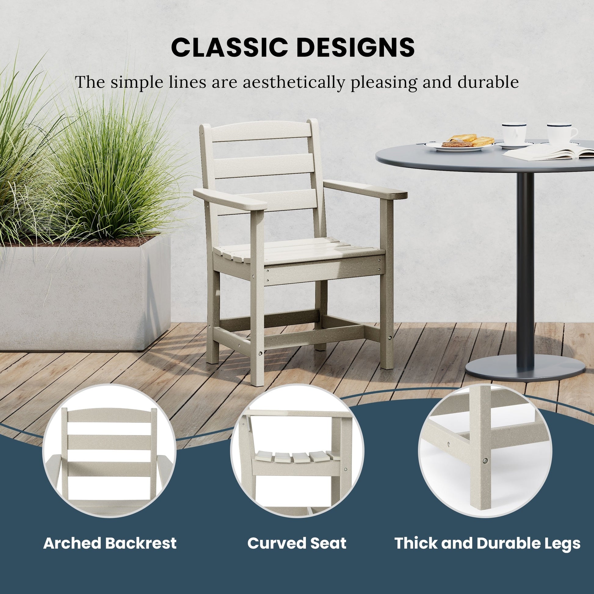 • Il set include: un (1) tavolo da pranzo da patio quadrato da 36 piedi e le nostre (4) poltrone da pranzo da patio