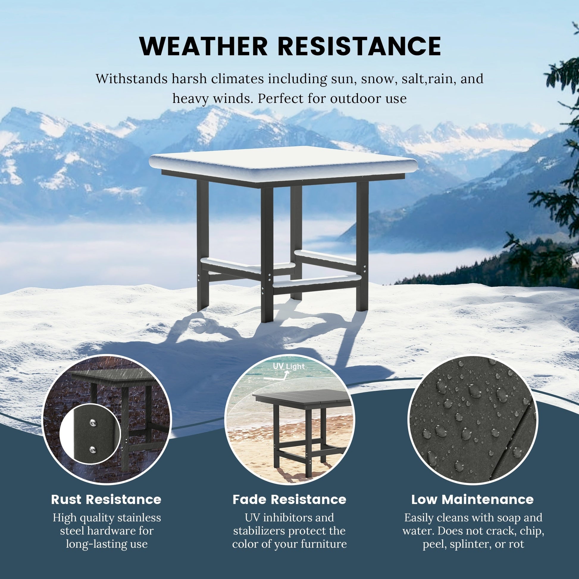 • Il materiale durevole e resistente alle intemperie è resistente a schegge, crepe, scheggiature e sfaldature e può anche essere pulito con acqua tiepida, sapone neutro e una spazzola a setole morbide