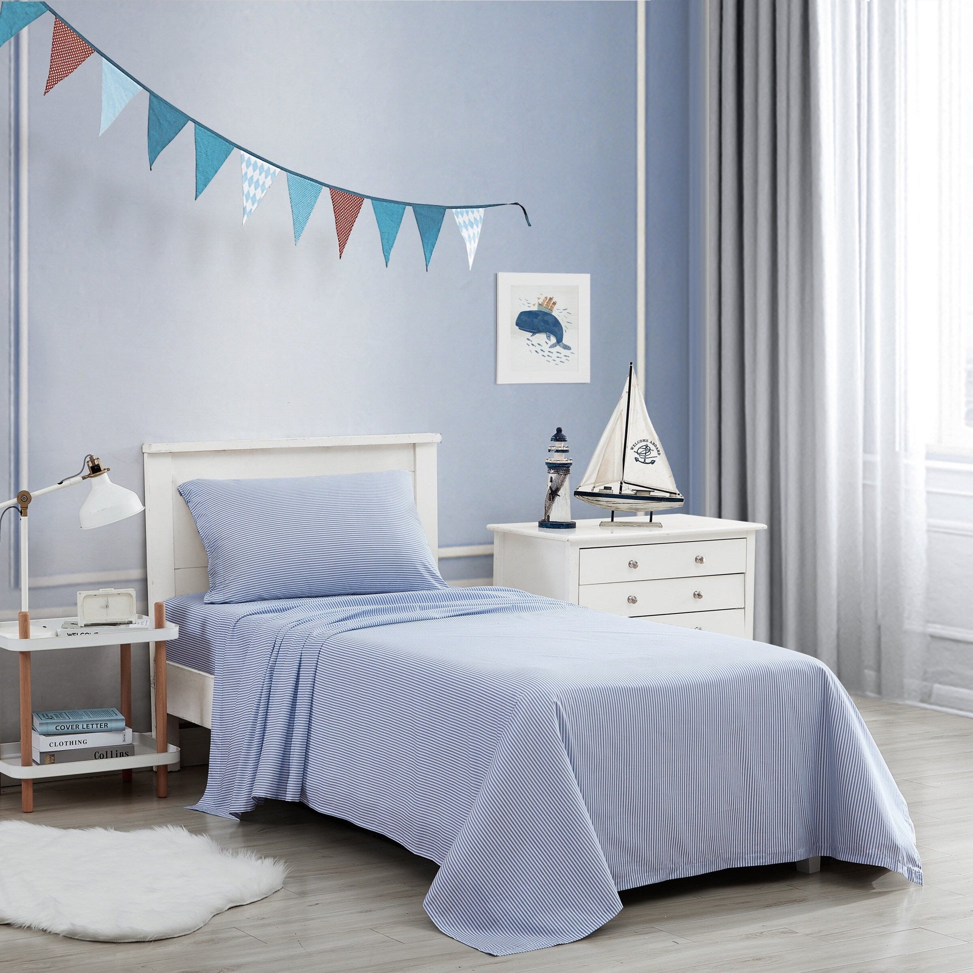 Il set di lenzuola per letti singoli include: un lenzuolo piano (240 cm di lunghezza x 190 cm di larghezza), un lenzuolo con angoli (190 cm di lunghezza x 100 cm di larghezza) e una federa standard (50 cm di lunghezza x 76 cm di larghezza)