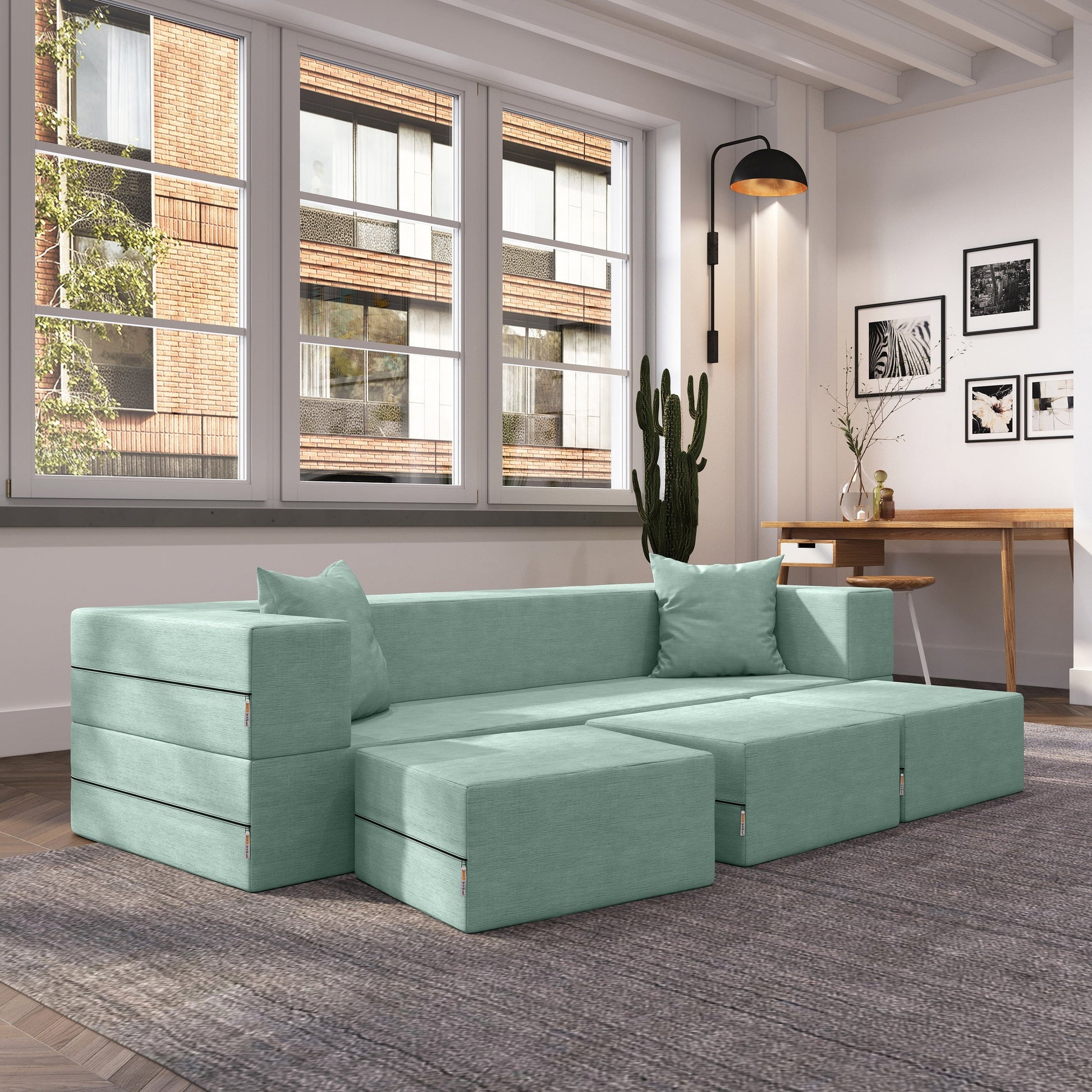 Divano letto convertibile California King e pouf Porch...
