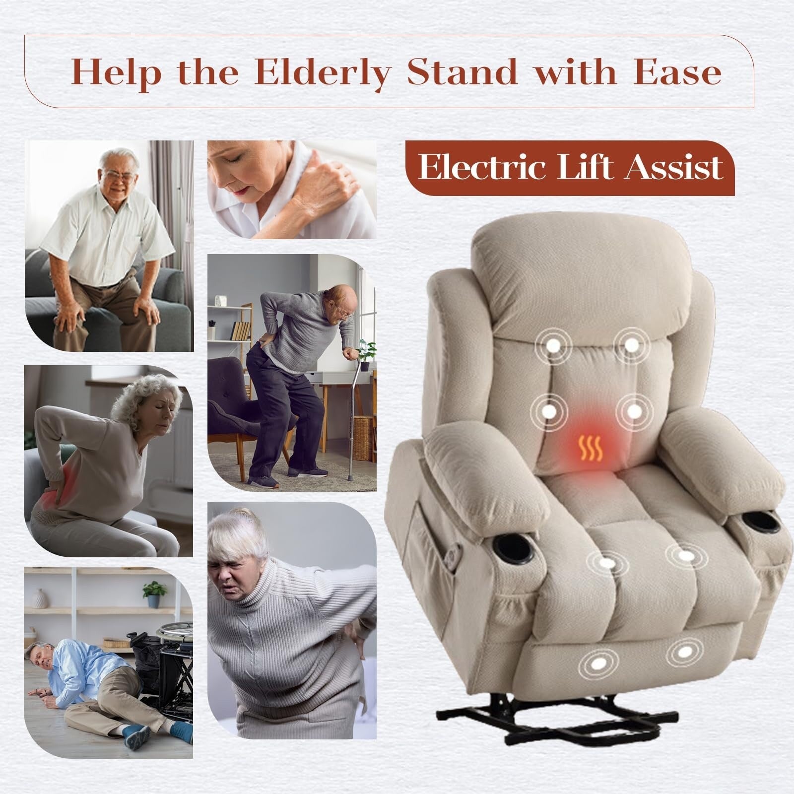 Riscaldamento e massaggio 】 - Questa poltrona elevatrice con riscaldamento e massaggio ha 8 punti di massaggio e 2 diverse intensità di massaggio che possono soddisfare le diverse esigenze di massaggio. Le quattro aree del massaggio sono distribuite su polpacci, cosce, vita e spalle. Puoi scegliere liberamente l'intensità e la posizione del massaggio. Riscaldamento della vita con un punto di funzione massaggio che consente di promuovere la circolazione sanguigna durante il massaggio.