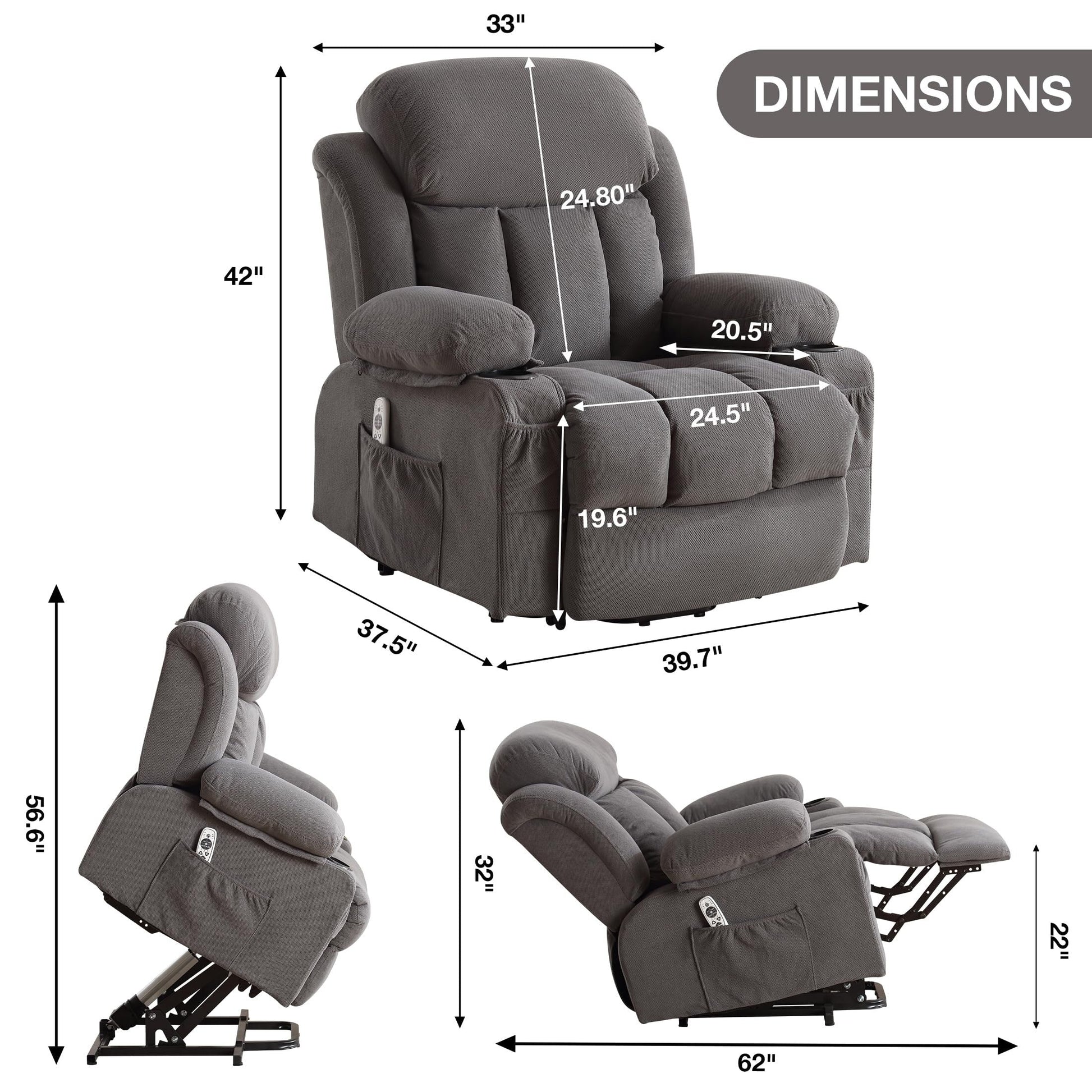 Sollevamento elettrico assistito 】 - Poltrona reclinabile elettrica progettata per il comfort e il benessere di anziani, disabili e pazienti in fase di recupero. La nostra poltrona reclinabile solleva delicatamente gli anziani fino a una posizione quasi eretta con un movimento fluido e costante, consentendo loro di alzarsi senza sforzo e facilmente da una posizione seduta, con meno sforzo per muscoli e articolazioni. Più di una semplice poltrona reclinabile, le nostre poltrone reclinabili sono un aiuto prezioso che migliora l'indipendenza dell'utente e garantisce a ogni utente un'esperienza prestigiosa e confortevole.