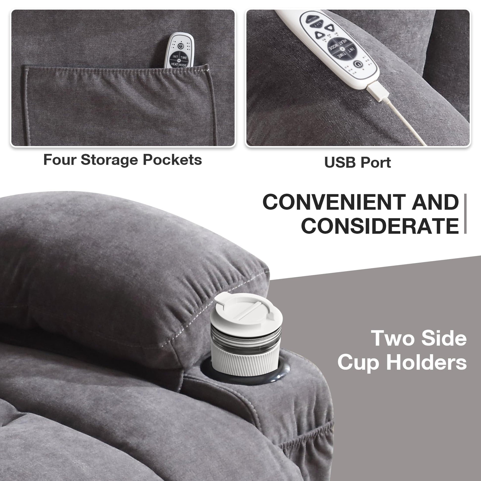 Portabicchieri 】 - Questa poltrona reclinabile elettrica è dotata di due portabicchieri sui braccioli, che offrono un comodo accesso per appoggiare una bevanda mentre ci si rilassa. Questa caratteristica riduce al minimo la necessità di alzarsi frequentemente per prendere un bicchiere d'acqua.