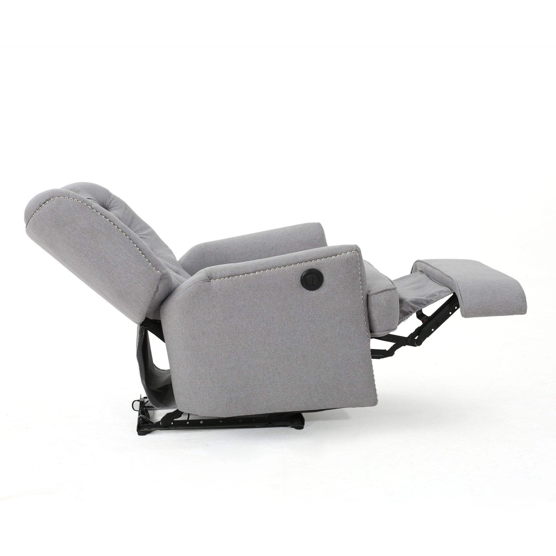Poltrona reclinabile elettrica, tessuto morbido grigio con bottoni...