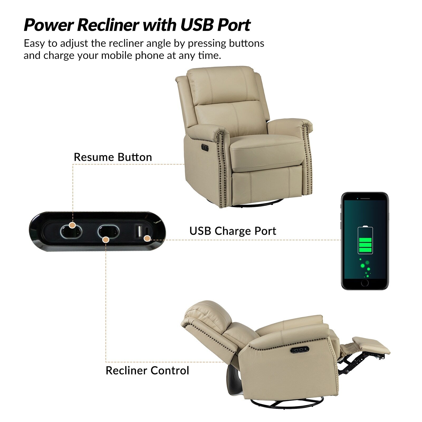 Poltrona reclinabile girevole elettrica tradizionale in vera pelle...