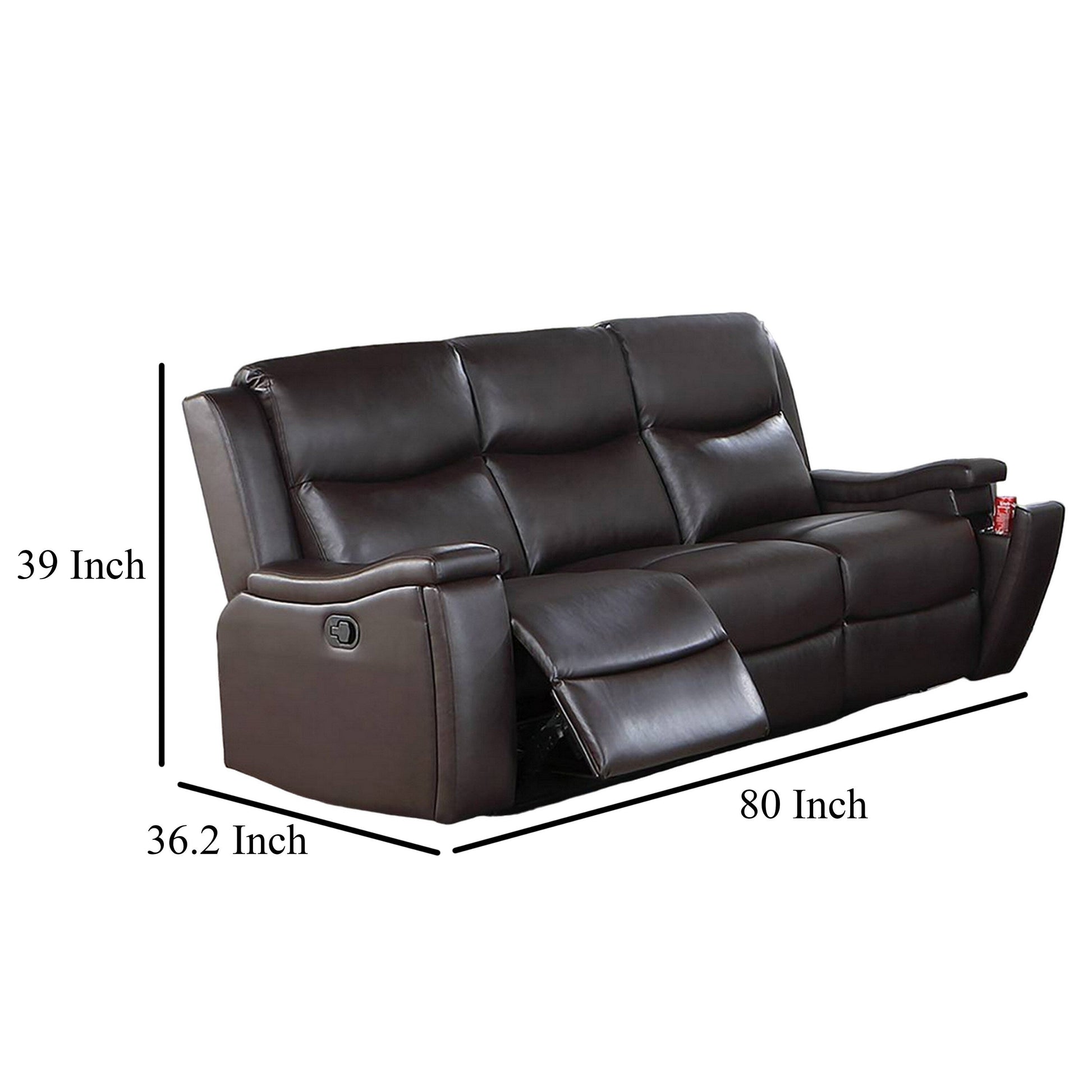 Divano reclinabile manuale Renna, portabicchieri, similpelle marrone, 80...