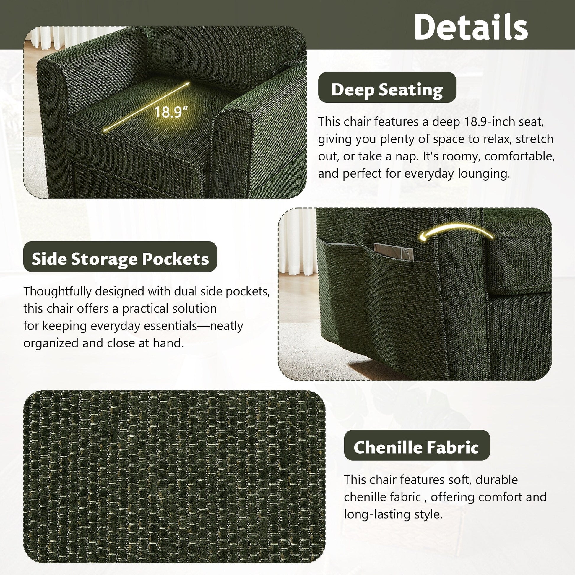Poltrona girevole imbottita a 360° Roomfitters con tasche...
