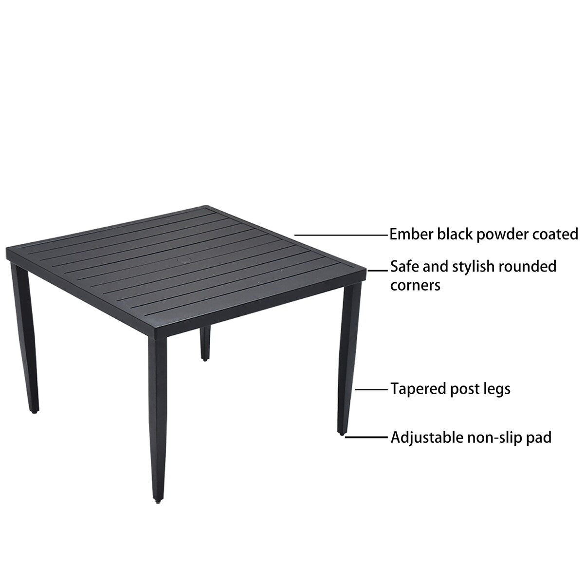 4. Gambe affusolate delle sedie e del tavolo per rendere questa collezione unica uno stile moderno e minimalista. Il design elegante e moderno del SET DA PRANZO QUADRATO 5 PEZZI è accentuato dalle sue esclusive gambe affusolate. Queste gambe eleganti non solo aggiungono un tocco di eleganza al tuo arredamento da esterno, ma forniscono anche un senso di stabilità ed equilibrio. Il design minimalista delle gambe permette alle sedie e al tavolo di integrarsi perfettamente in qualsiasi ambiente esterno, completando una varietà di stili di arredamento.