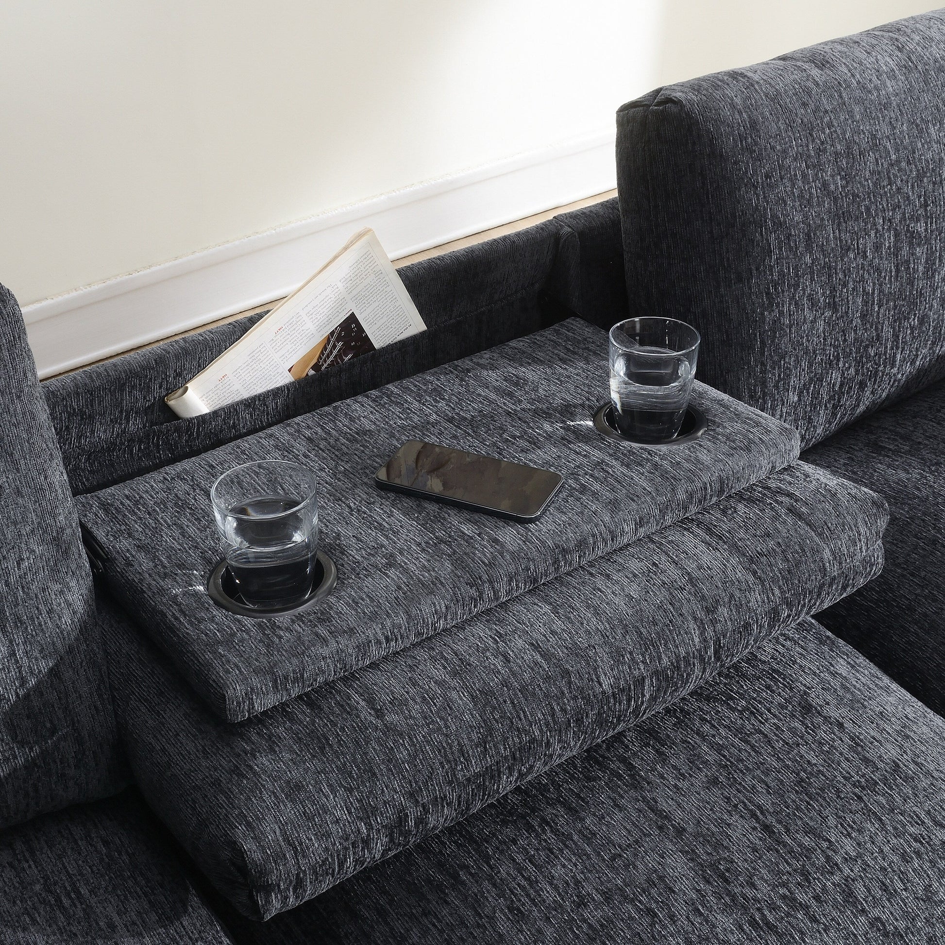 Divano componibile in ciniglia Roomfitters da 96'' x 35'' con altoparlante Bluetooth, comodo set divano a nuvola con tavolo a scomparsa, caricabatterie USB
