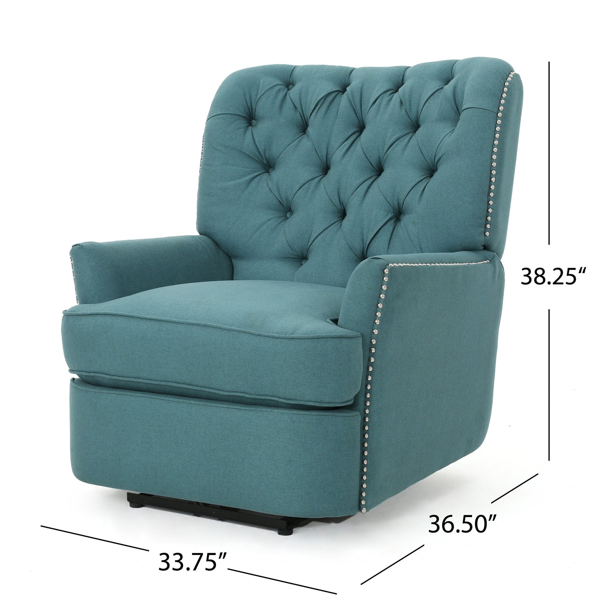 Poltrona reclinabile elettrica Roomfitters con dettagli in rame e imbottitura morbida, comoda poltrona per soggiorno, verde acqua
