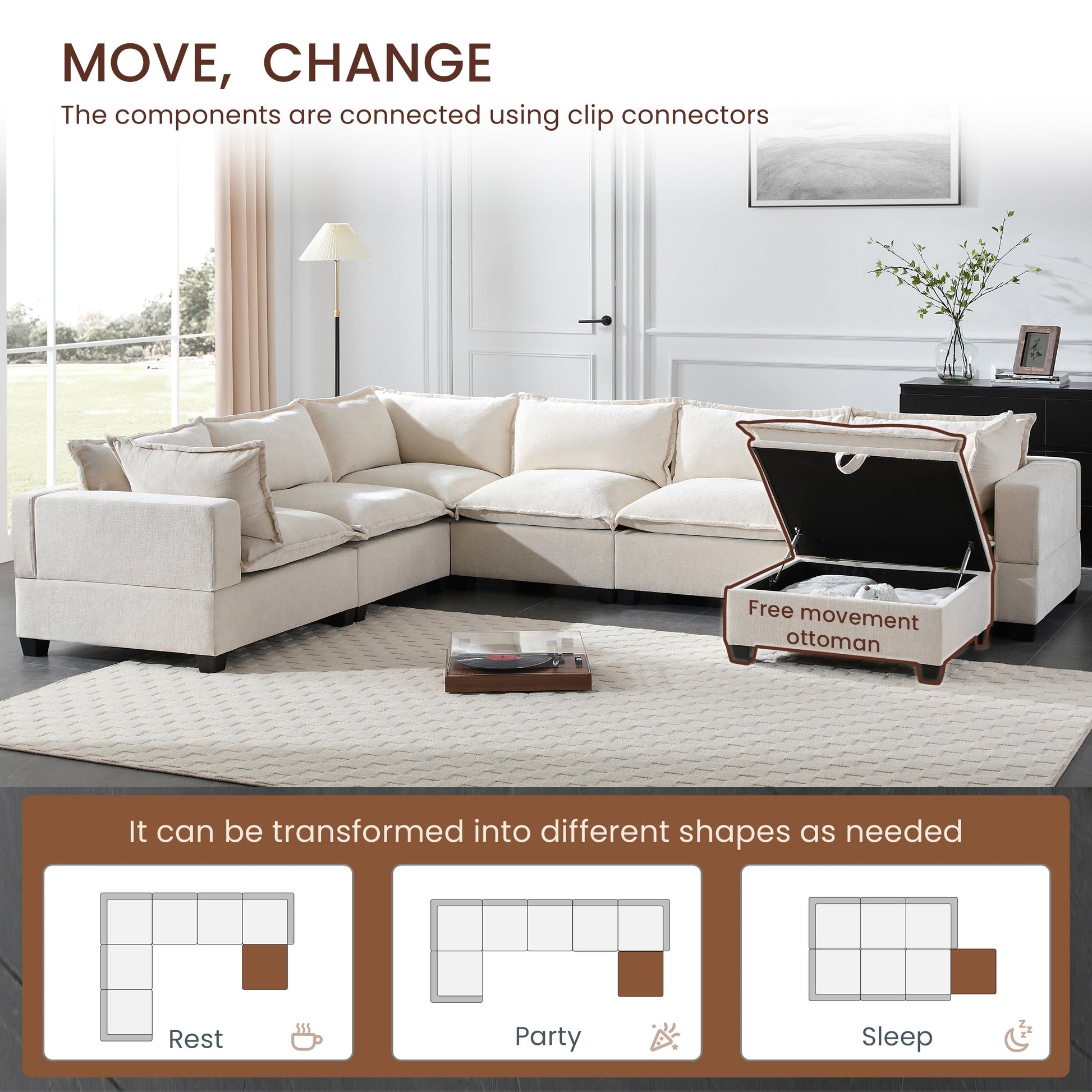 Divano modulare in ciniglia a forma di U Roomfitters con pouf contenitore, divano oversize a 7 posti con disposizione libera per il soggiorno
