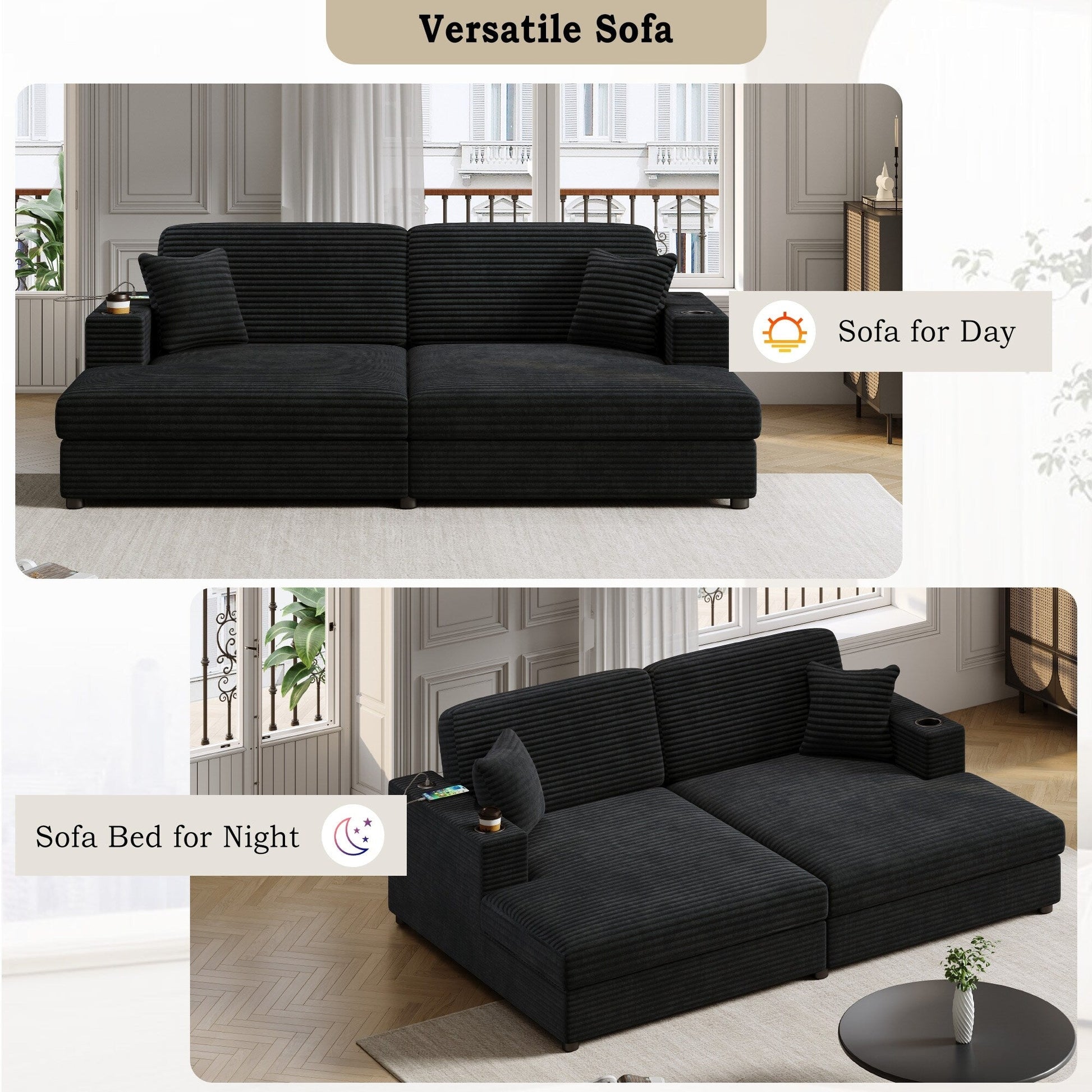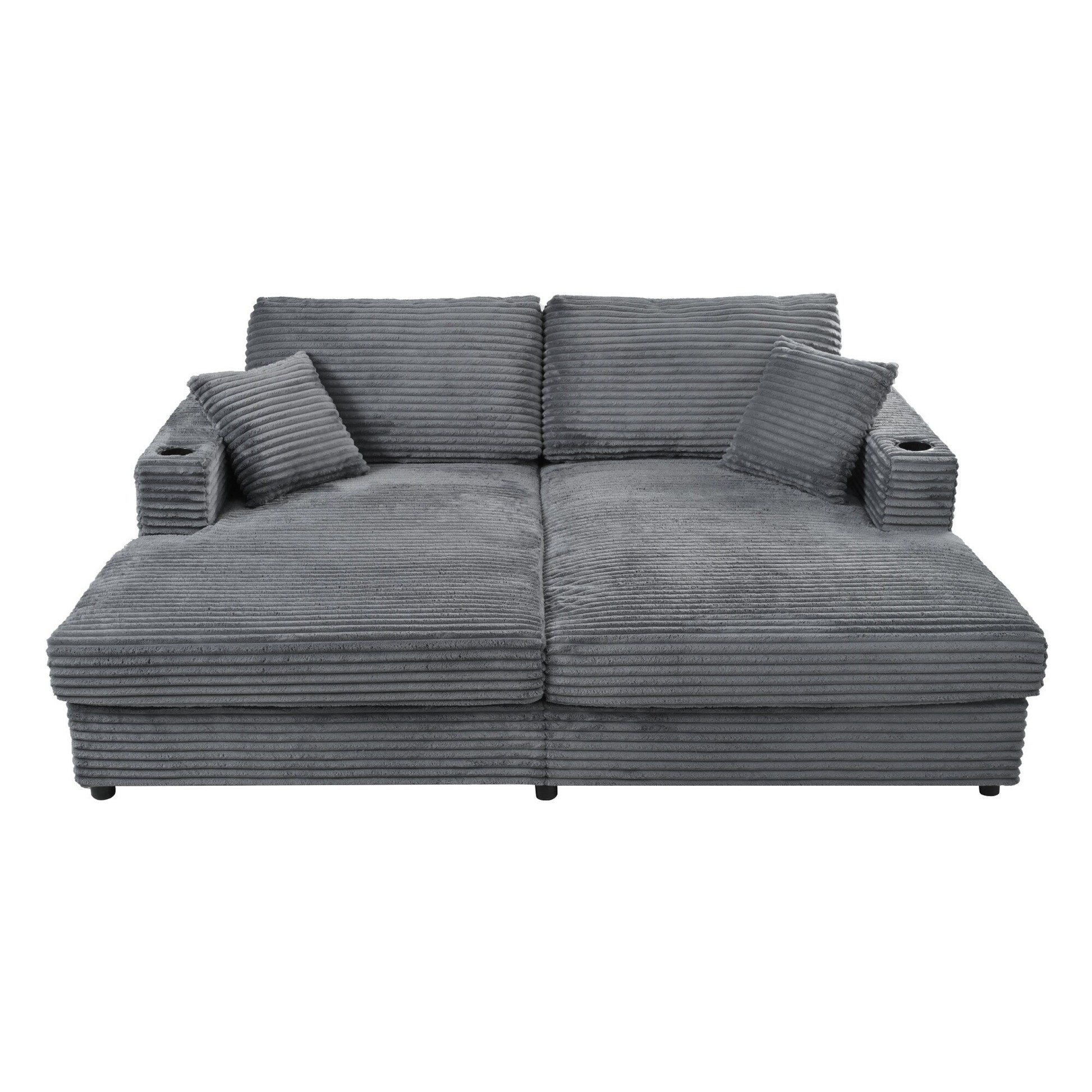 • Comfort assoluto: dotata di spessi cuscini da 2,4 m, imbottiti in schiuma ad alta densità e molle insacchettate, questa chaise longue offre un supporto superiore e un comfort che allevia la pressione. Il morbido rivestimento in velluto a coste aggiunge un tocco lussuoso alla tua esperienza di relax.