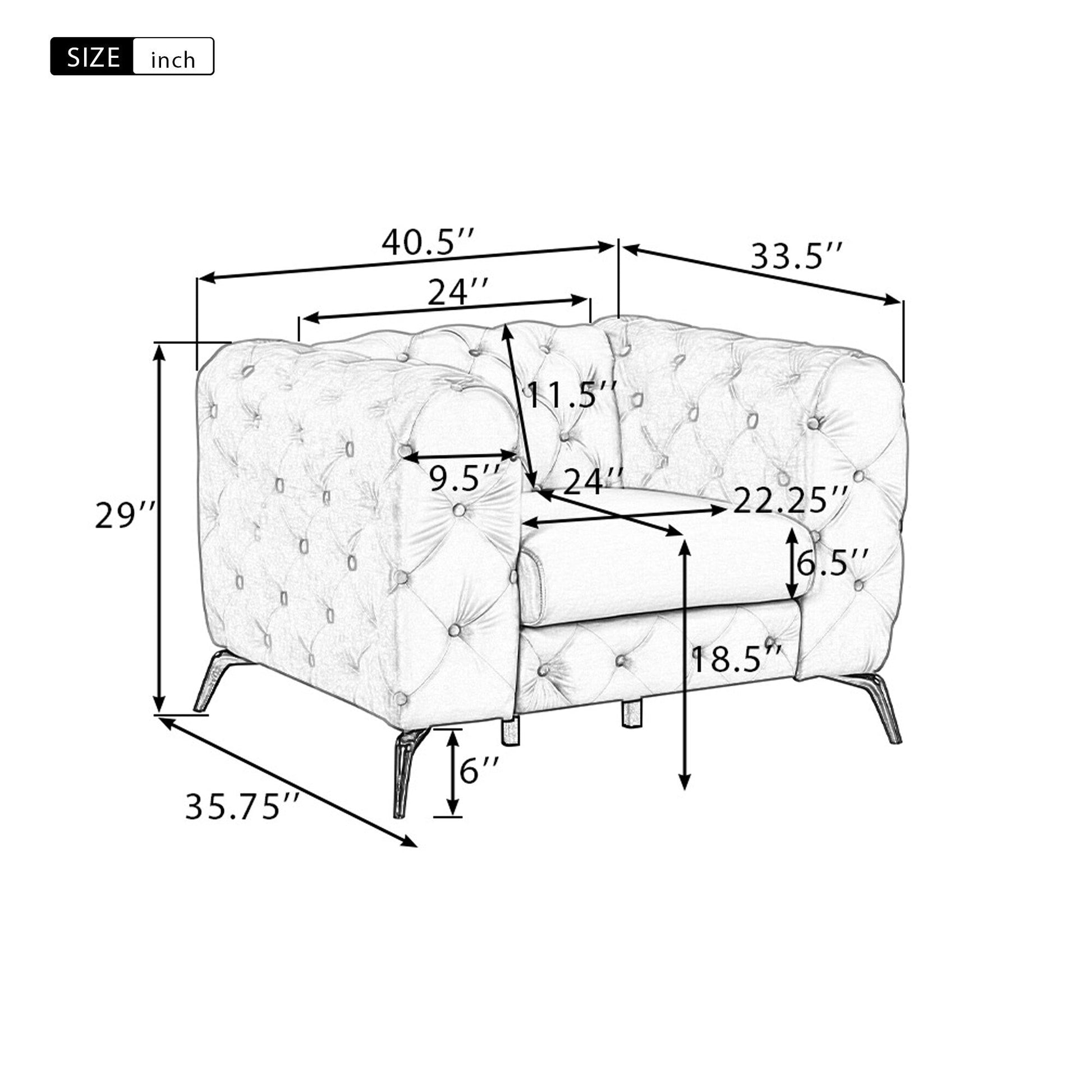 Divano angolare imbottito in velluto Roomfitters, poltrona singola con schienale trapuntato a bottoni per soggiorno e camera da letto