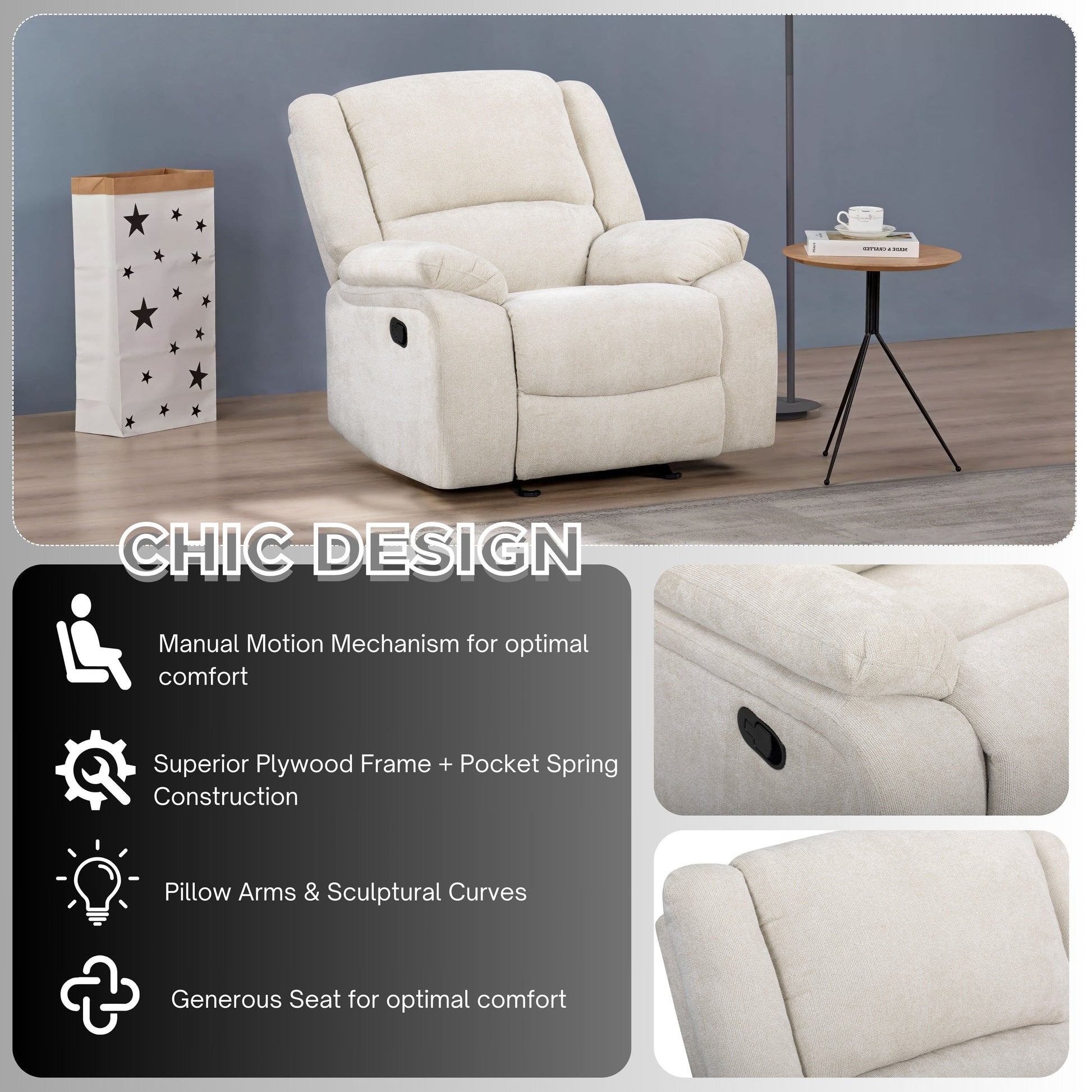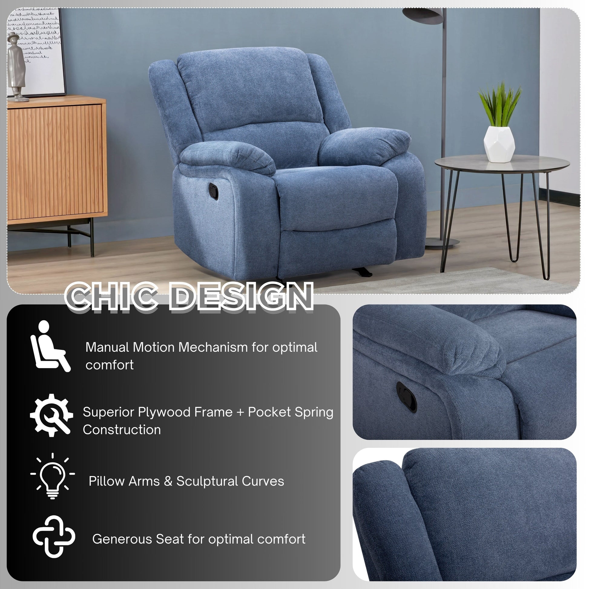 Poltrona reclinabile manuale di transizione Roundhill Furniture Blitz