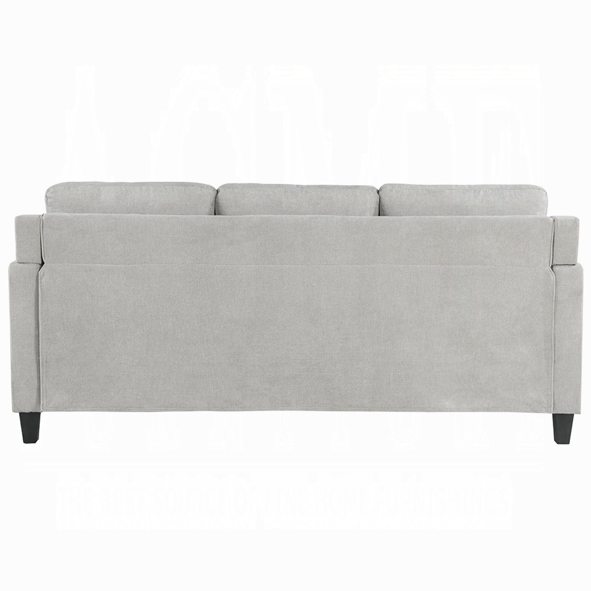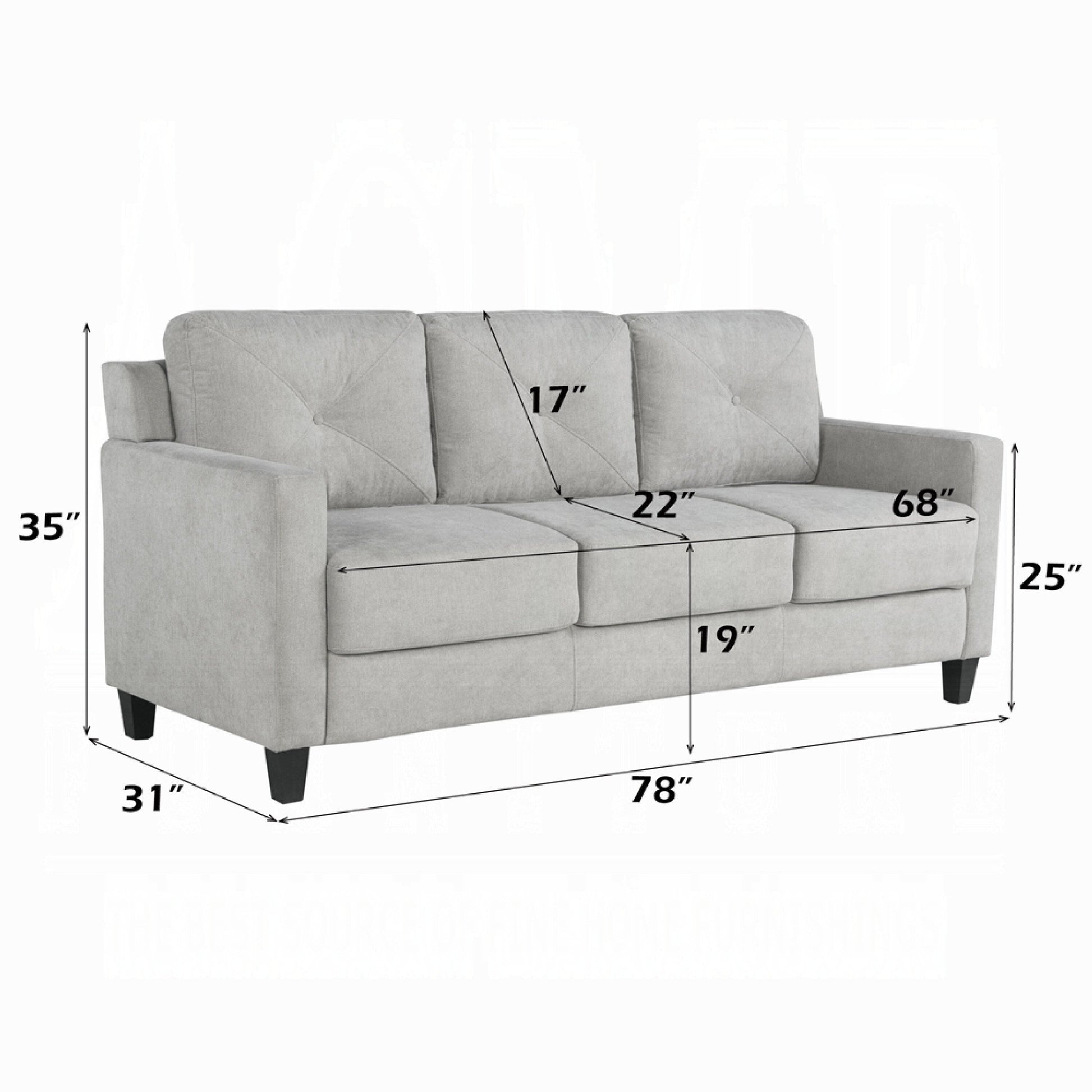 Divano Royi, bracciolo Track, 78 pollici, seduta in tessuto grigio con schienale trapuntato