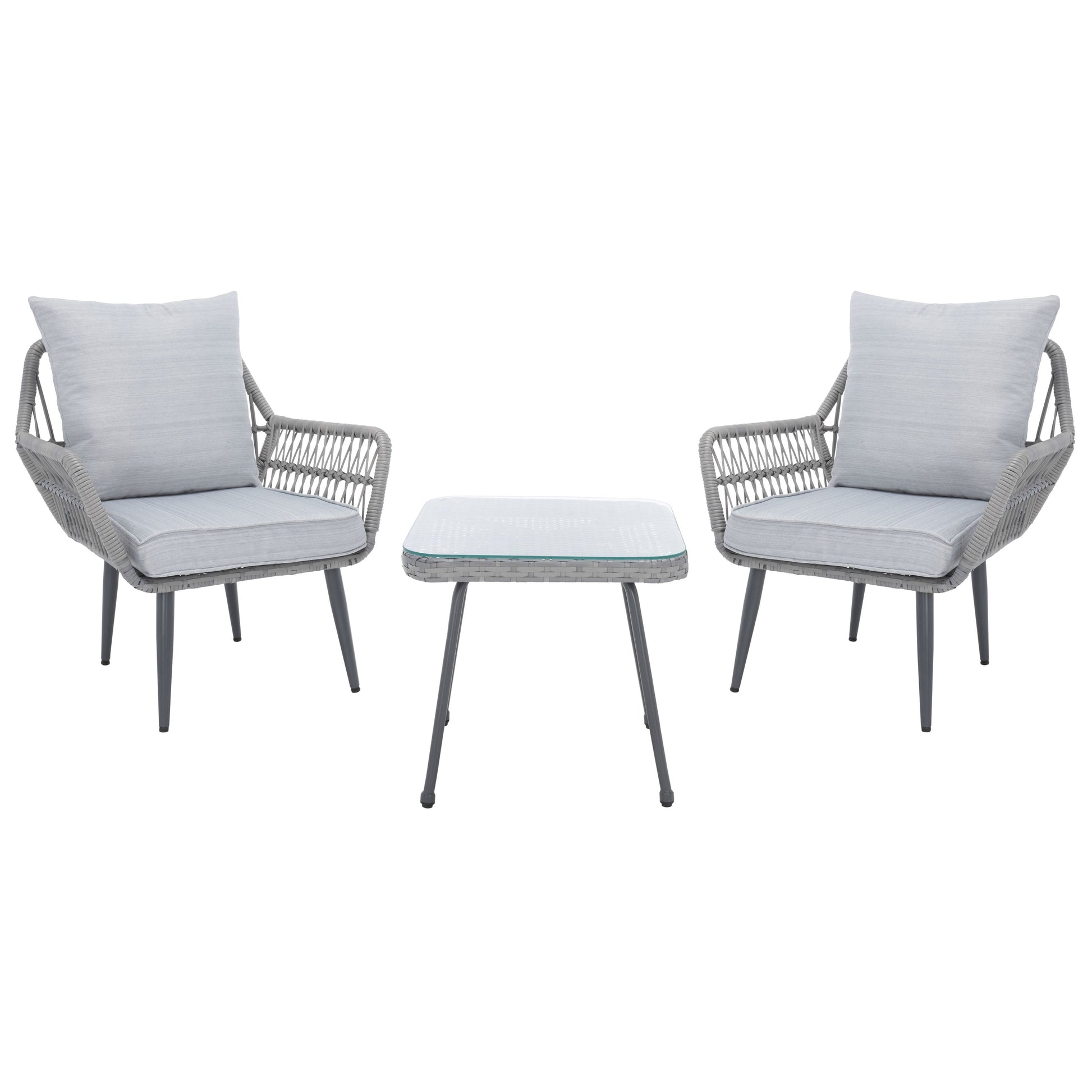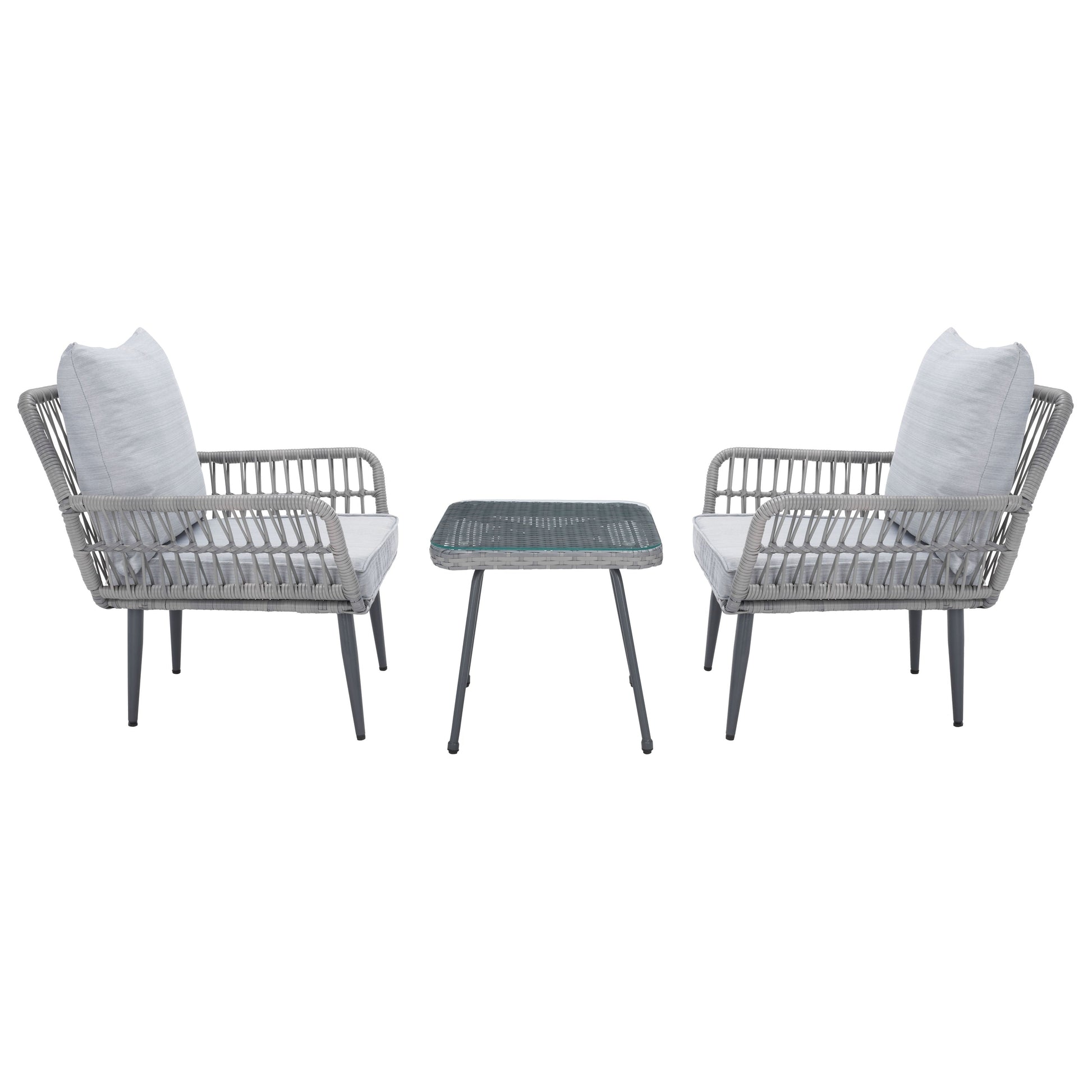 Rinnova il tuo spazio esterno con l'elegante e confortevole set da salotto Londyn da 3 pezzi SAFAVIEH. Composto da due graziose e giocose poltrone e un tavolino coordinato, questo set vanta una silhouette geometrica e accattivante, con un bellissimo intreccio in vimini e sedute e schienali generosamente imbottiti per il massimo comfort. Goditi il ​​luogo perfetto per rilassarti, socializzare e prendere il sole con questo elegante set.